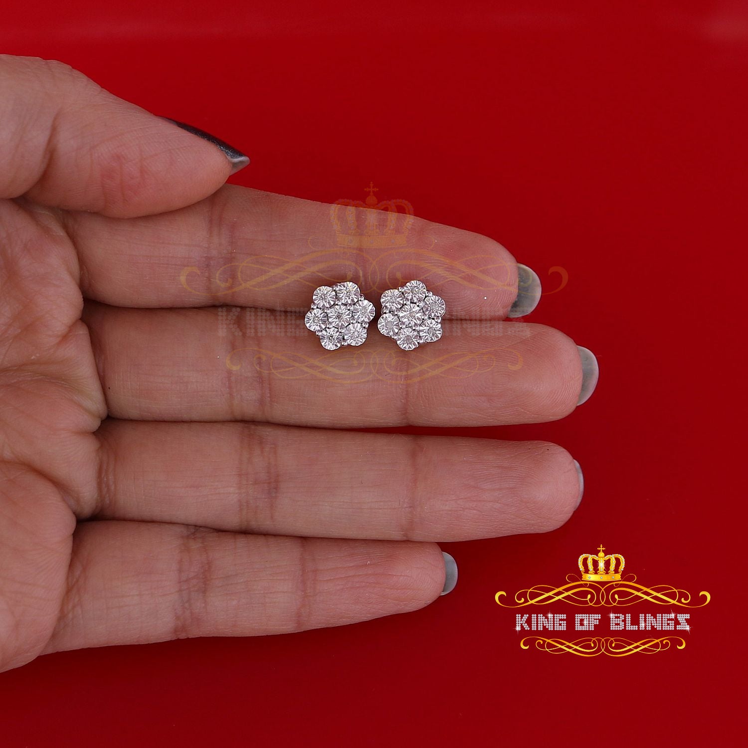 Presented as new with tags in the original packaging, these Silver Diamond earrings are ready to add a touch of sophistication to any outfit, making them a perfect choice for those seeking a combination of style and quality appealing to both men and women with their captivating sparkle. rest assured that the "King Of Blings" brand guarantees exceptional craftsmanship and materials. these womens stud earrings make a perfect gift or a stylish addition to your own jewelry collection,