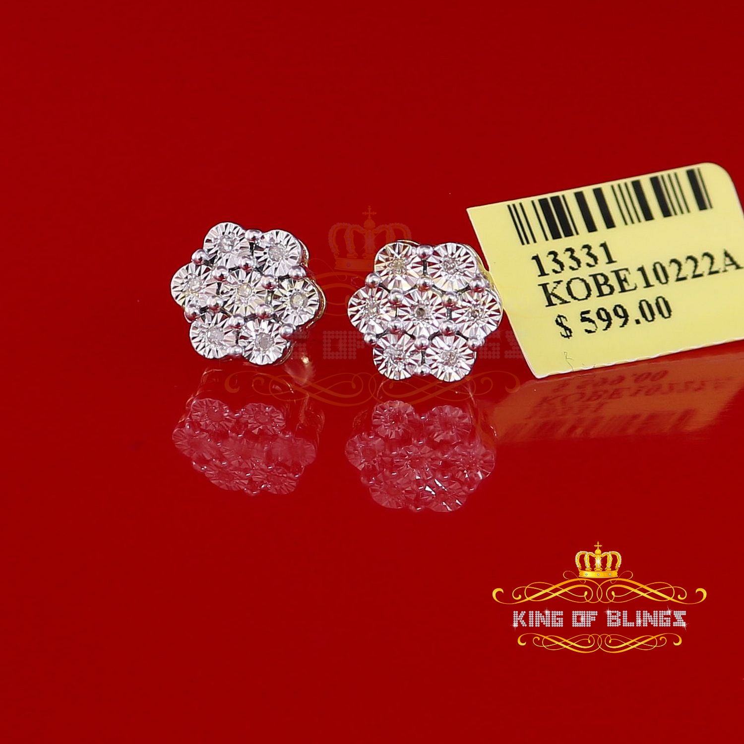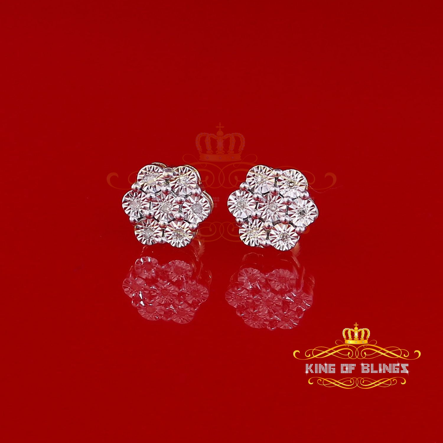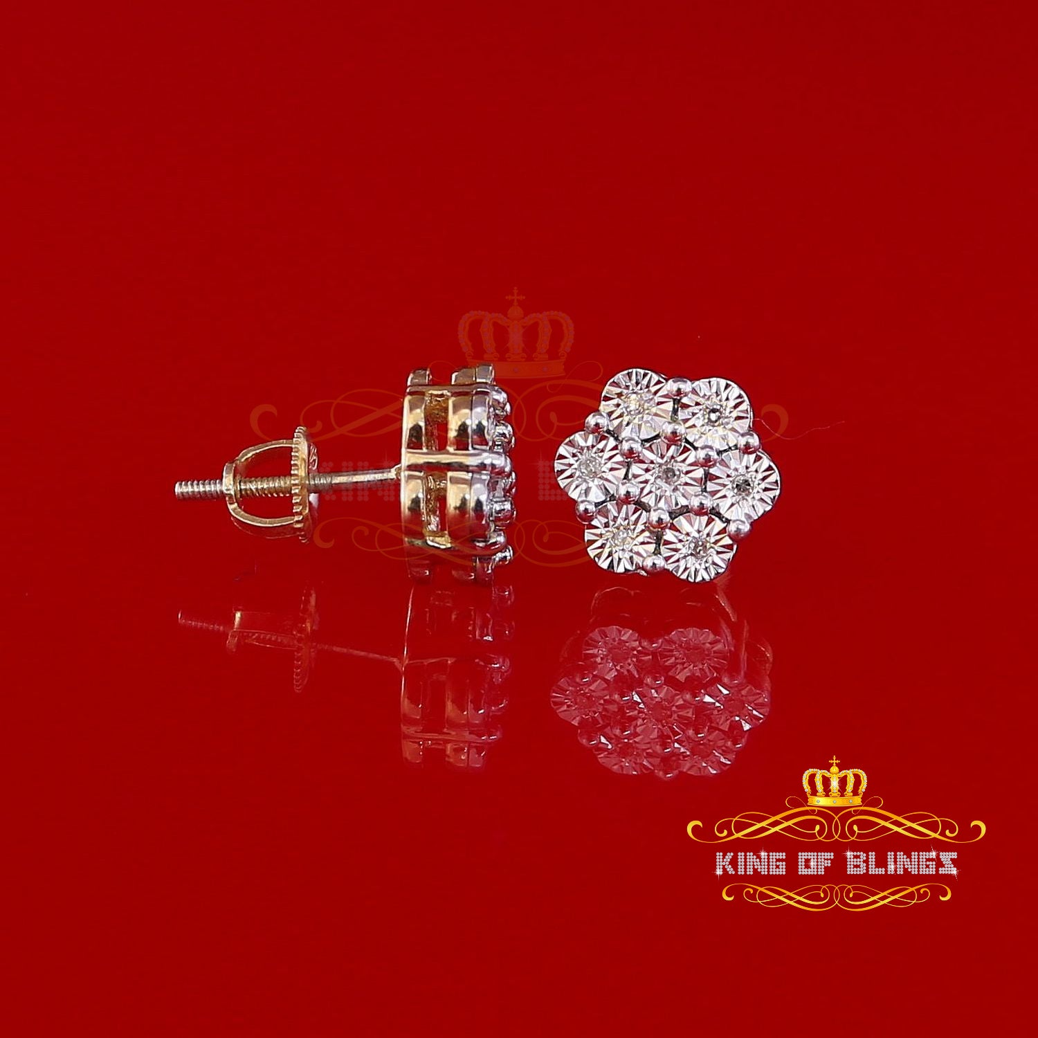 King of Blings-0.30ct Diamond 925 Sterling Silver Yellow Flower Earrings For Men's / Women's