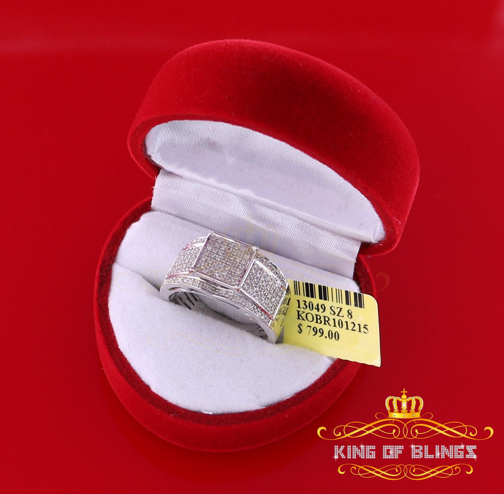 King Of Bling's 0.33 CT Real Diamond 925 Sterling White Silver Shine Womens Square Ring Size 7