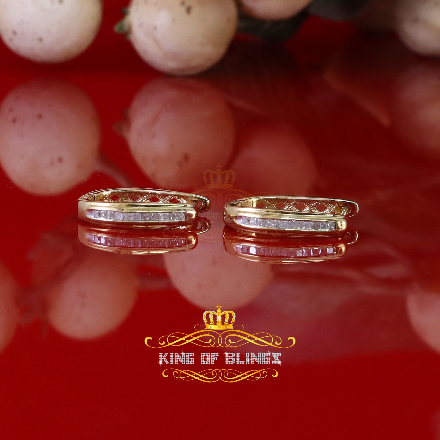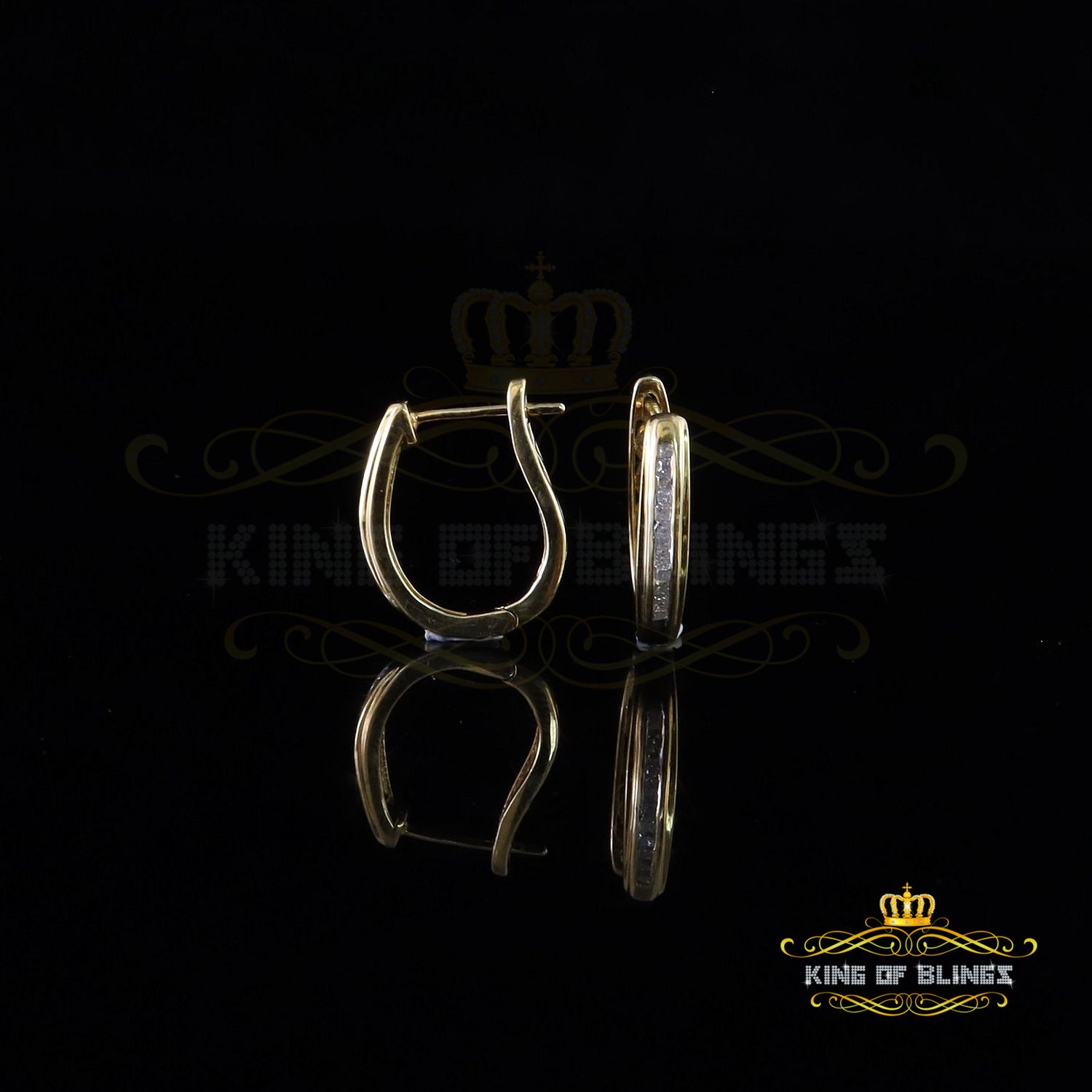 King of Blings-0.33ct Diamond 925 Sterling Silver Yellow Hoop Stud Earrings For Men's / Women's