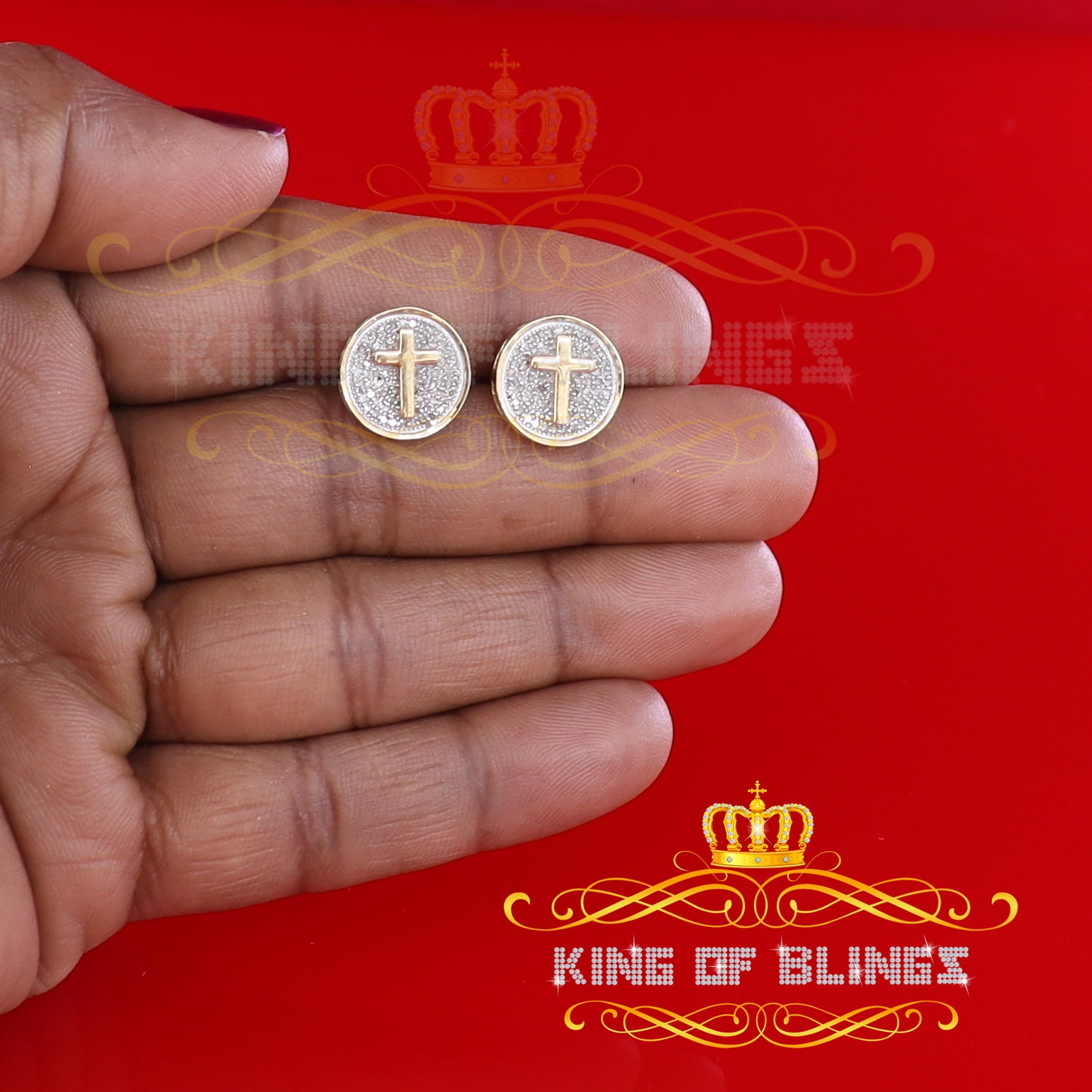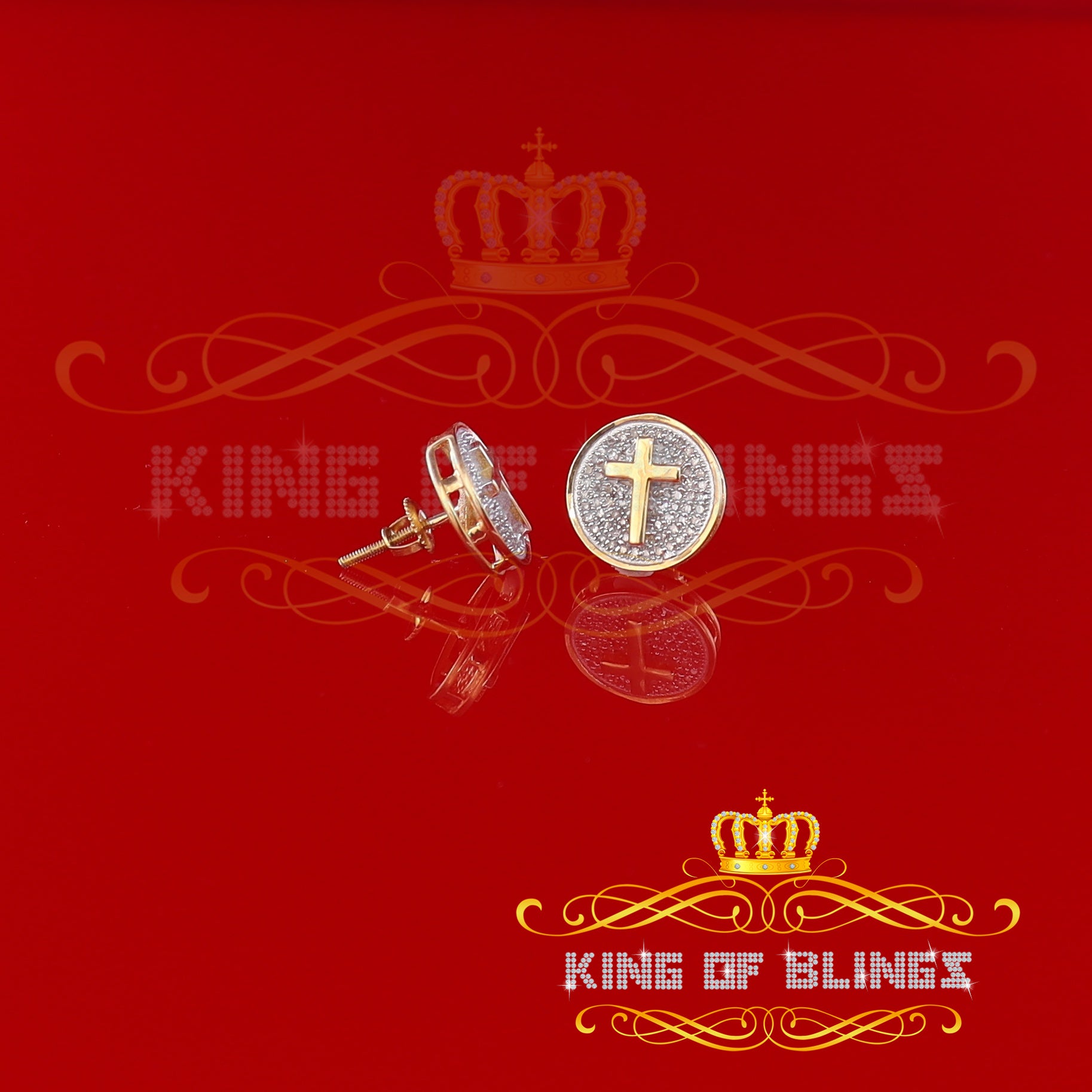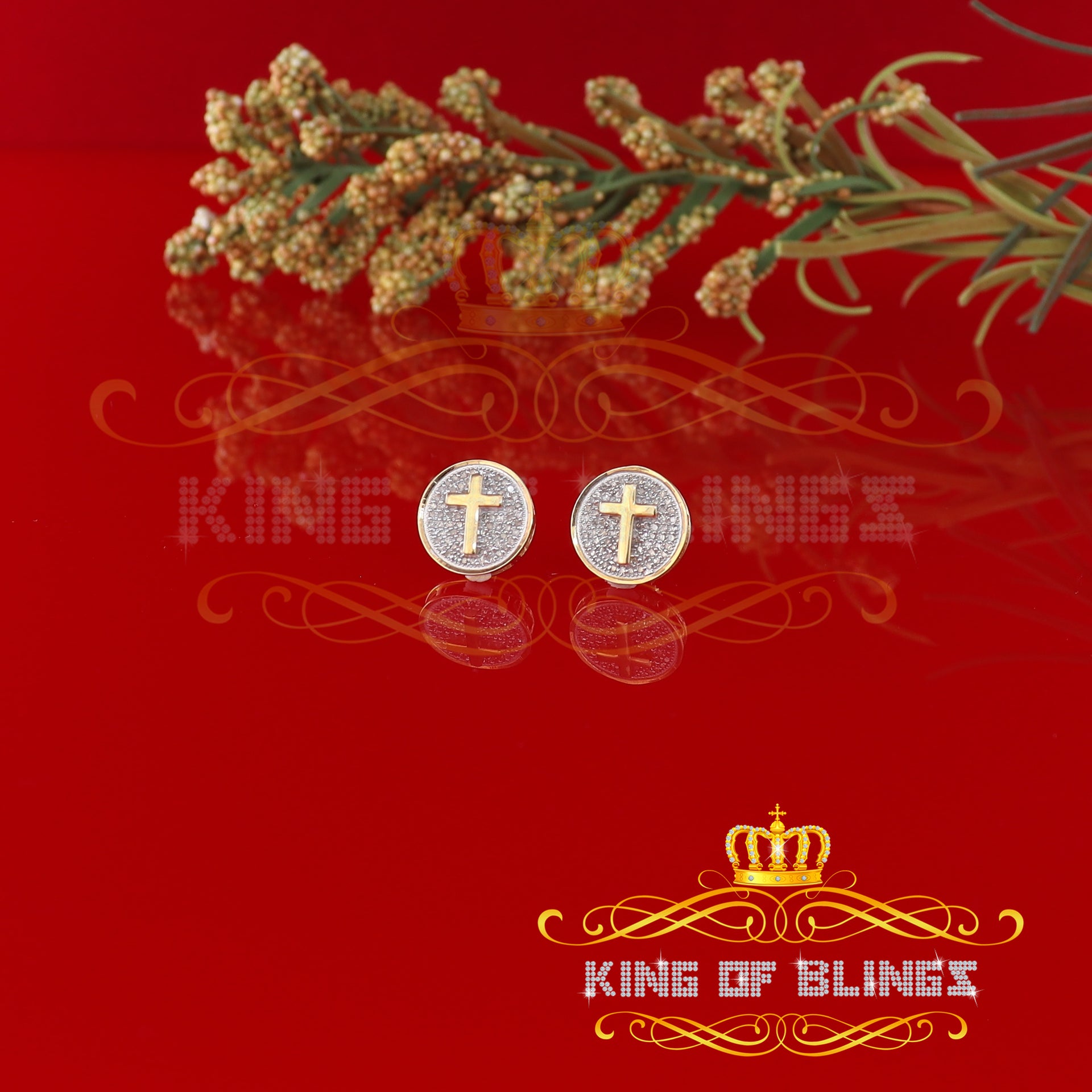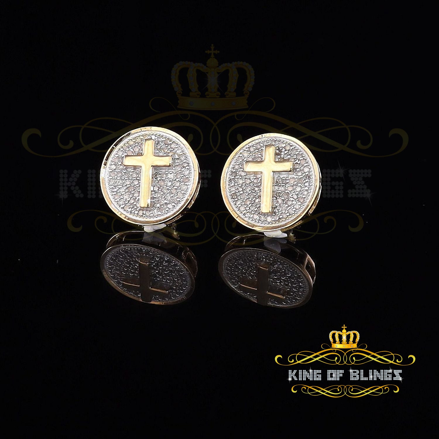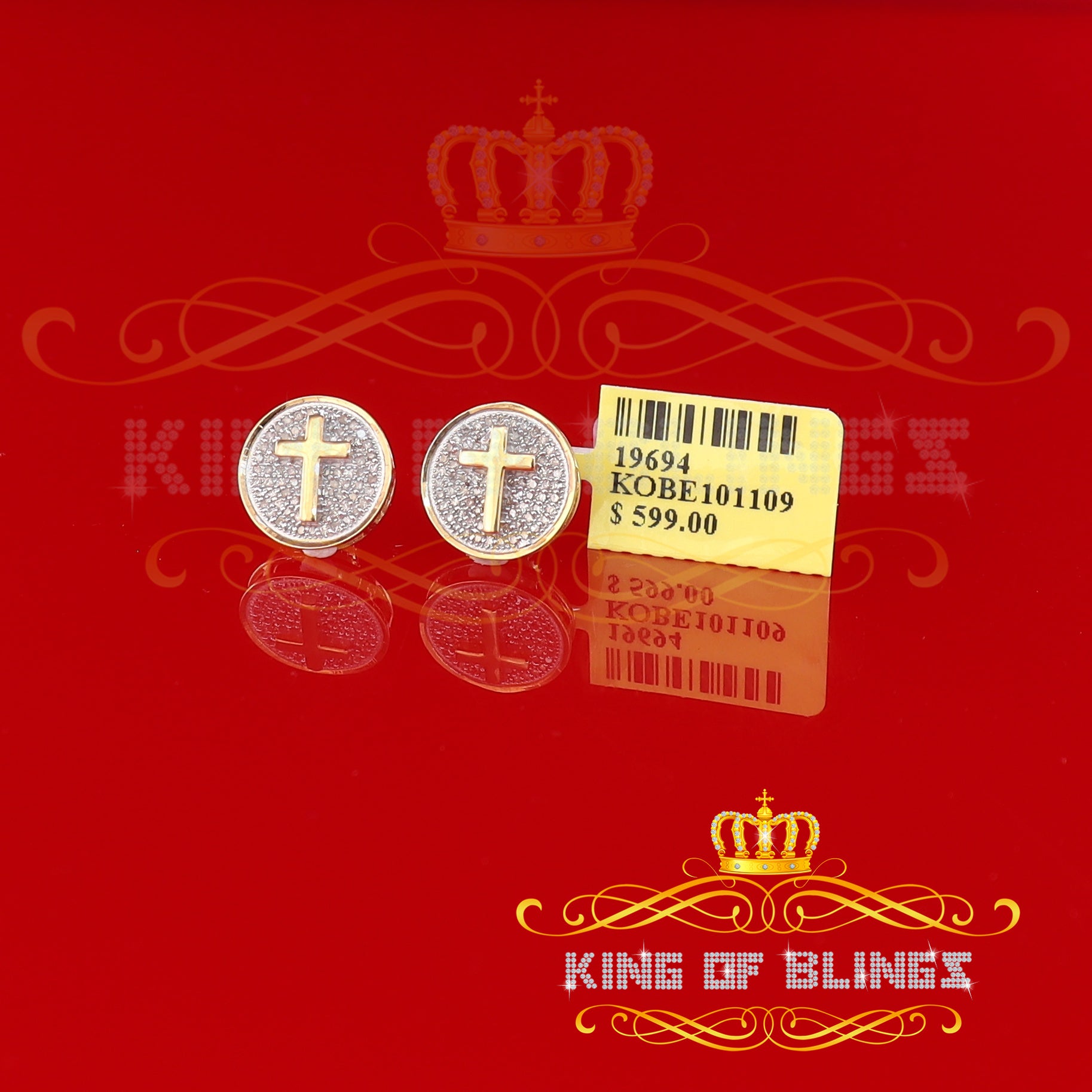 King of Blings-0.33ct Diamond 925 Sterling Silver Yellow Round Cross Earrings Men's / Women's