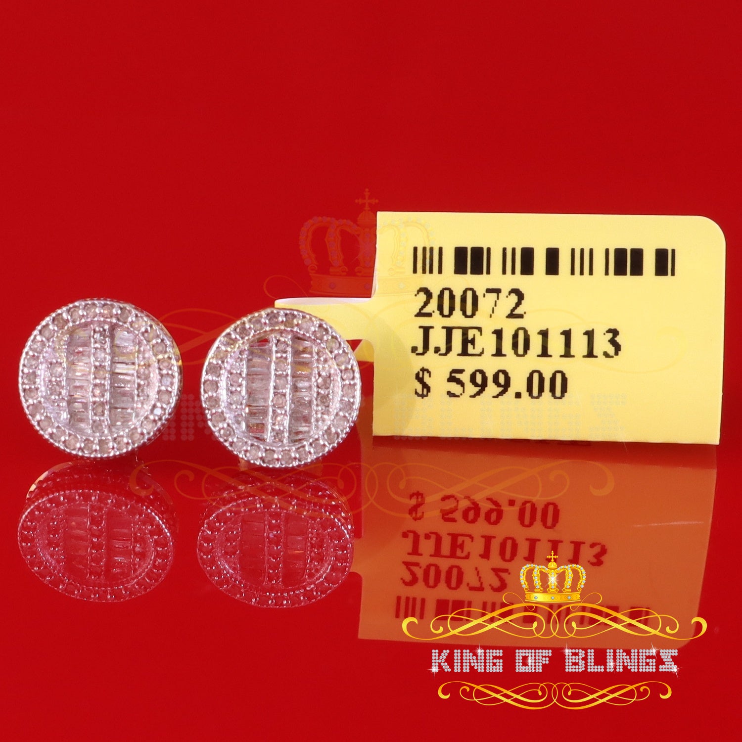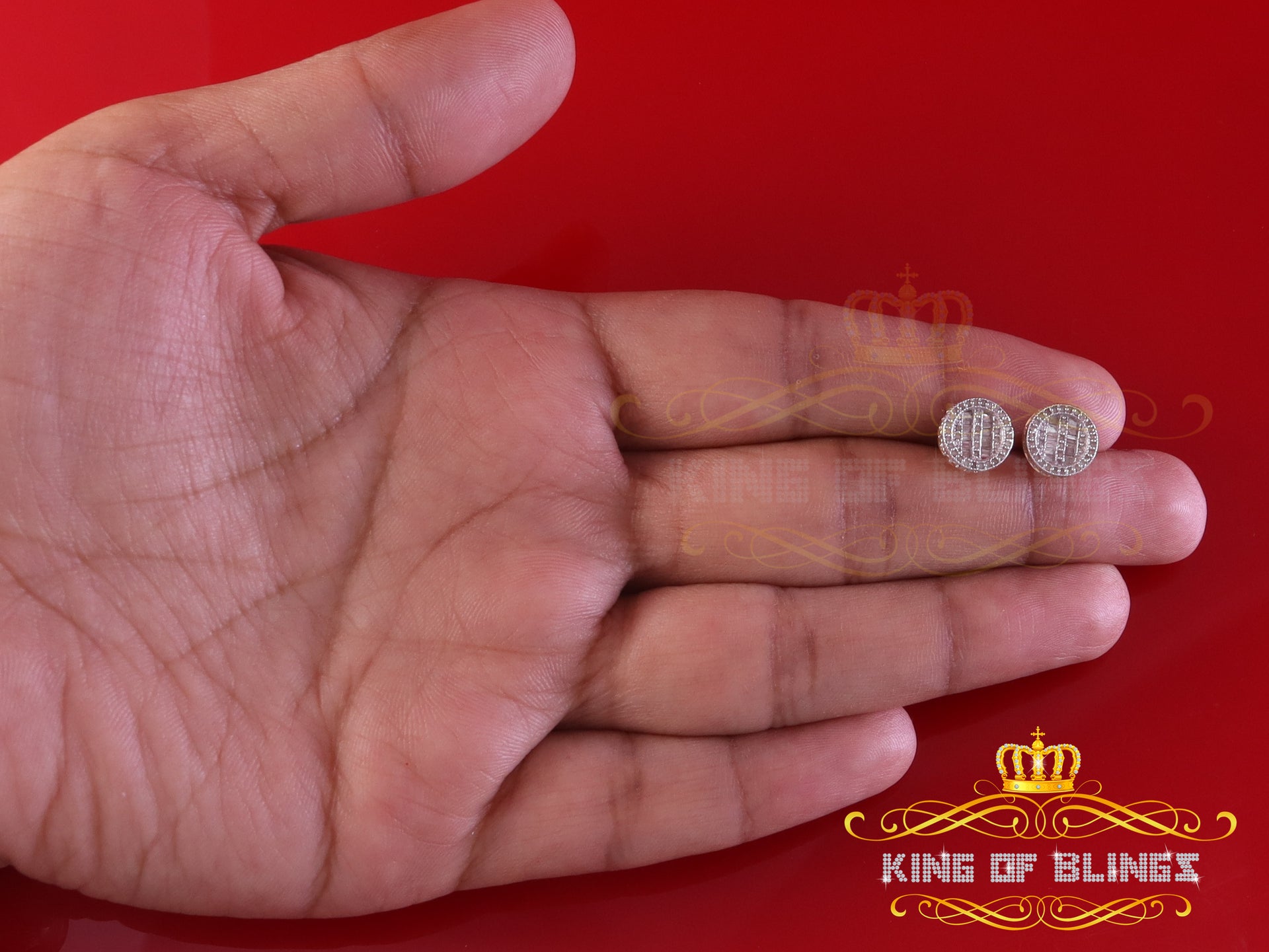Presented as new with tags in the original packaging, these Silver Diamond earrings are ready to add a touch of sophistication to any outfit, making them a perfect choice for those seeking a combination of style and quality appealing to both men and women with their captivating sparkle. rest assured that the "King Of Blings" brand guarantees exceptional craftsmanship and materials. these womens stud earrings make a perfect gift or a stylish addition to your own jewelry collection,