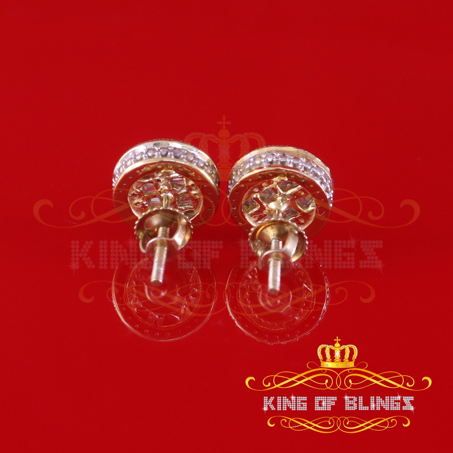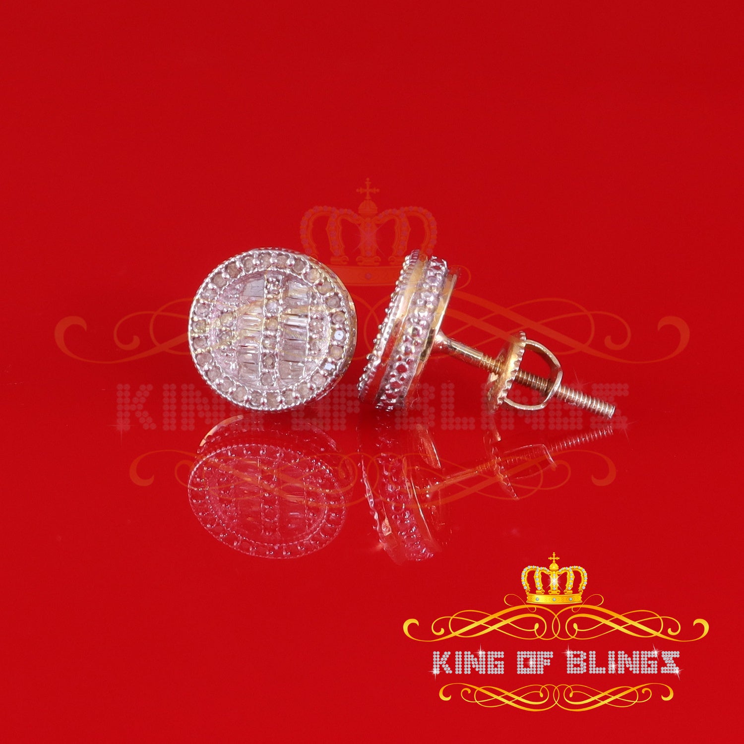 King of Blings-0.33ct Diamond 925 Sterling Yellow Silver For Men's & Womens Stud Round Earrings