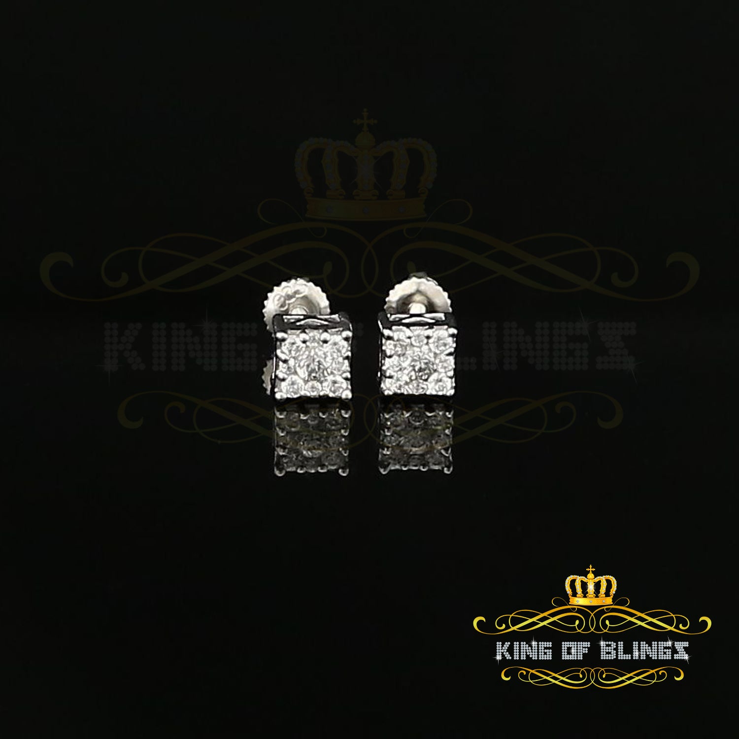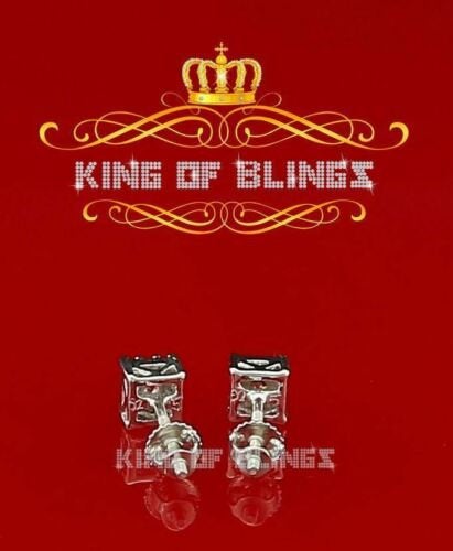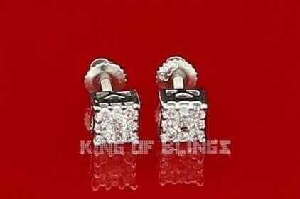 King of Bling's 0.34ct Cubic Zirconia 925 White Sterling Silver Women's Hip Hop Square Earrings