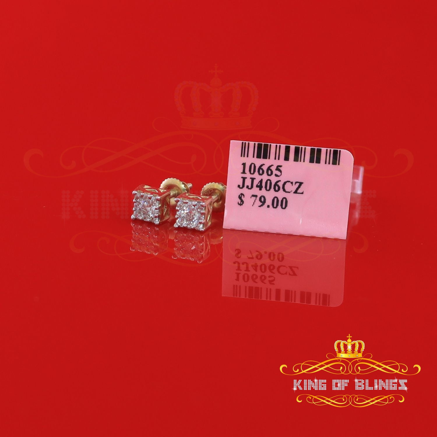 King of Bling's 0.34ct Cubic Zirconia 925 Yellow Silver Women's & Men's Hip Hop Square Earrings