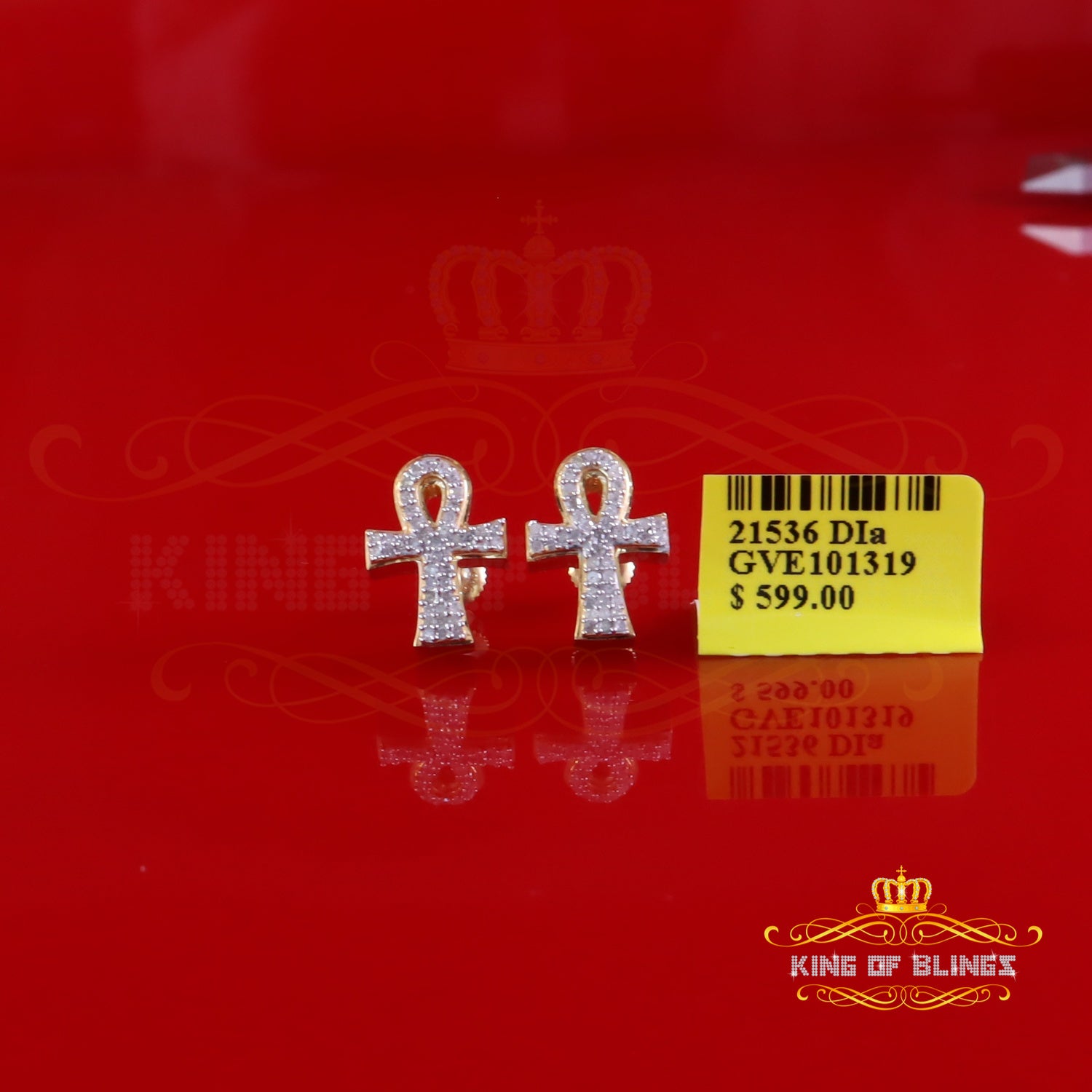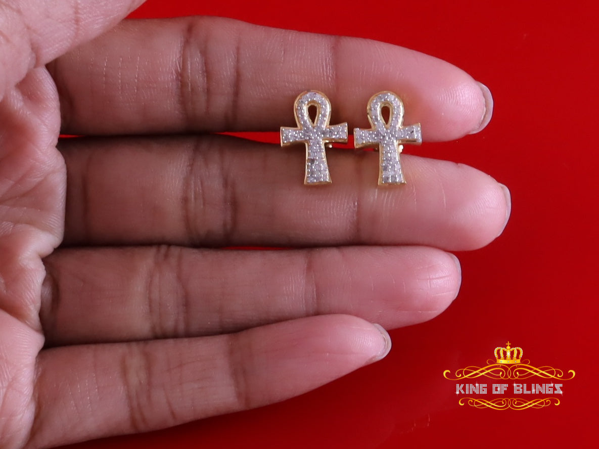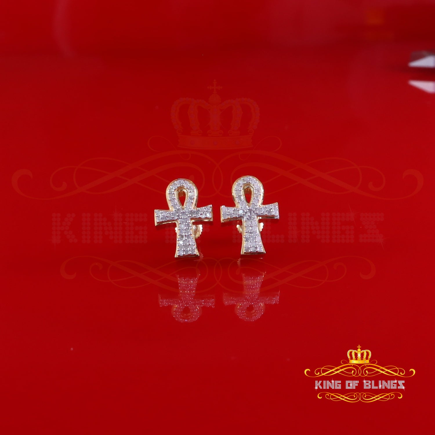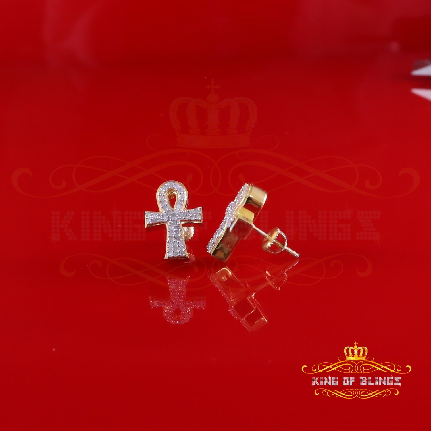 King of Blings-0.40ct Diamond 925 Sterling Silver Yellow for Men's & Women Stud ANKH Earring