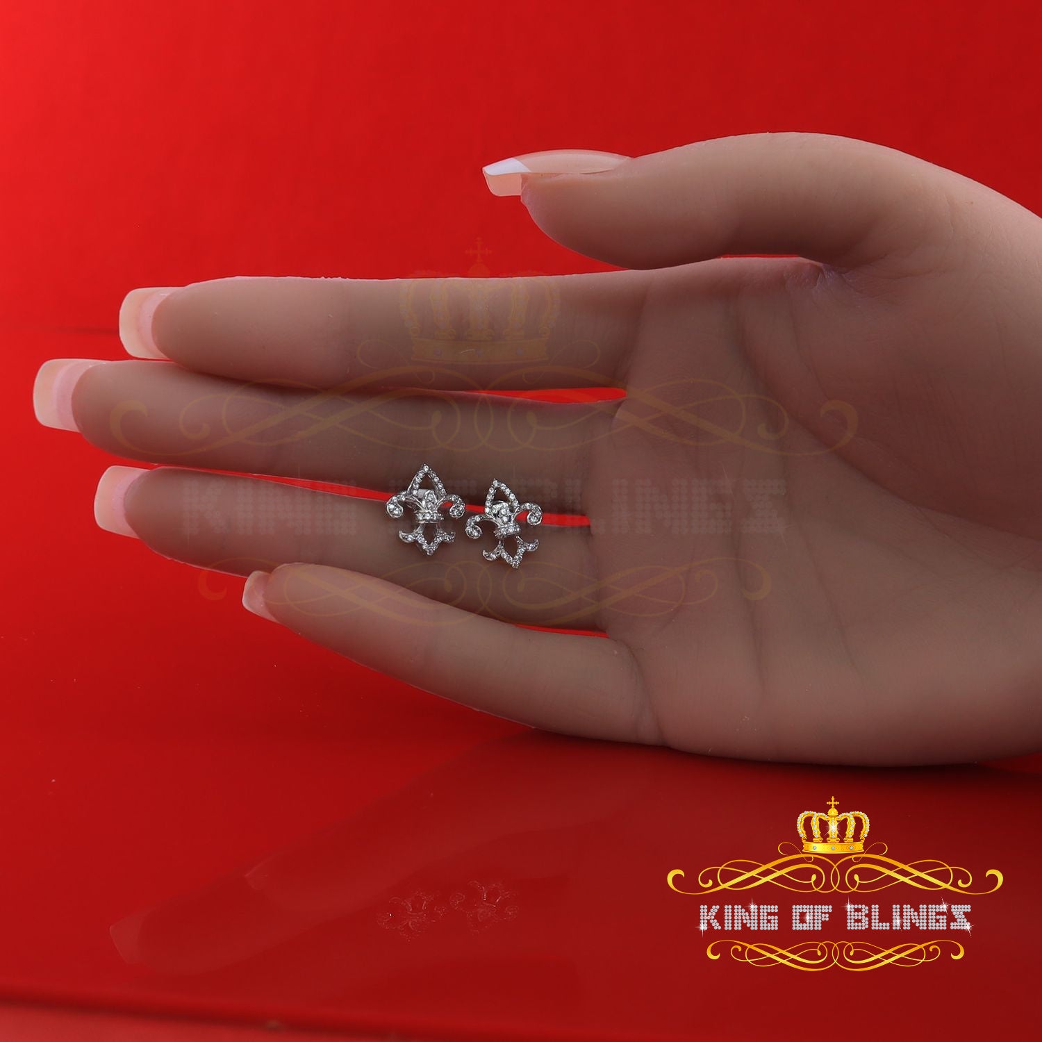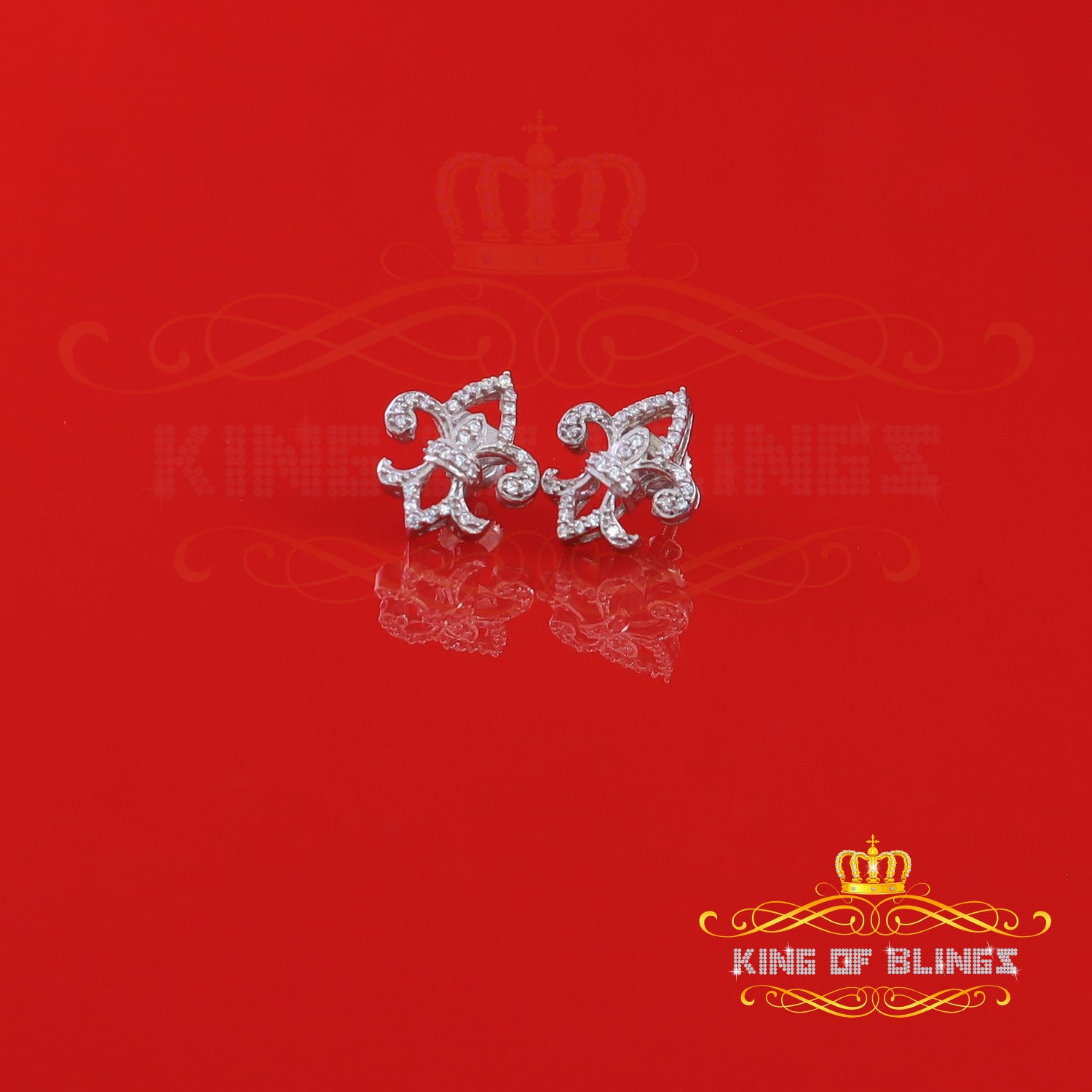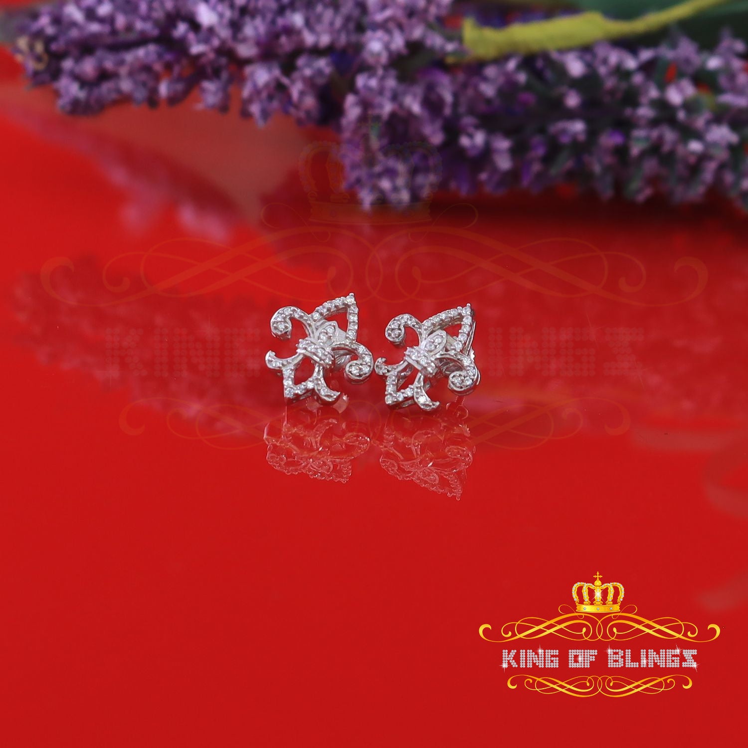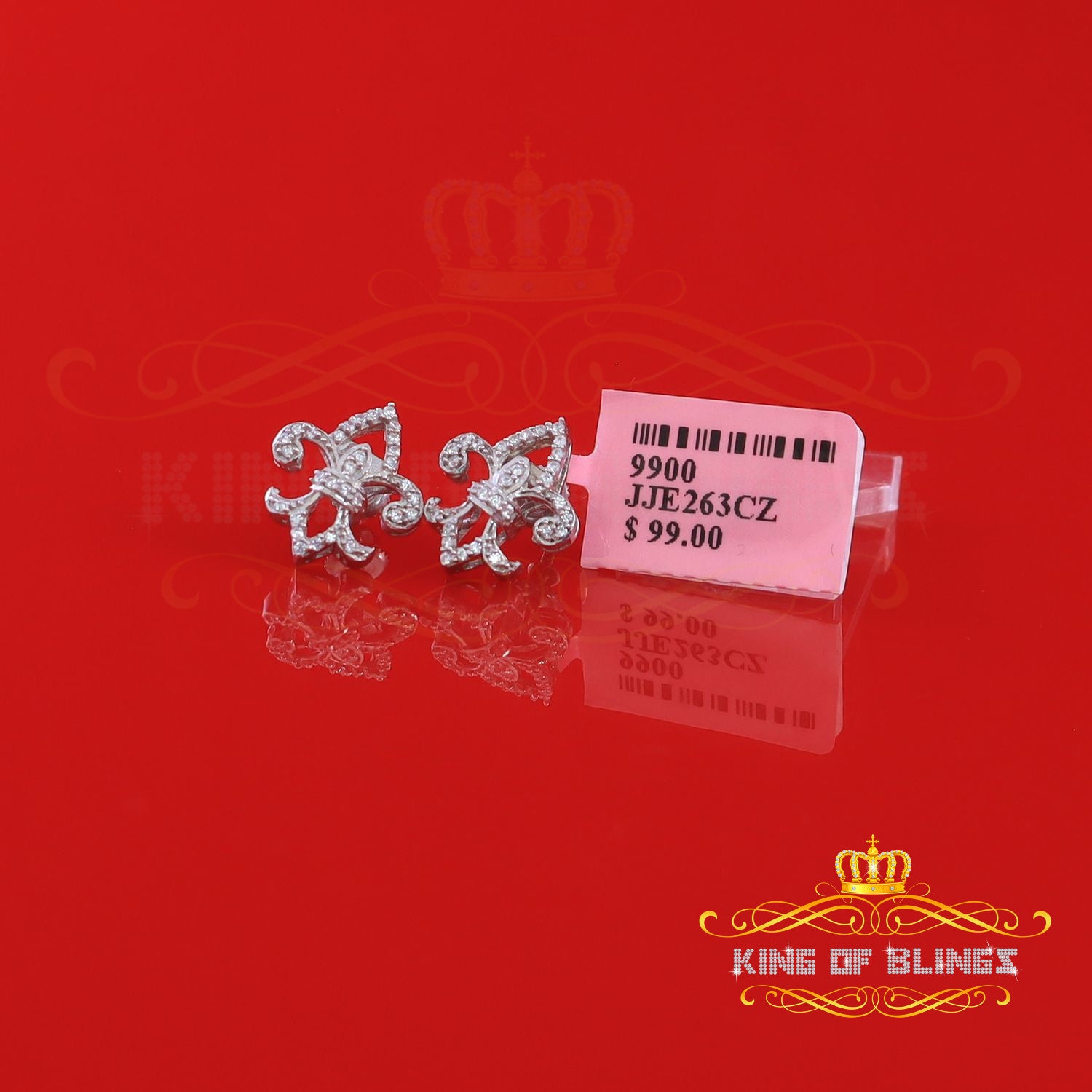 King of Bling's 0.60ct Cubic Zirconia 925 White Silver Women's Fleur de Lis Screw Back Earrings