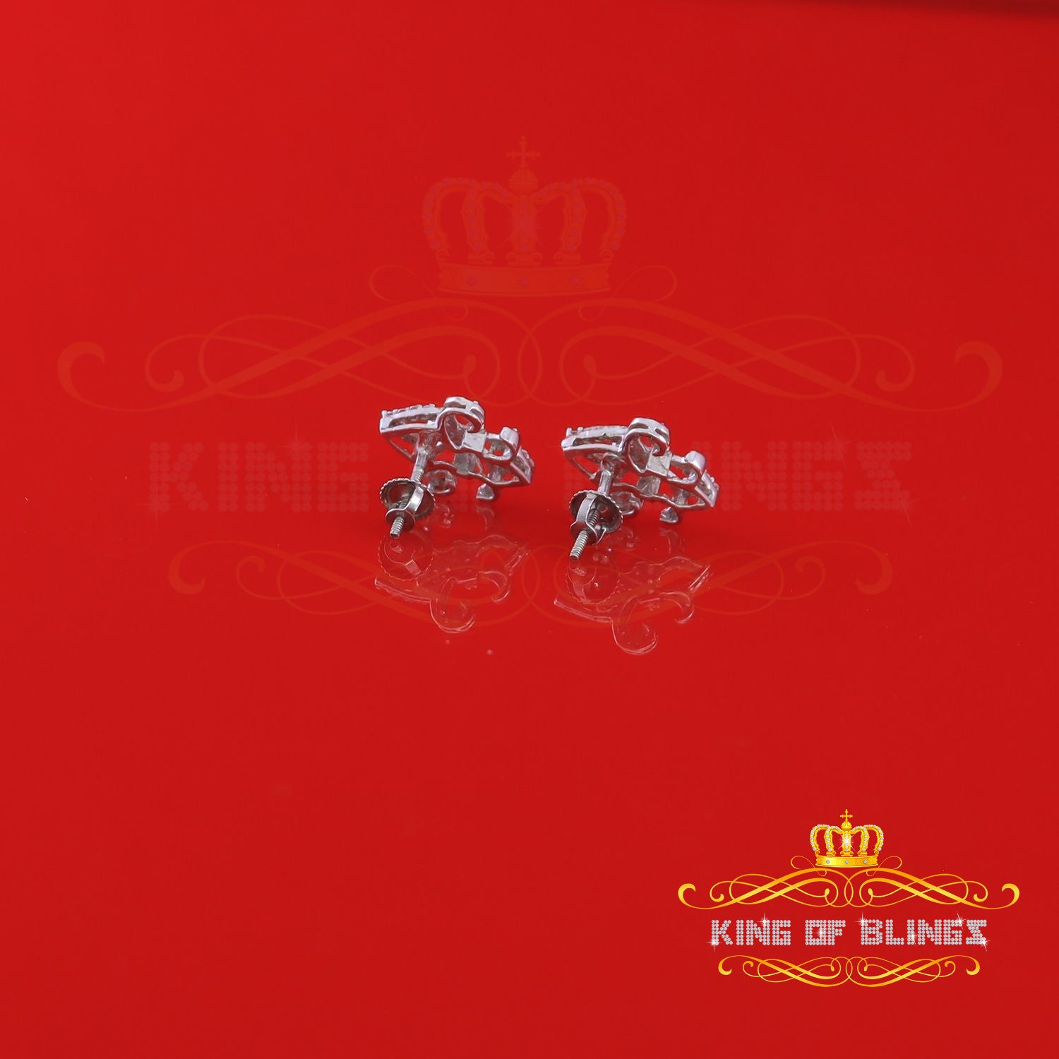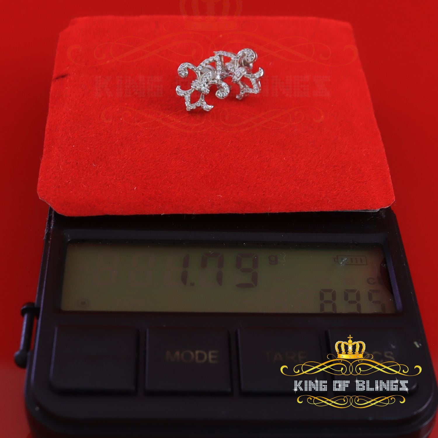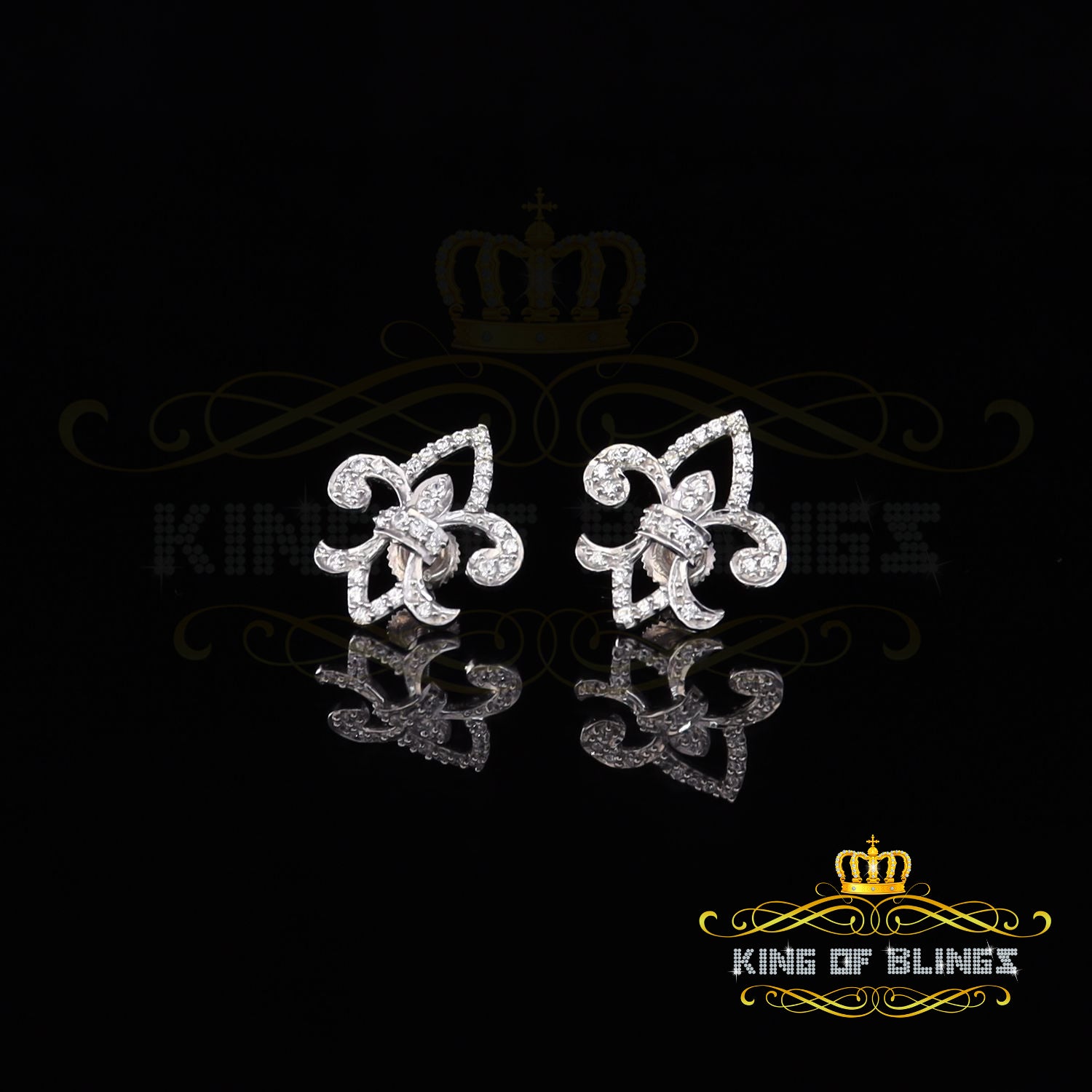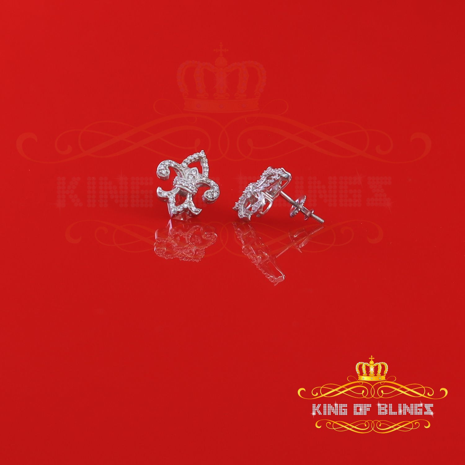 King of Bling's 0.60ct Cubic Zirconia 925 White Silver Women's Fleur de Lis Screw Back Earrings
