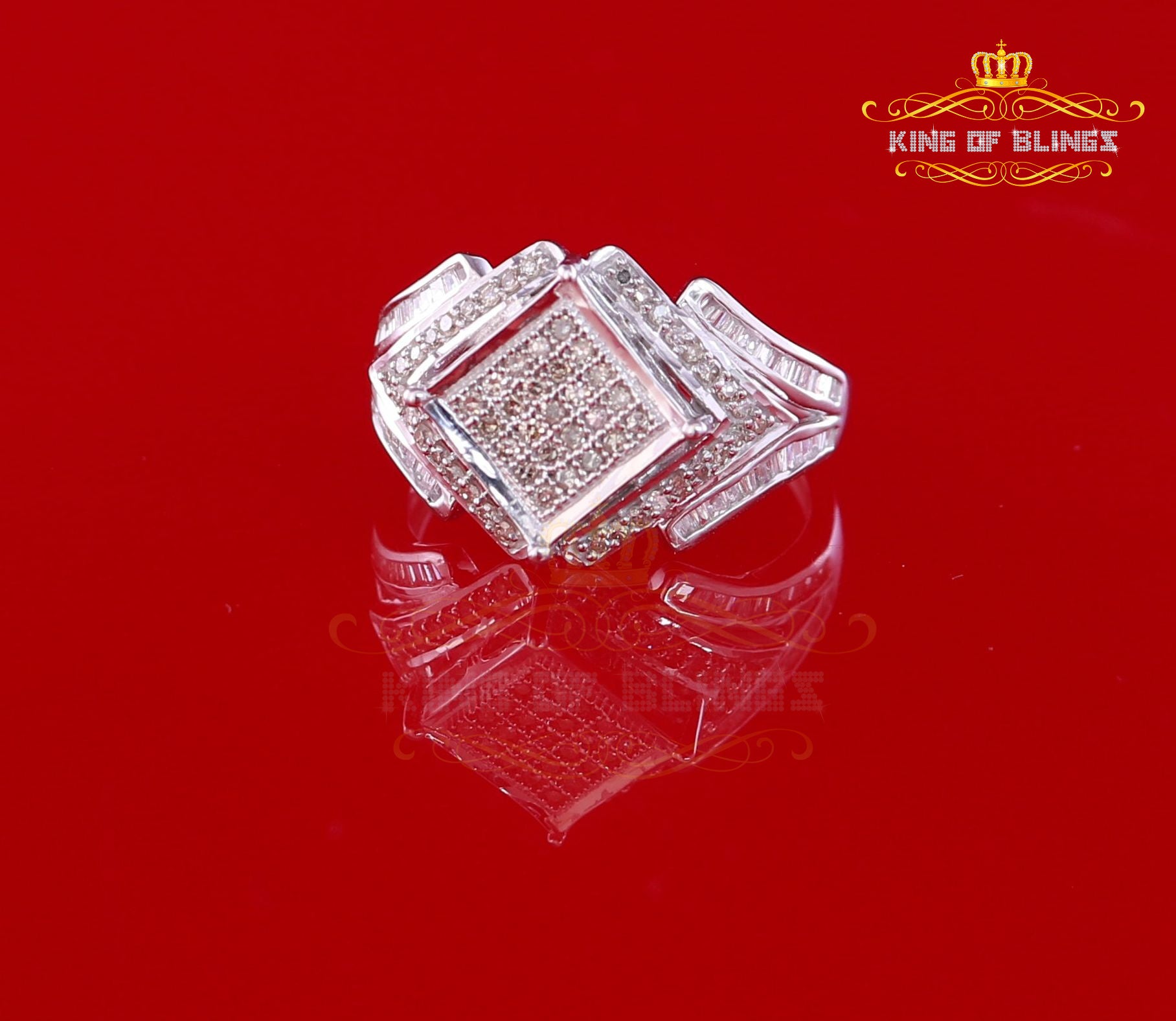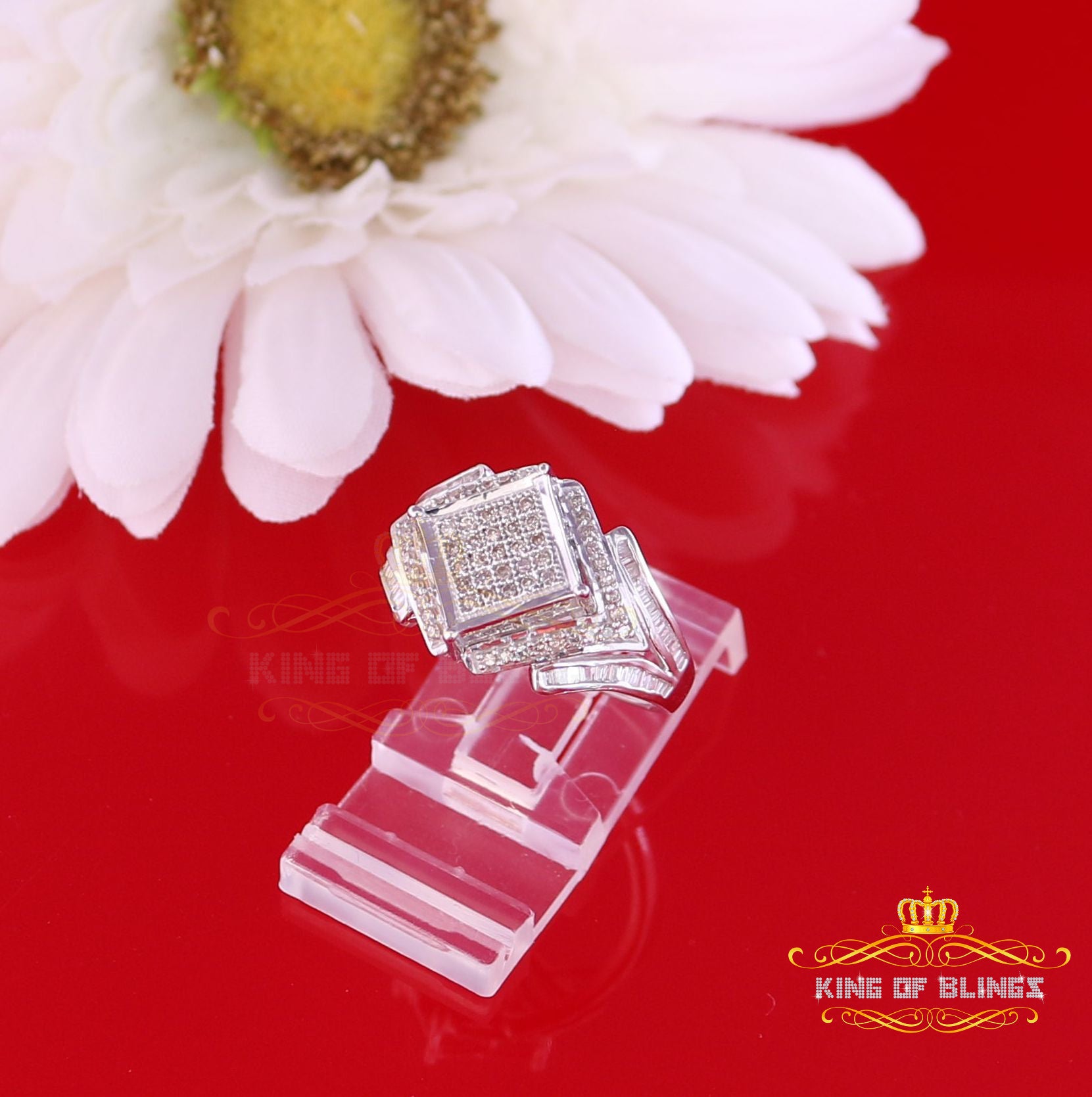 King Of Bling's 0.66 CT Real Diamond Mens sterling Silver White Ring Size 7 size Square Shape