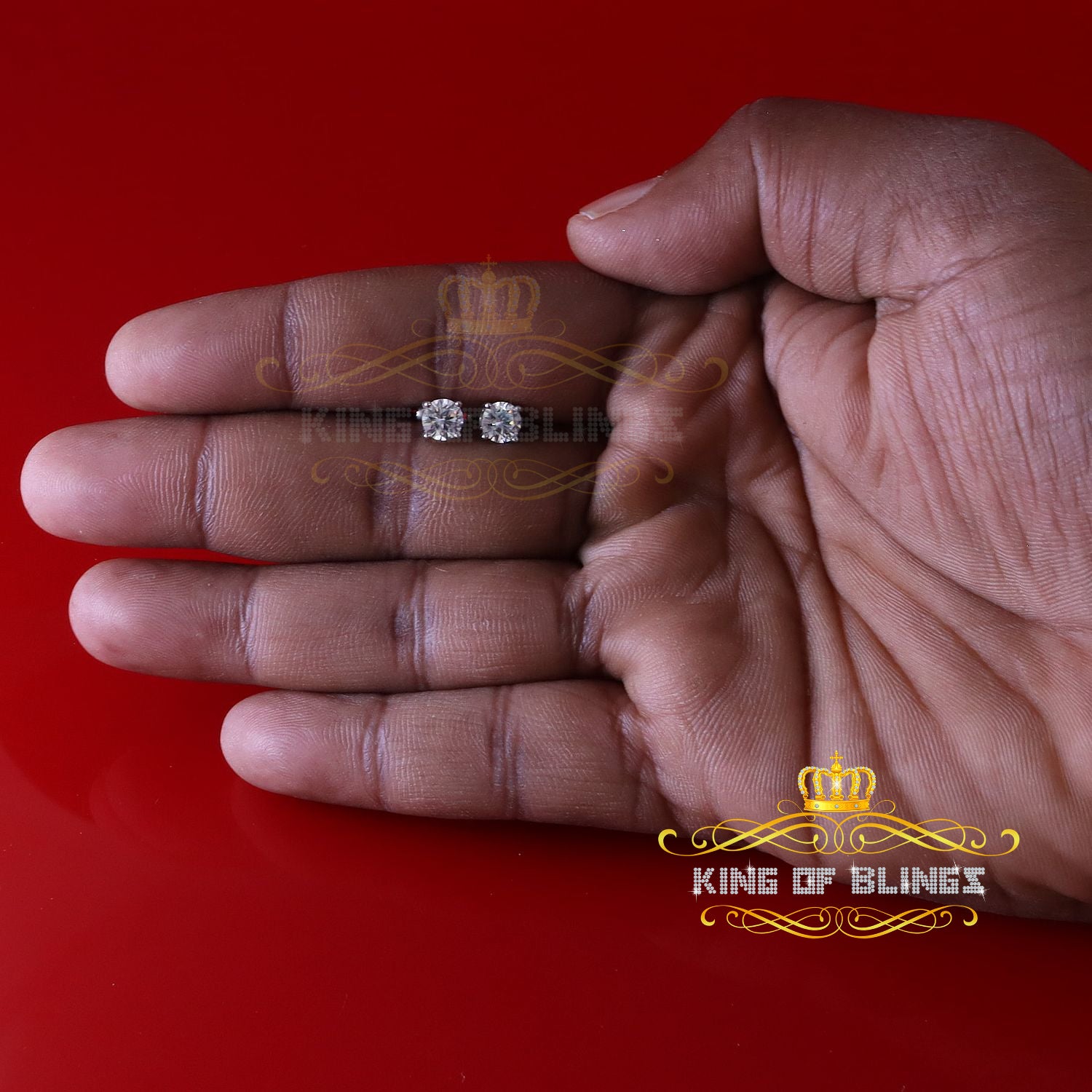 King of Bling's 1.00ct VVS 'D' Moissanite Men's/Womens 925 Silver White Round Stud Earrings