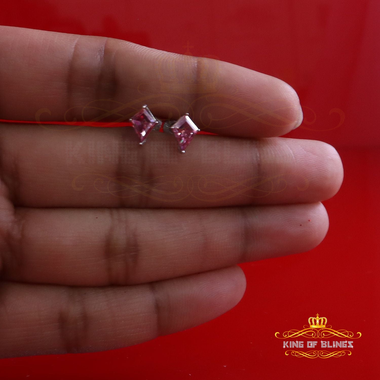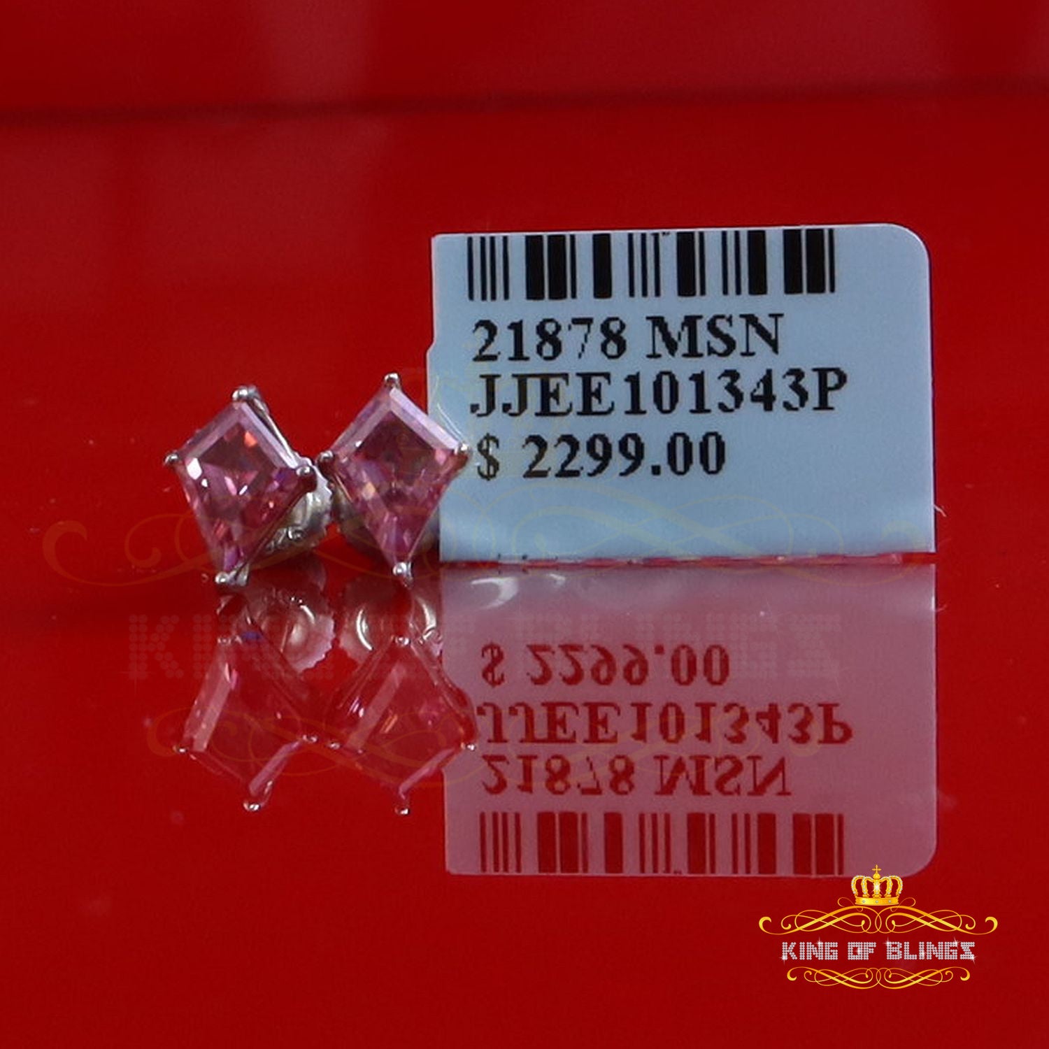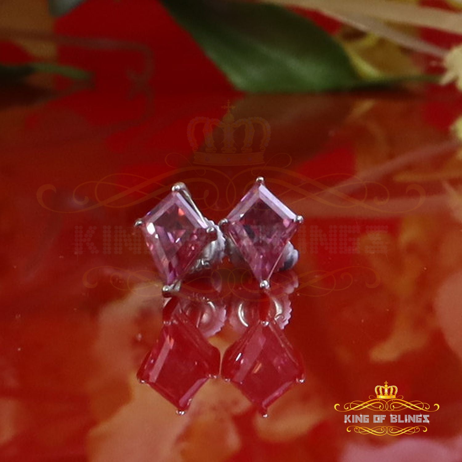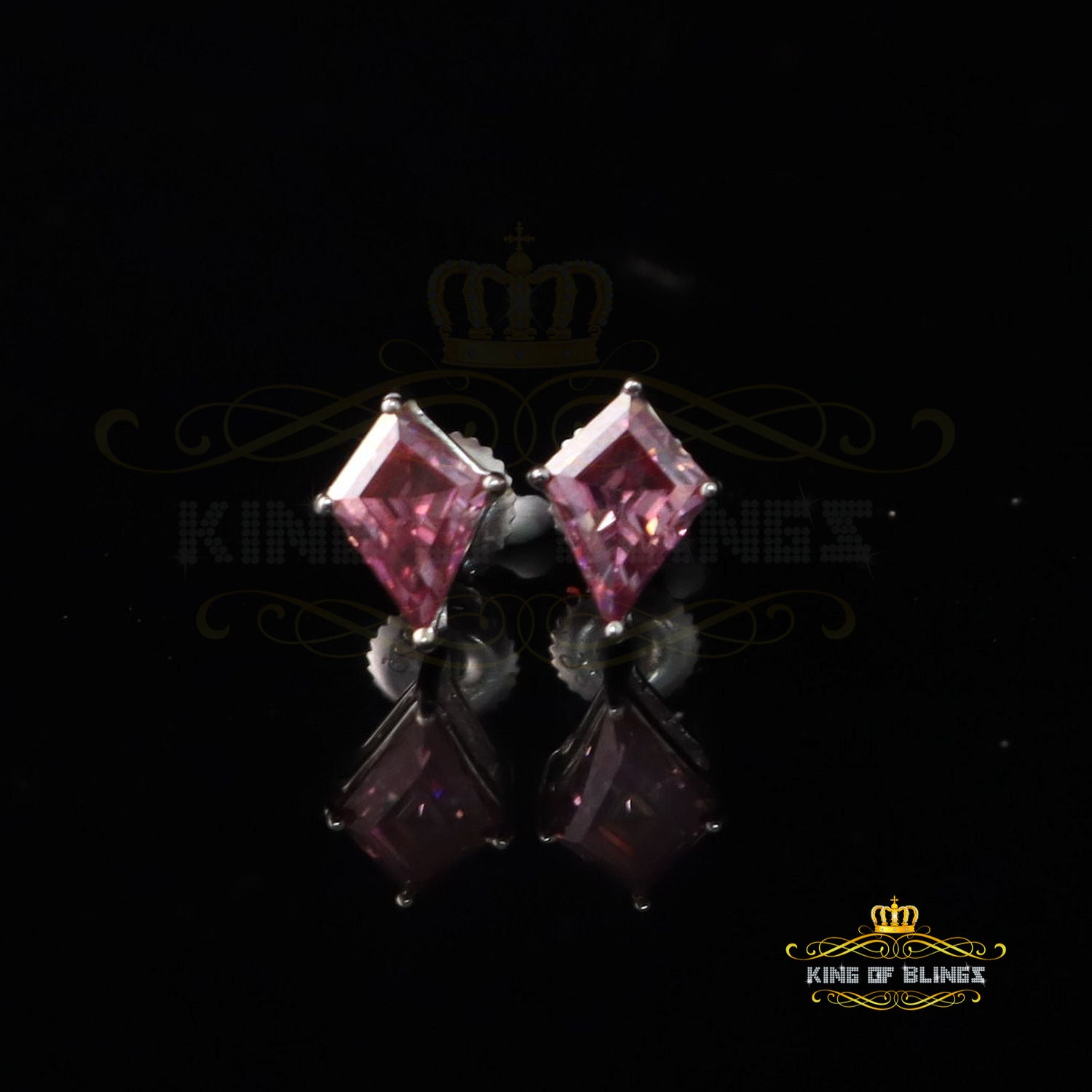 King of Bling's 1.00CT VVS D Pink Moissanite Women/Men 925 White Silver Solitaire Kite Earrings