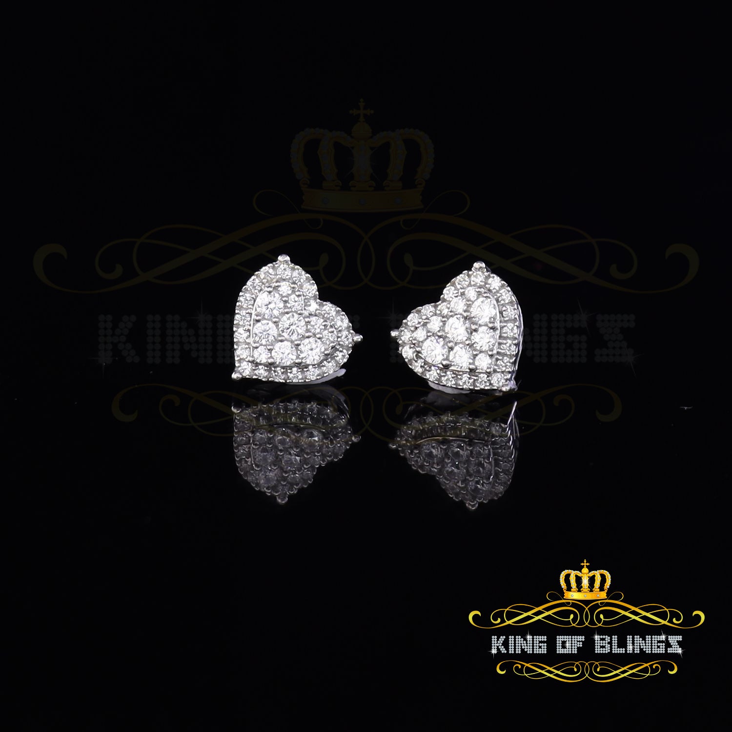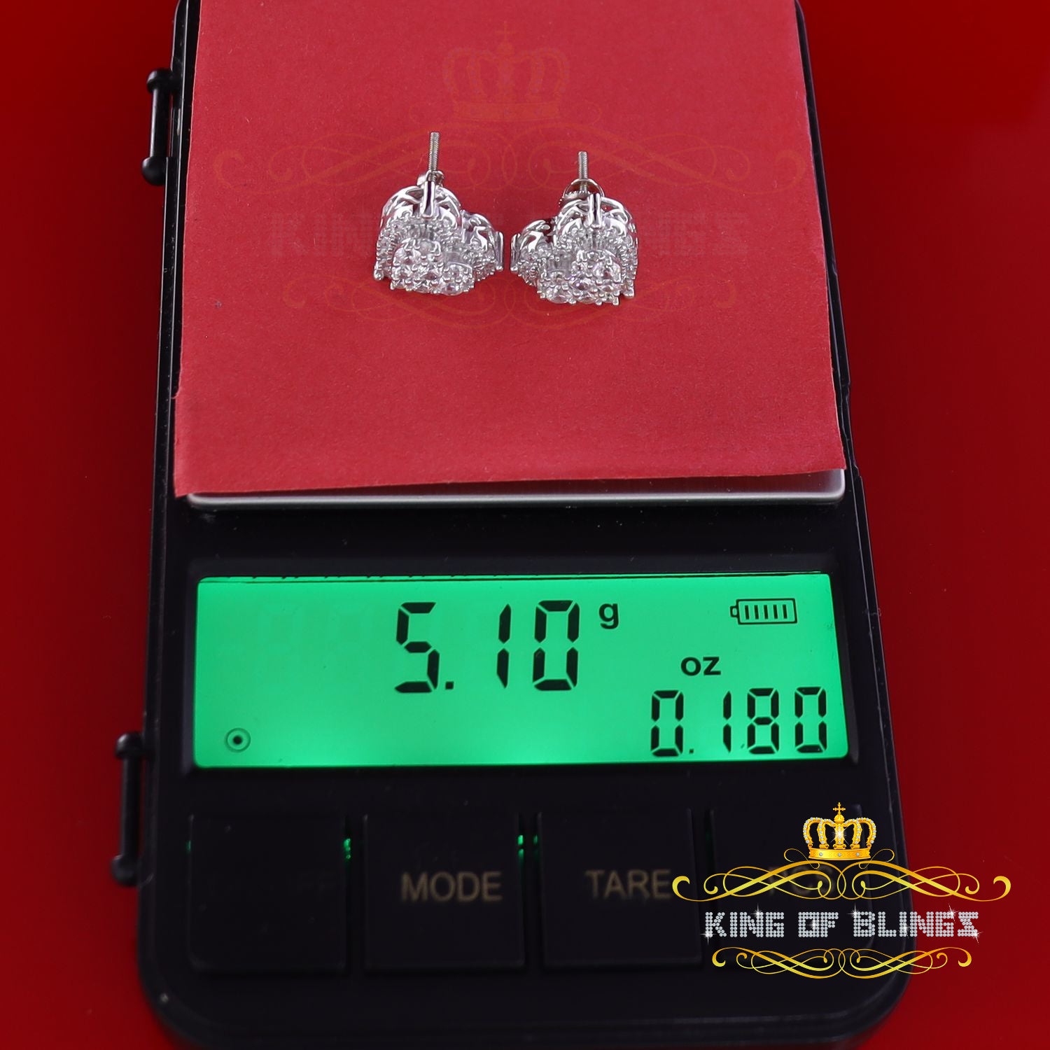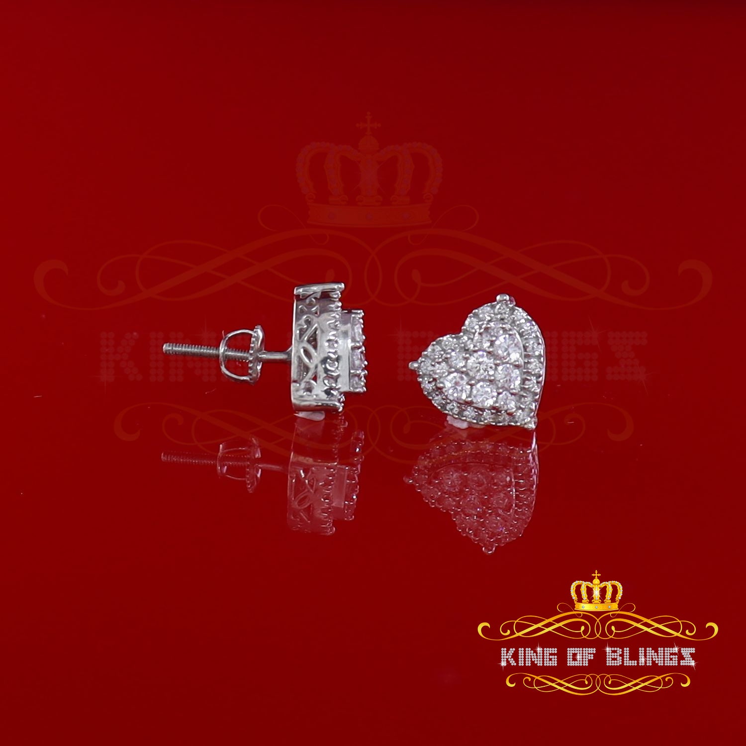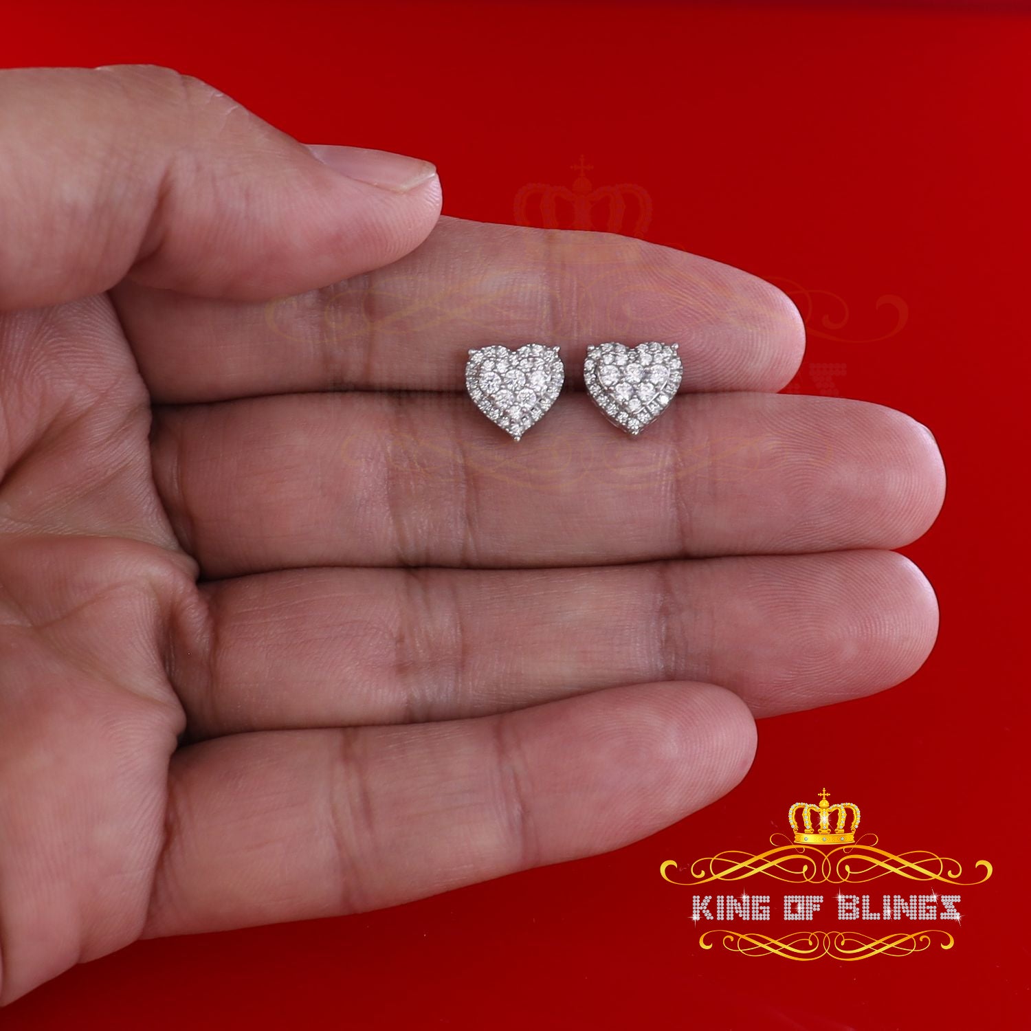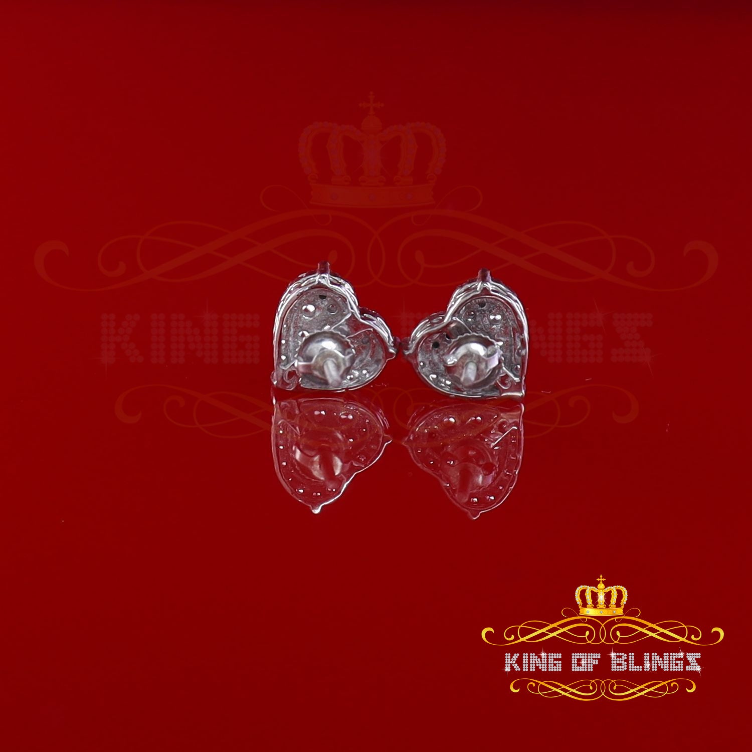 King of Bling's 1.18ct Cubic Zirconia 925 White Sterling Silver Women's Hip Hop Heart Earrings