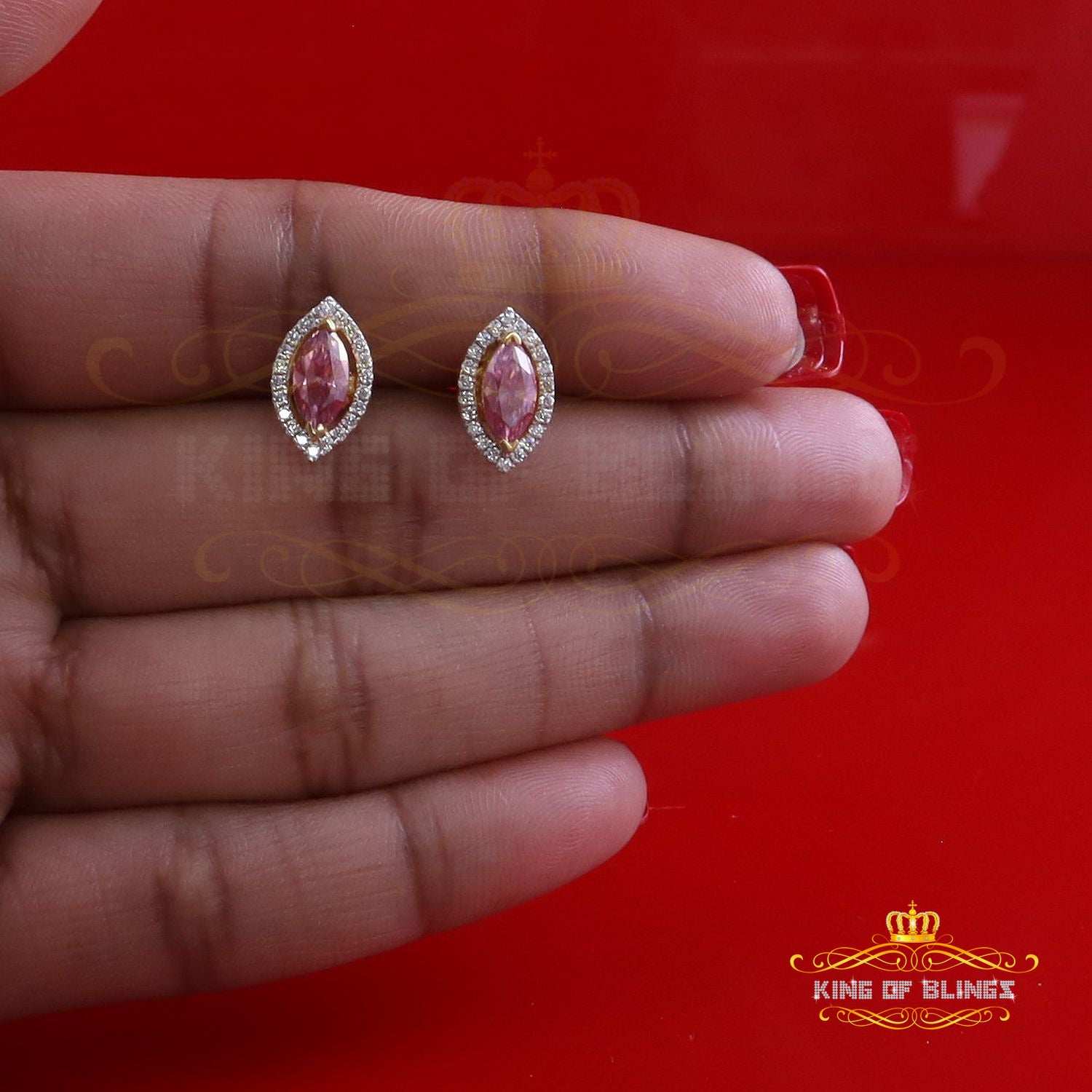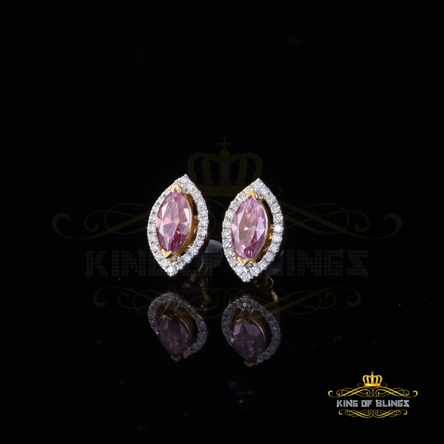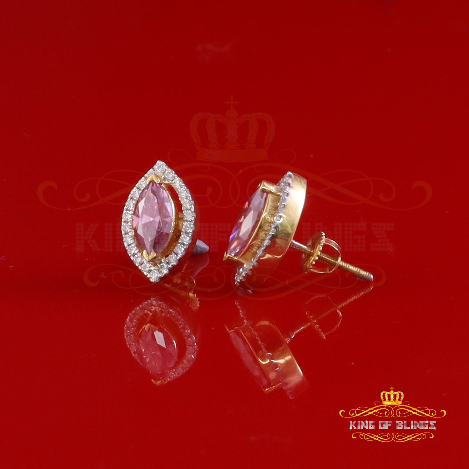 King of Bling's 1.25CT VVS 'D' Pink Moissanite Men's/Women 925 Yellow Silver Stud Earrings