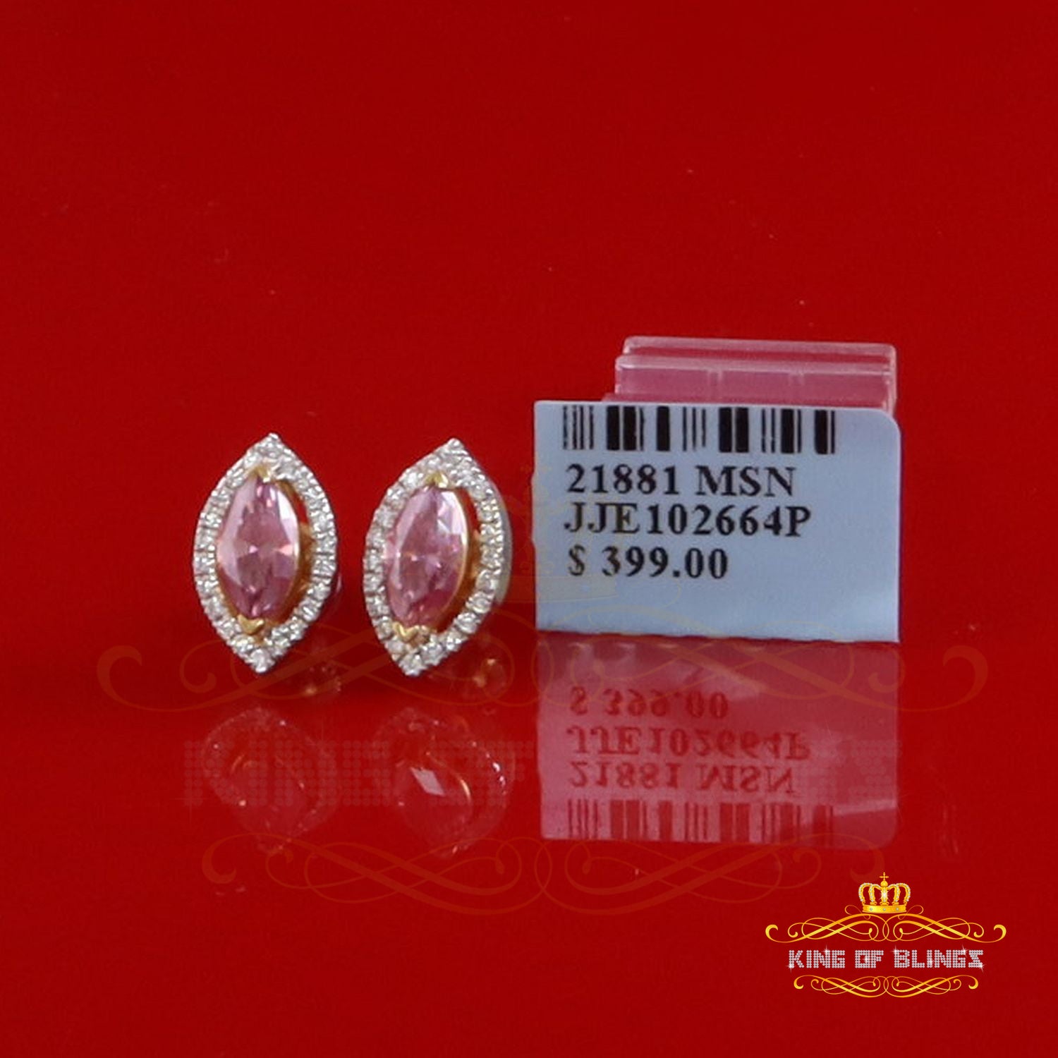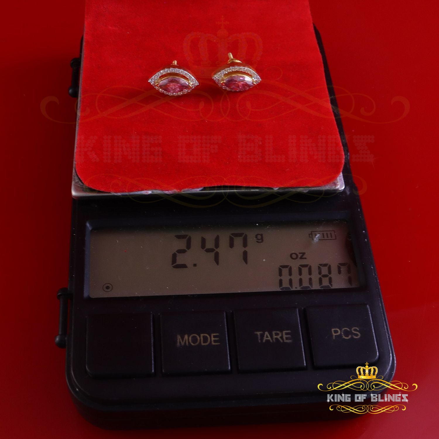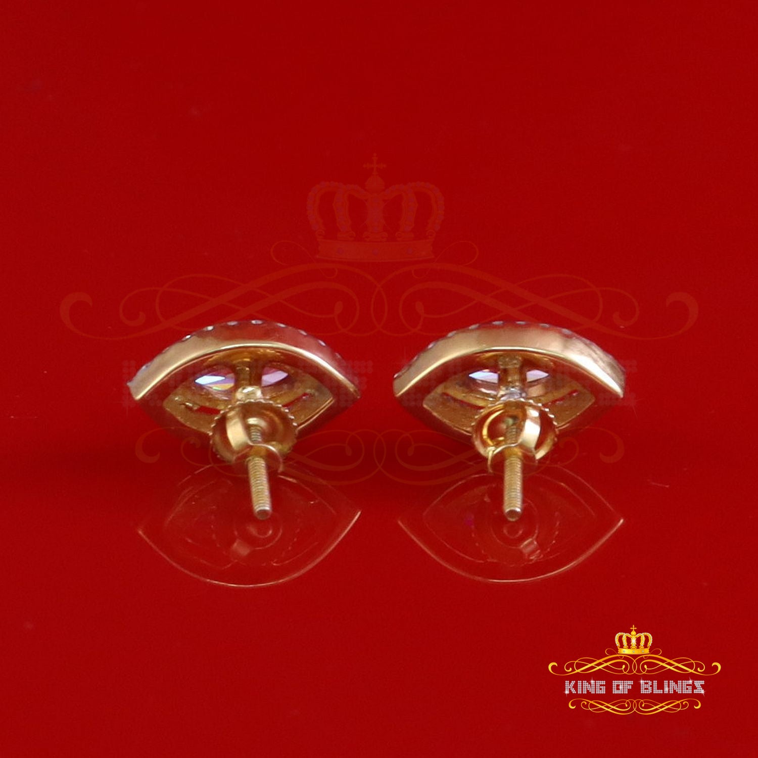 King of Bling's 1.25CT VVS 'D' Pink Moissanite Men's/Women 925 Yellow Silver Stud Earrings