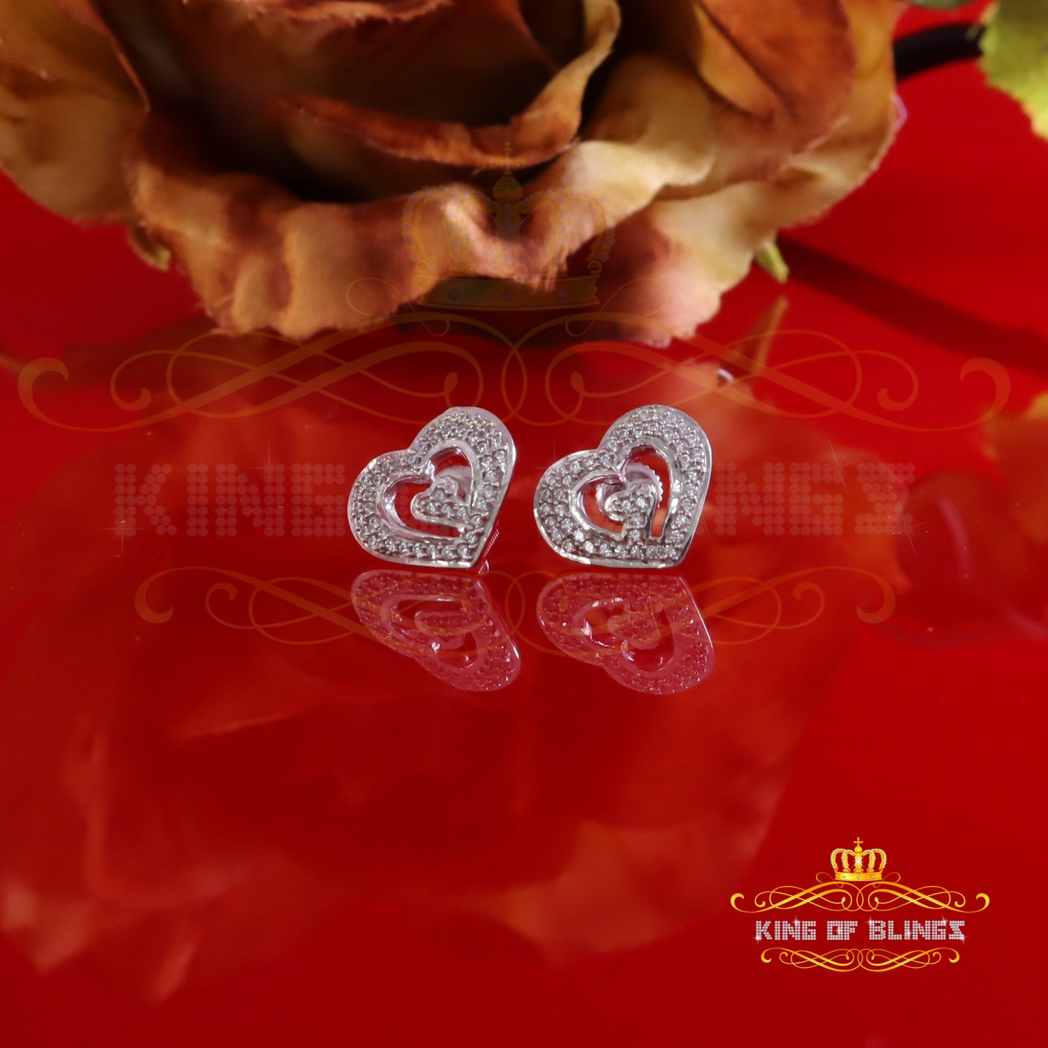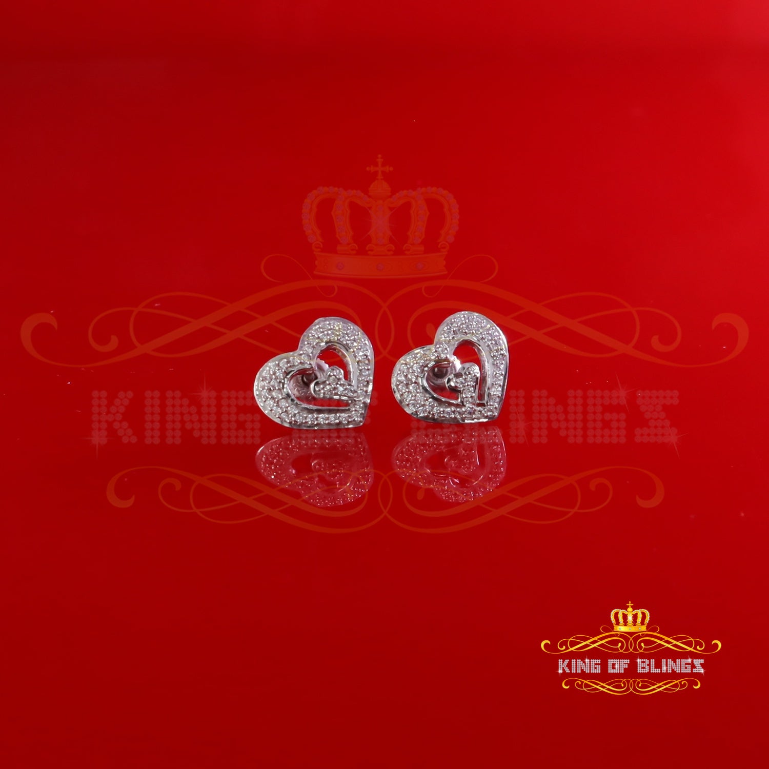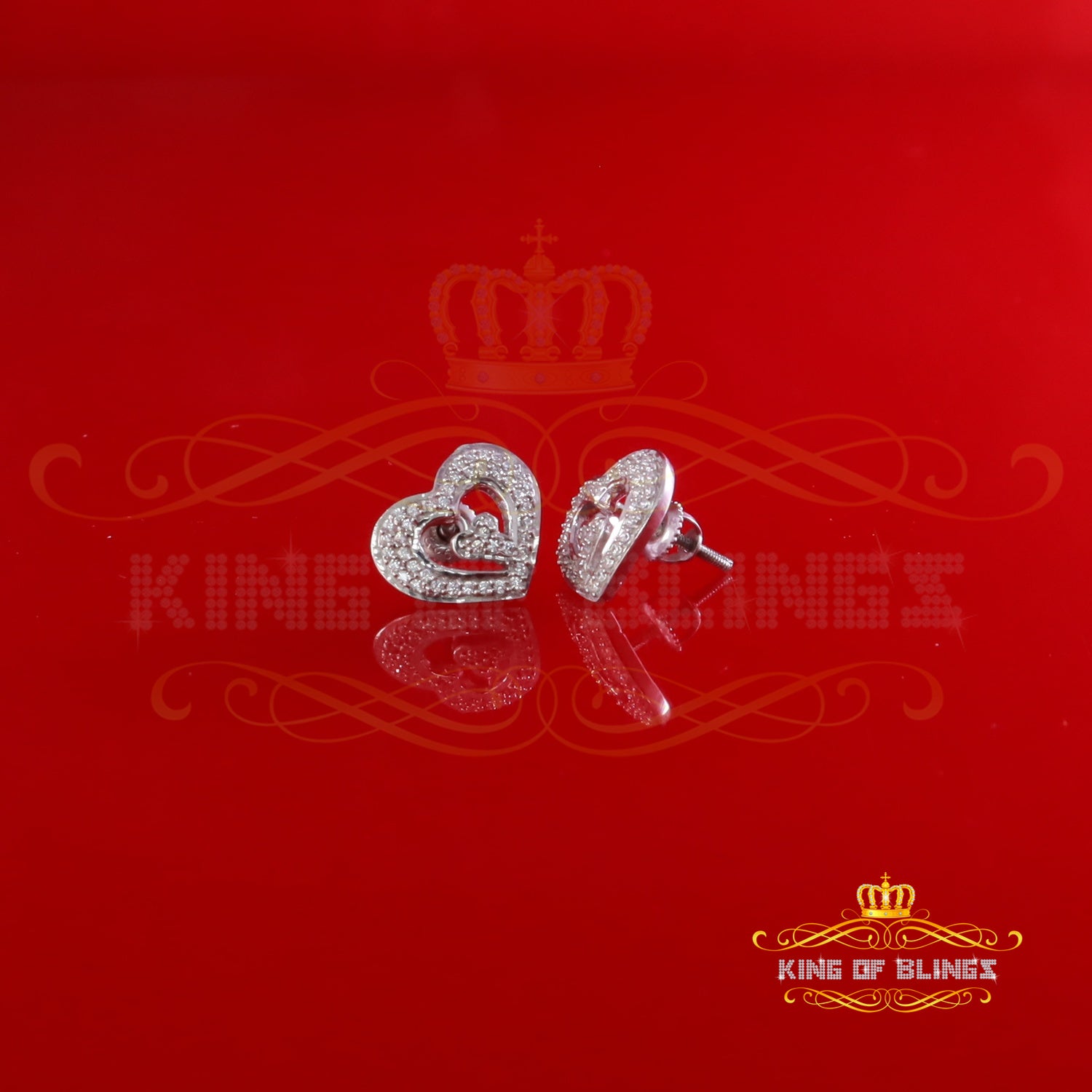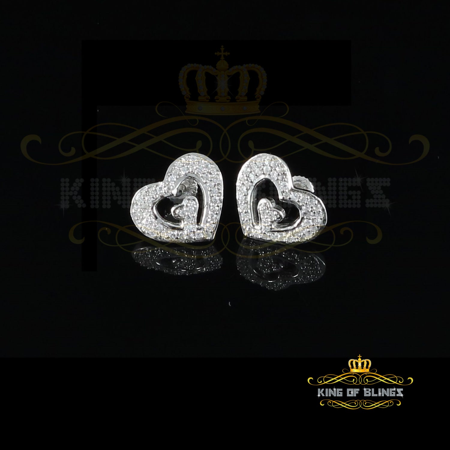 King of Blings- 1.26ct Cubic Zirconia 925 White Sterling Silver Women's Hip Hop Heart Earrings