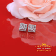 King of Bling's 1.2ct Cubic Zirconia 925 White Sterling Silver Women's Hip Hop Square Earrings