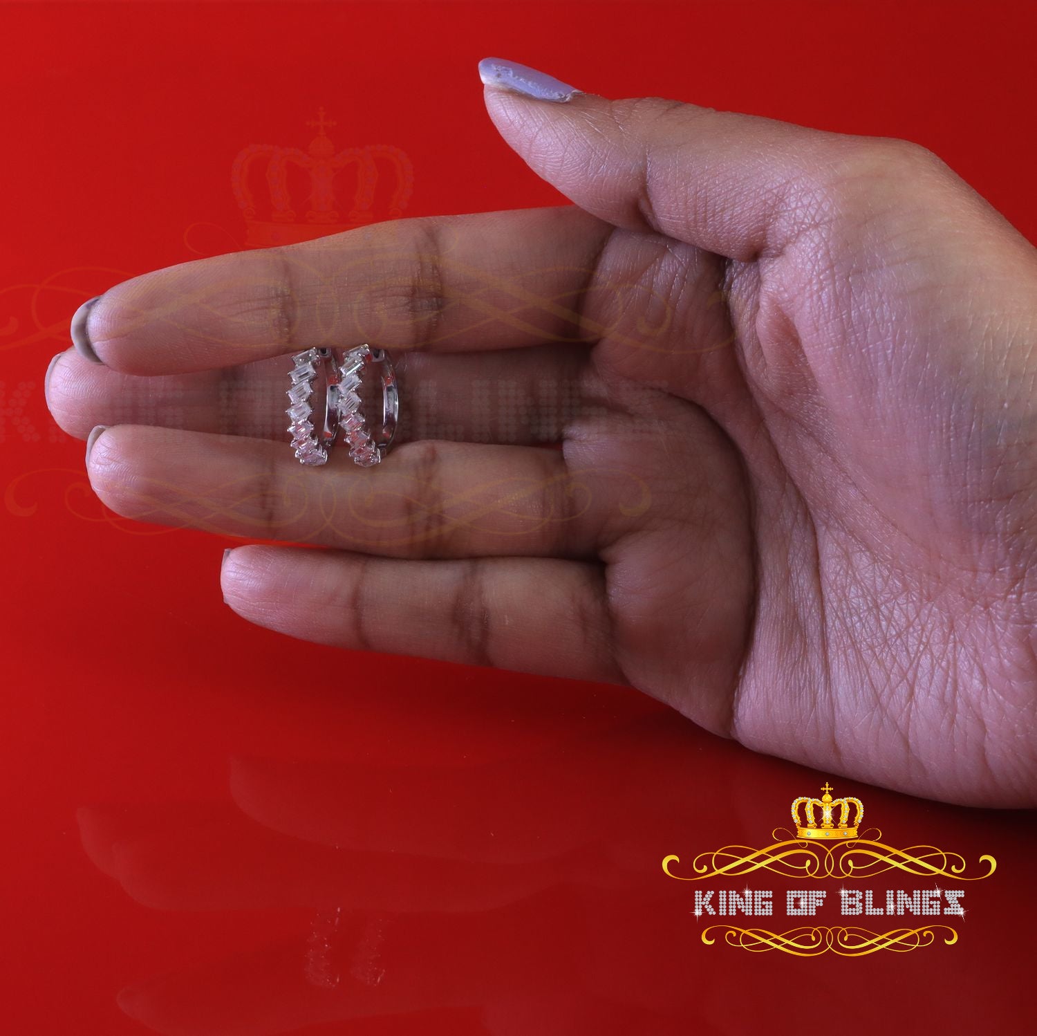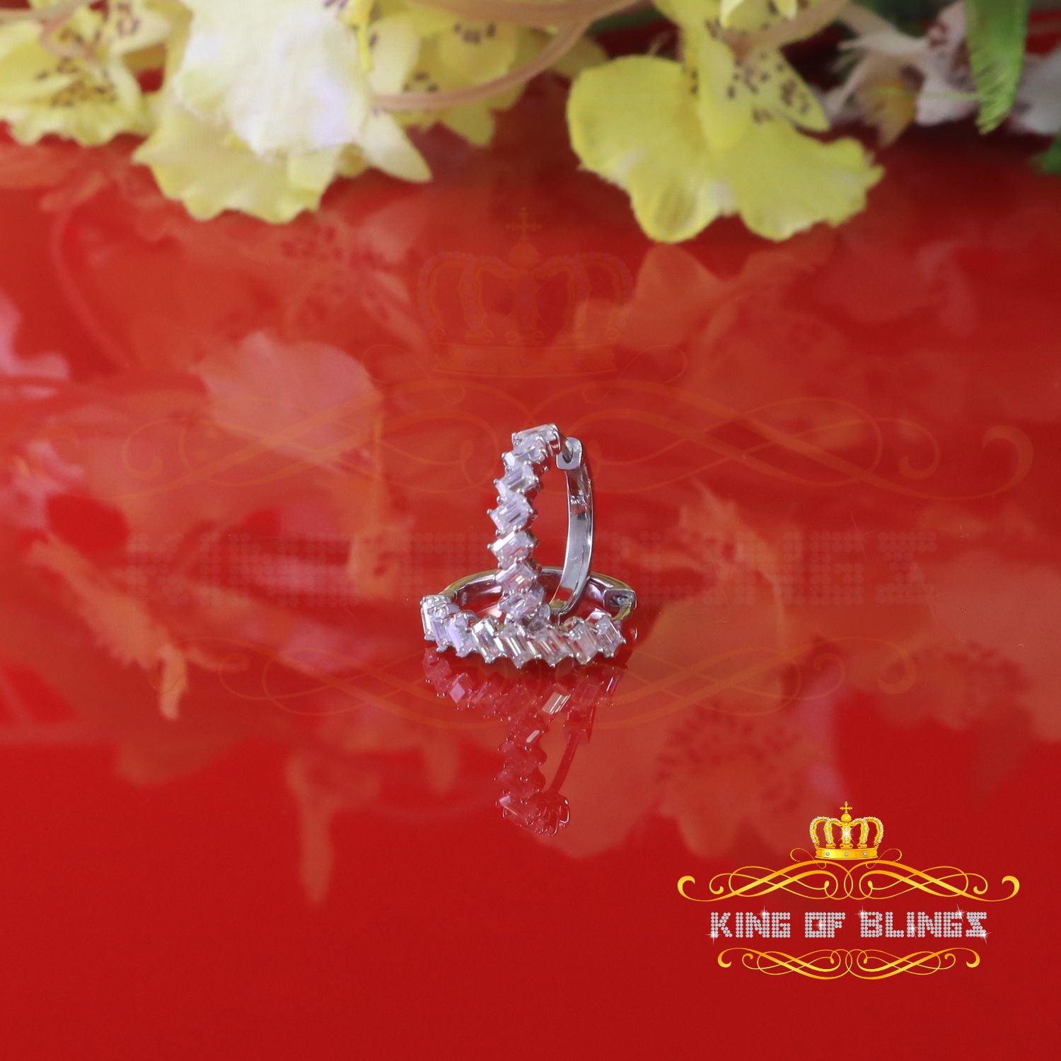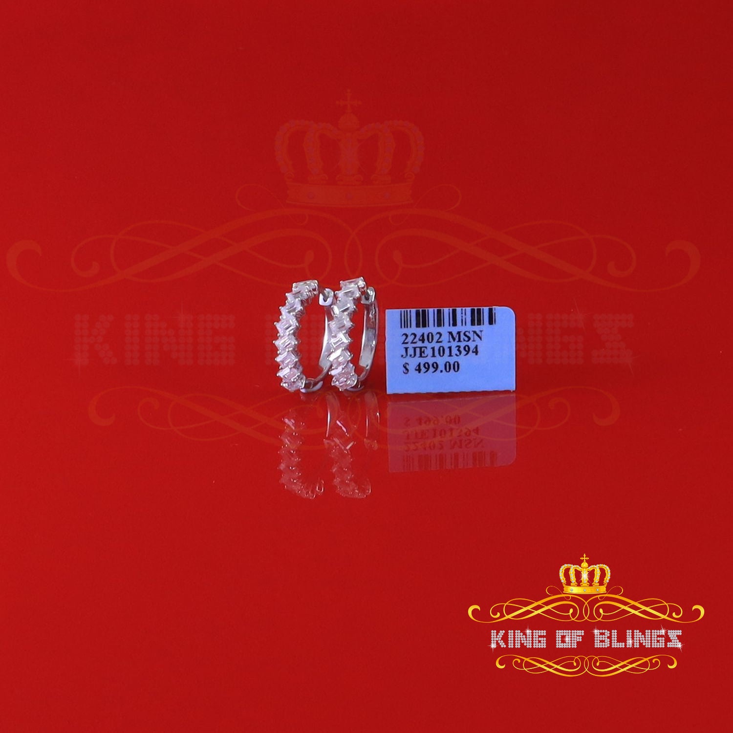 King of Bling's 1.48 ct Moissanite Baugutte White 925 Sterling Silver Women's Hoop Earrings