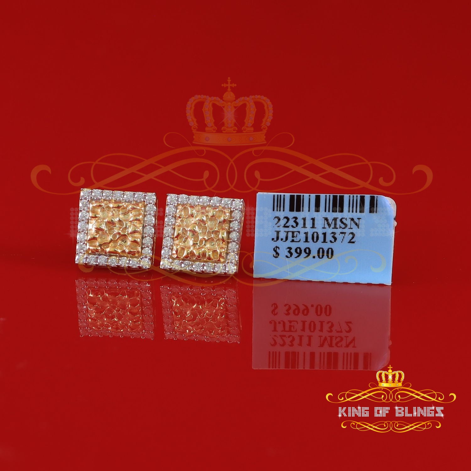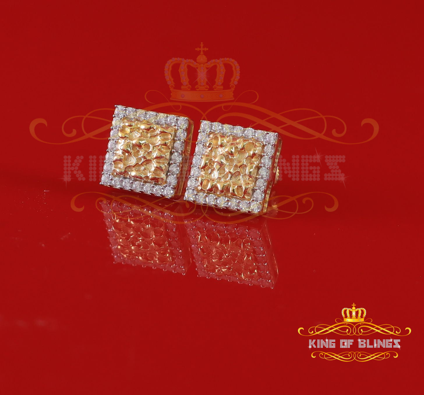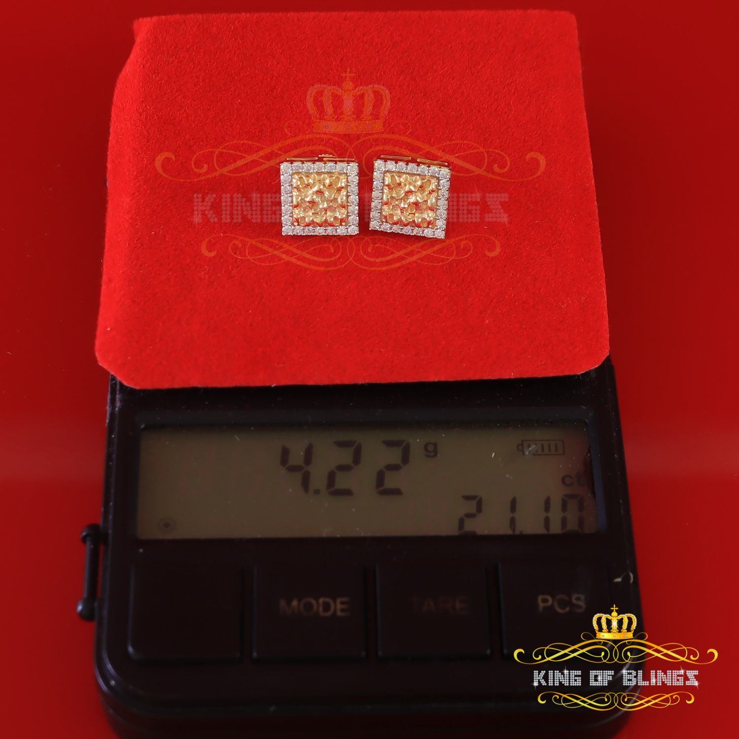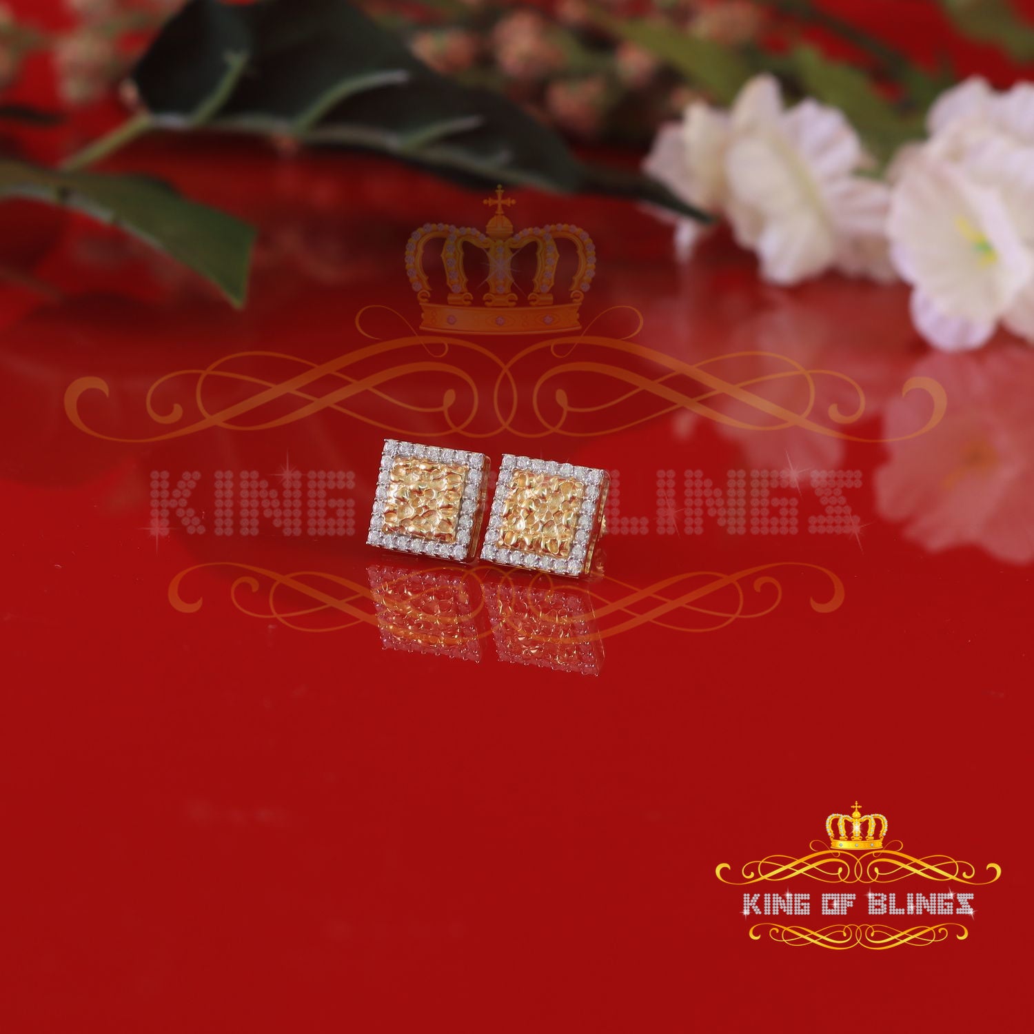 King of Bling's 1.50ct Moissanite Yellow 925 Sterling Silver Women's Square Shape Nugget Earring