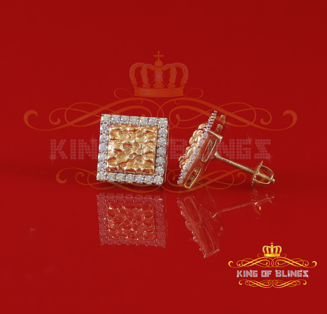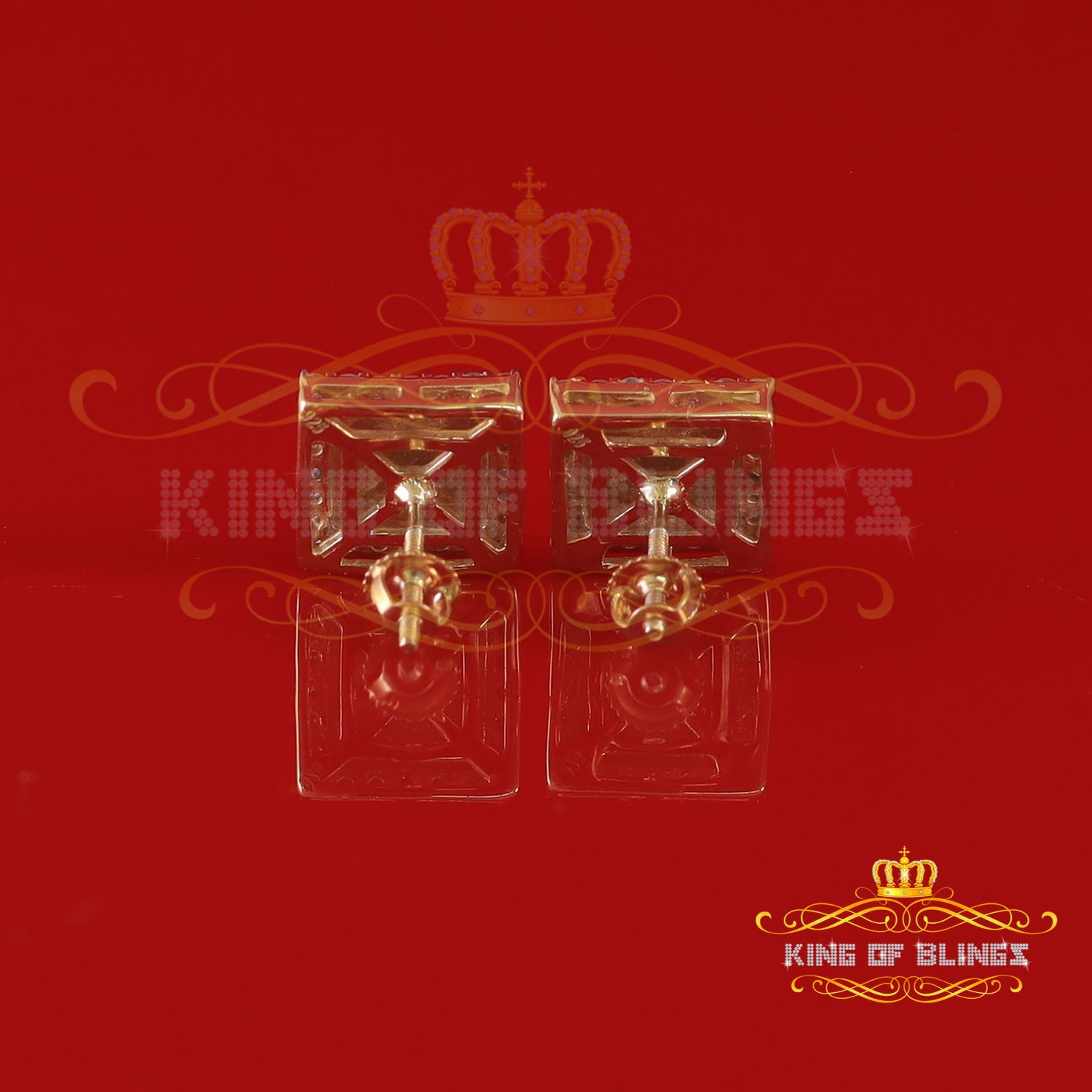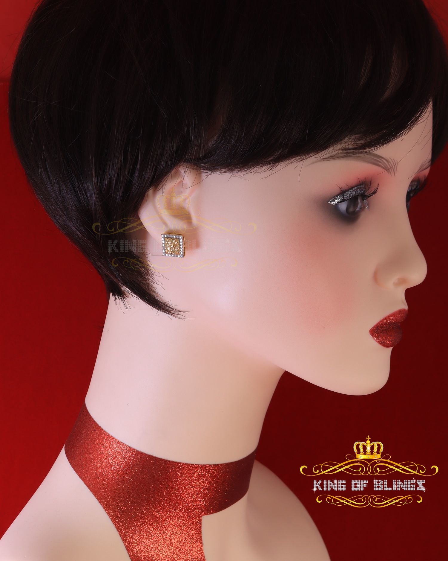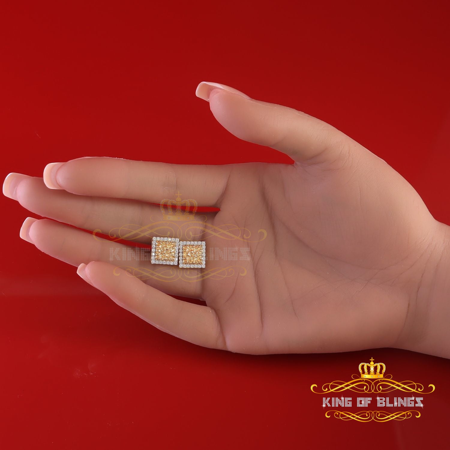 King of Bling's 1.50ct Moissanite Yellow 925 Sterling Silver Women's Square Shape Nugget Earring