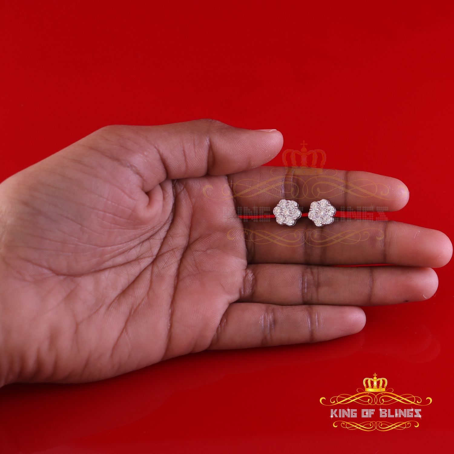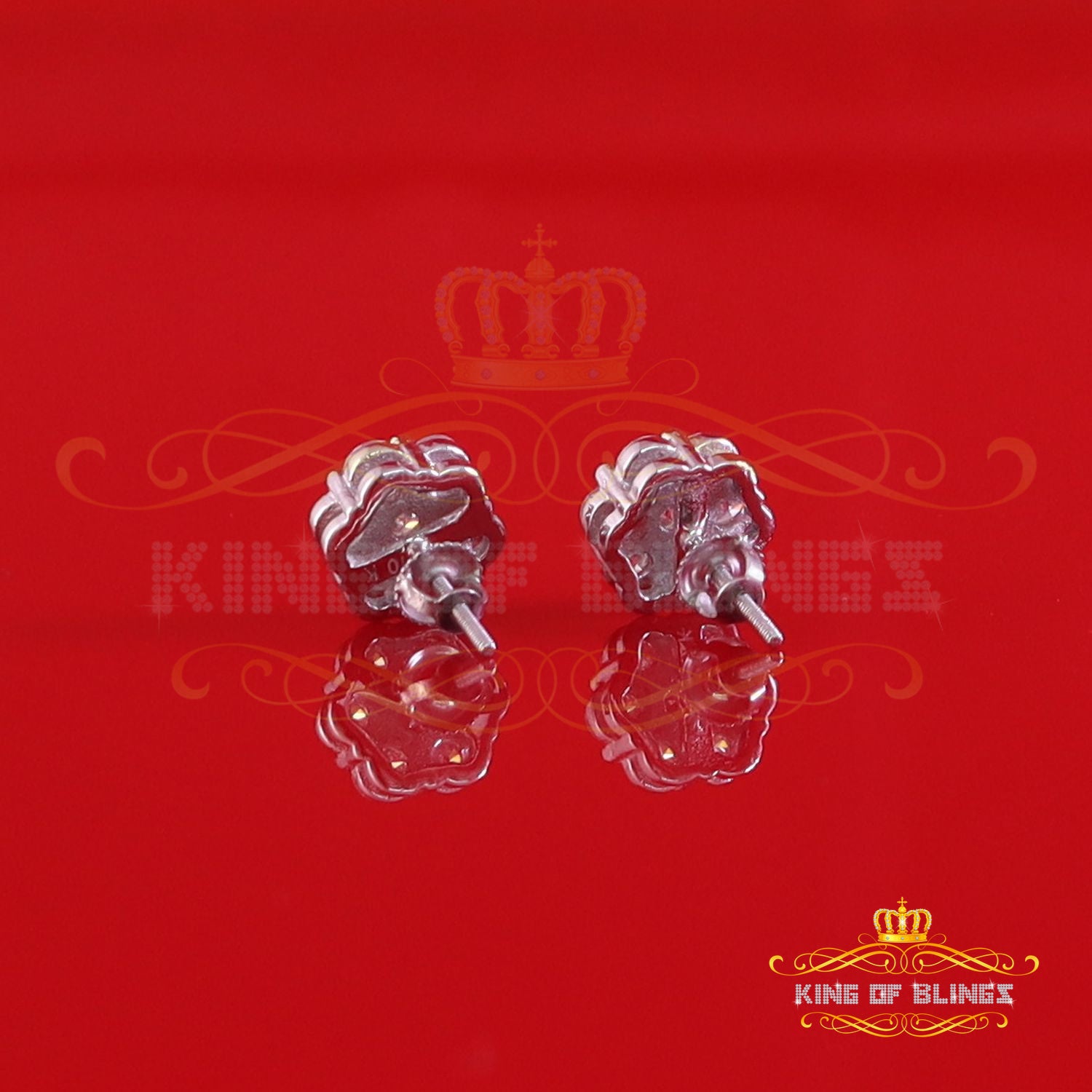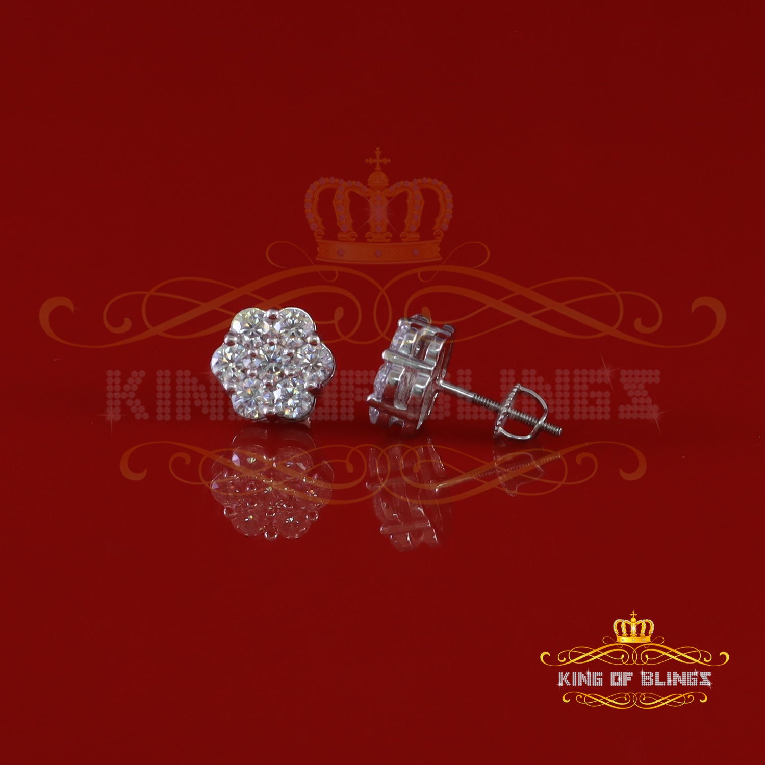 King Of Bling's 1.50ct Vvs 'D' Color Genuine Moissanite Stud FLORAL Earrings 10k Real White Gold
