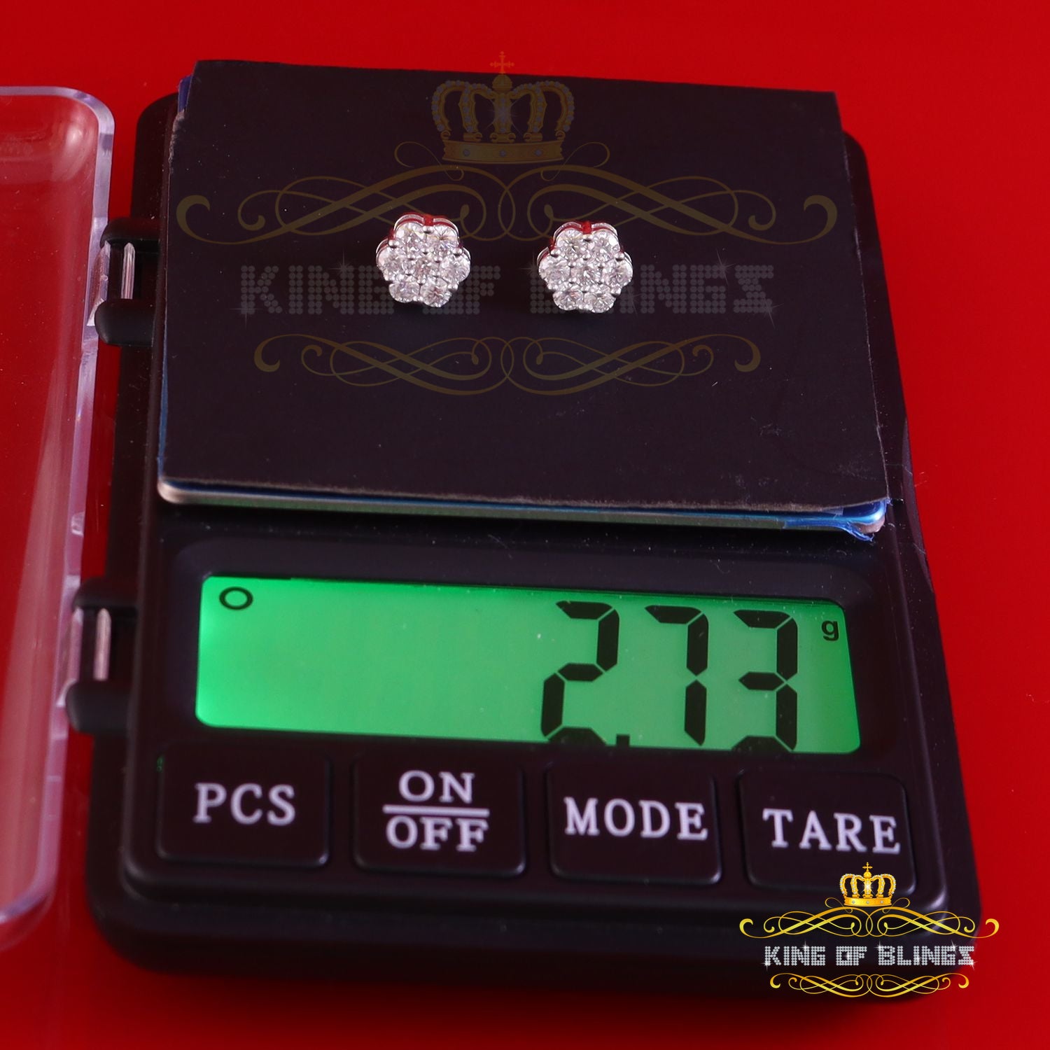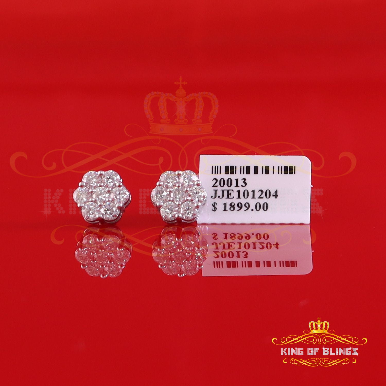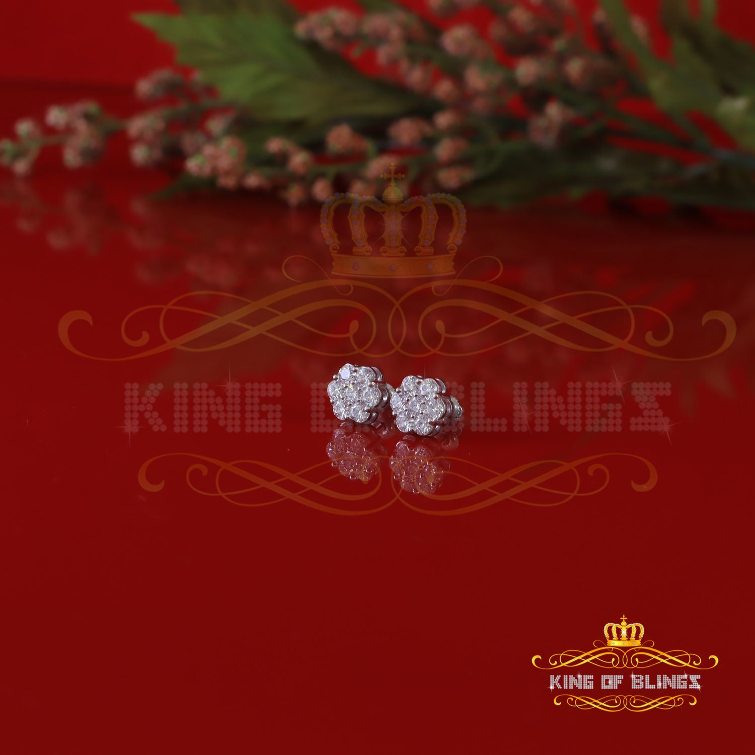 King Of Bling's 1.50ct Vvs 'D' Color Genuine Moissanite Stud FLORAL Earrings 10k Real White Gold