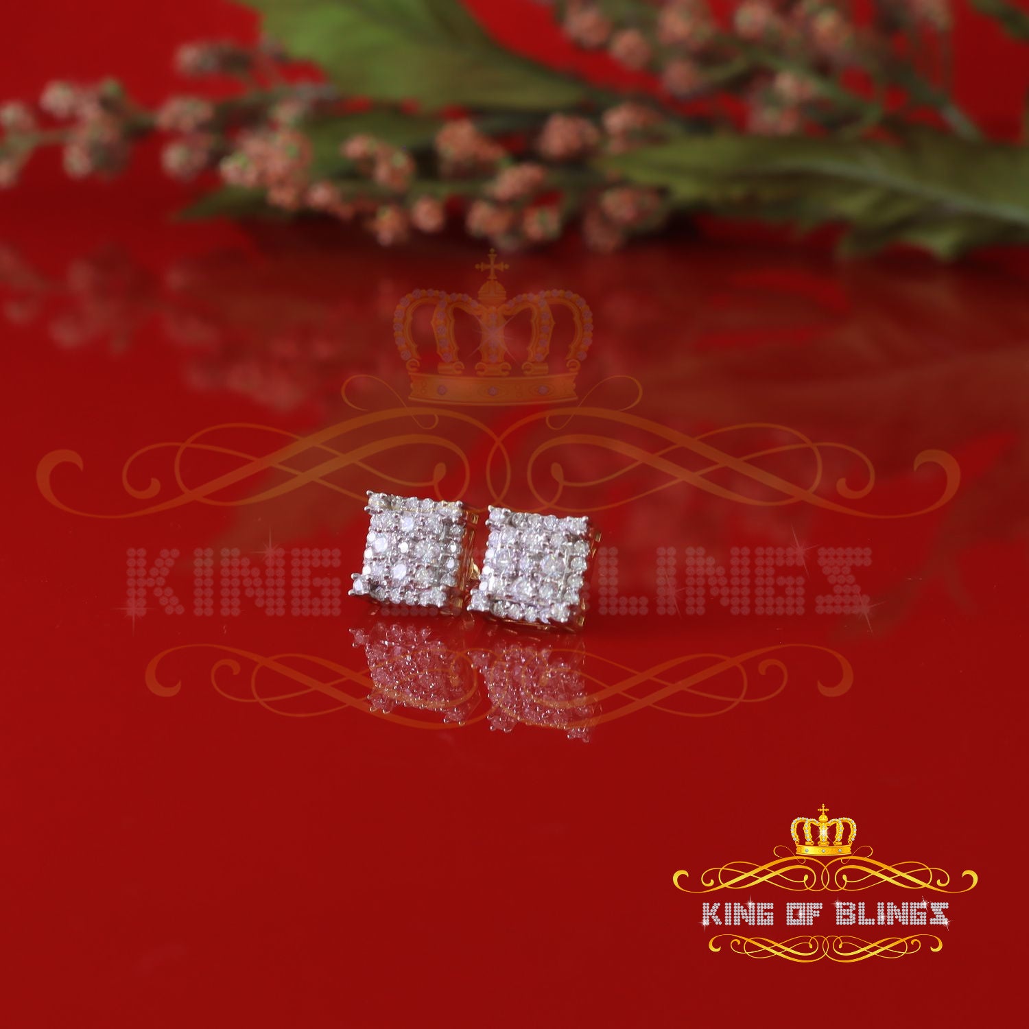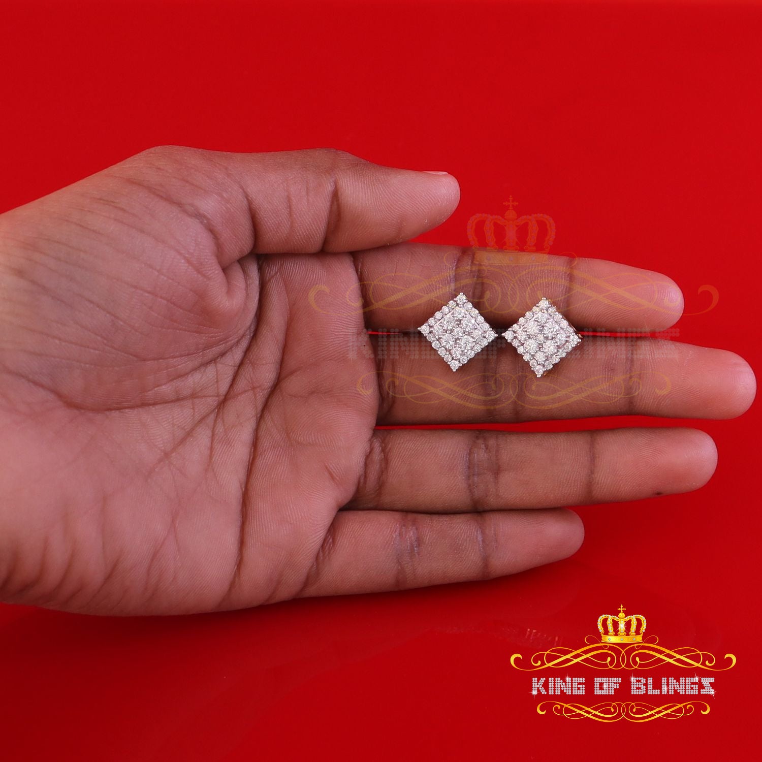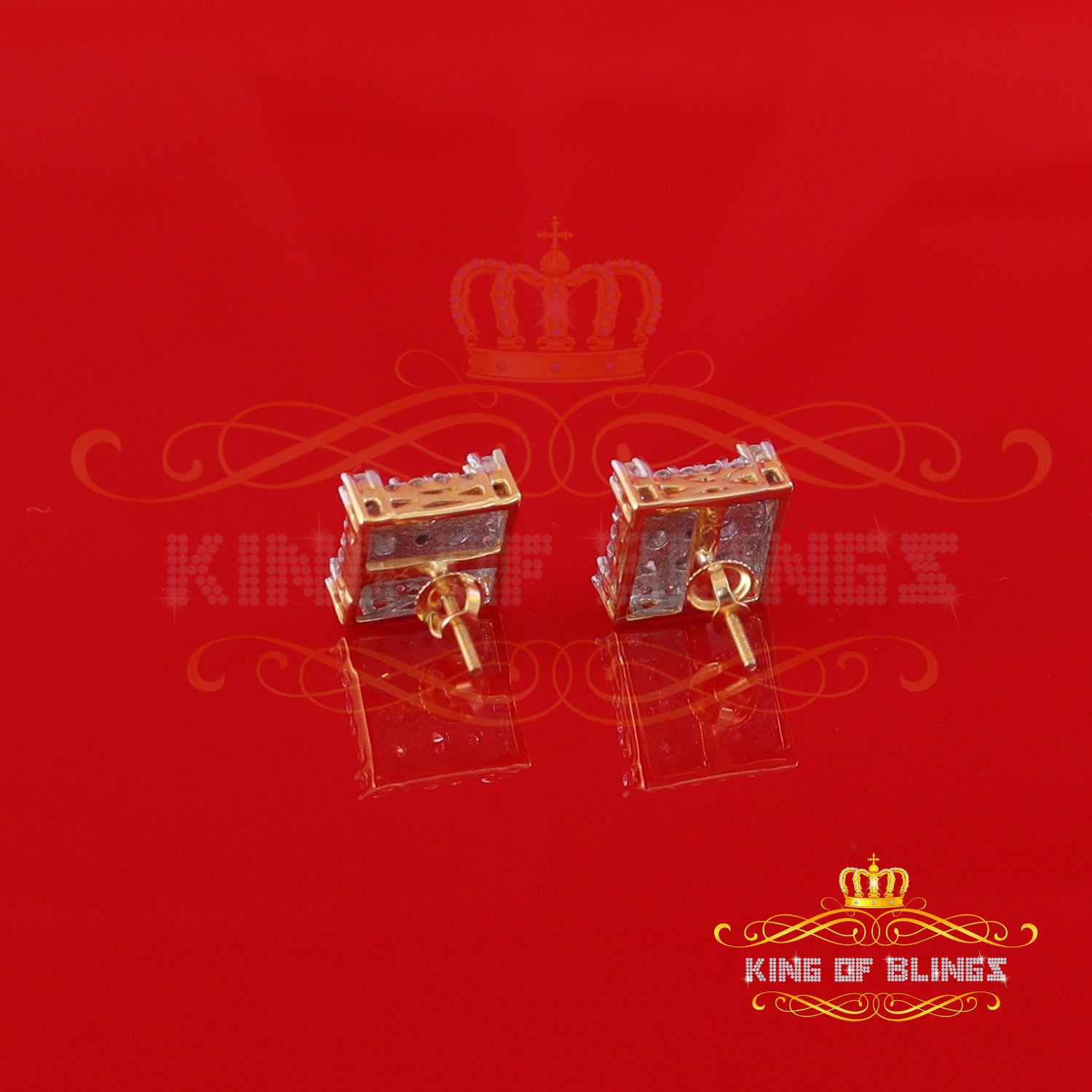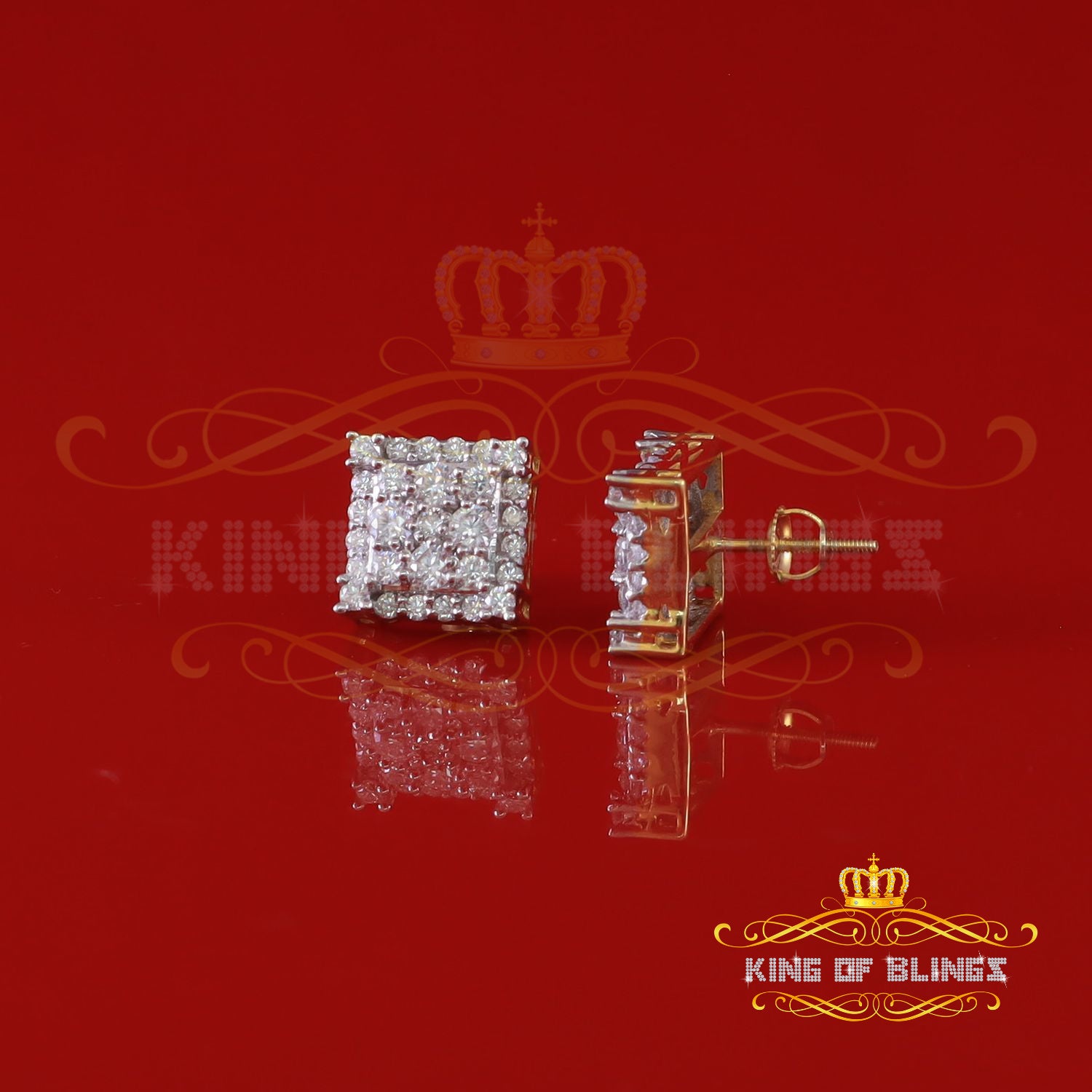 King Of Bling's 1.75ct Vvs 'D' Color Genuine Moissanite Stud SQUARE Earring10k Real Yellow Gold