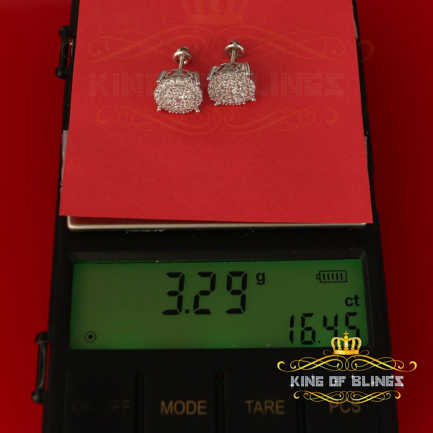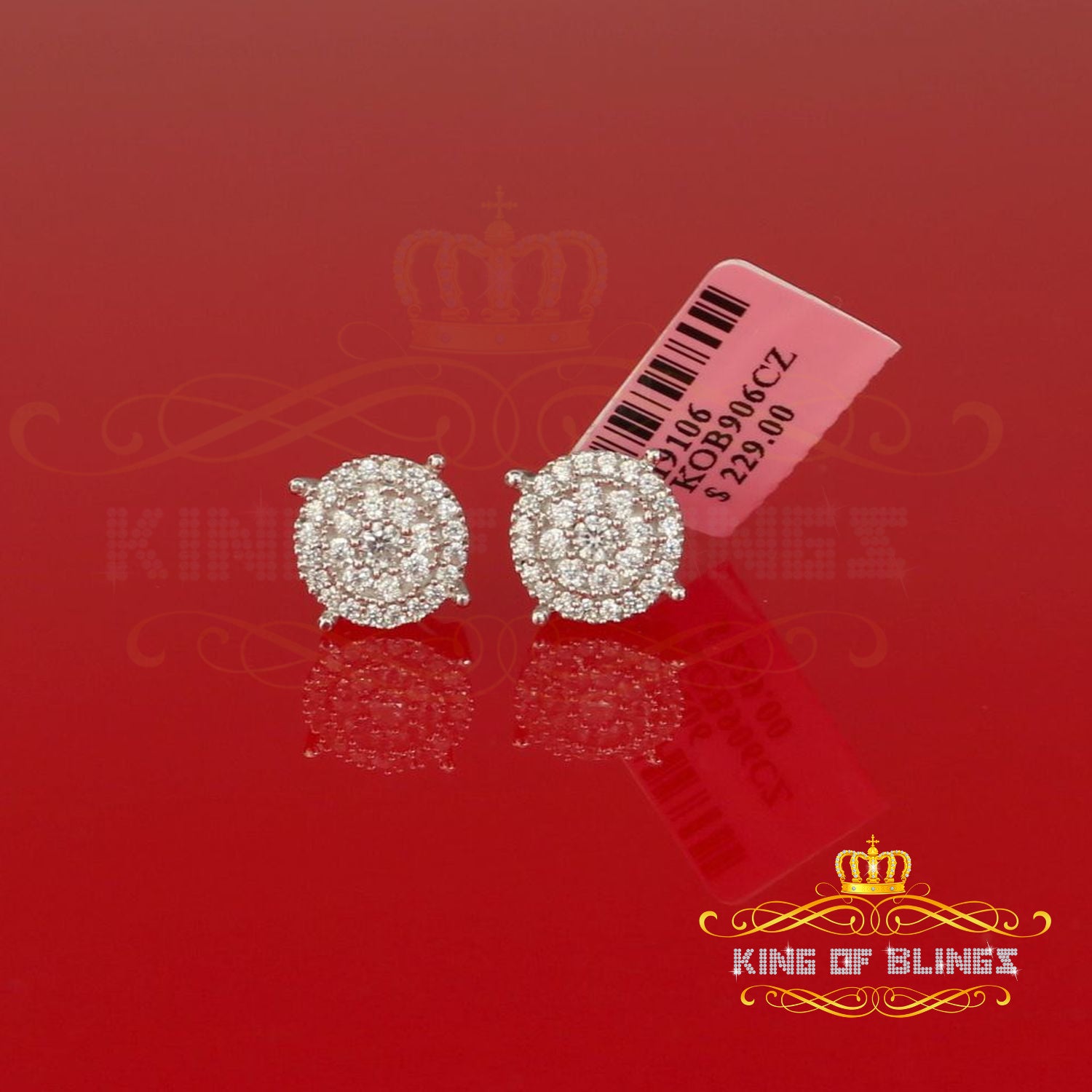 King of Bling's 1.96ct Cubic Zirconia Aretes Para Hombre 925 White Silver Women's Round Earring