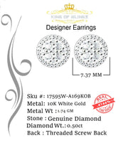 King Of Bling's 10K Real White Gold W/ Real Diamond 0.50 CT Round Men's & Women's Stud Earrings
