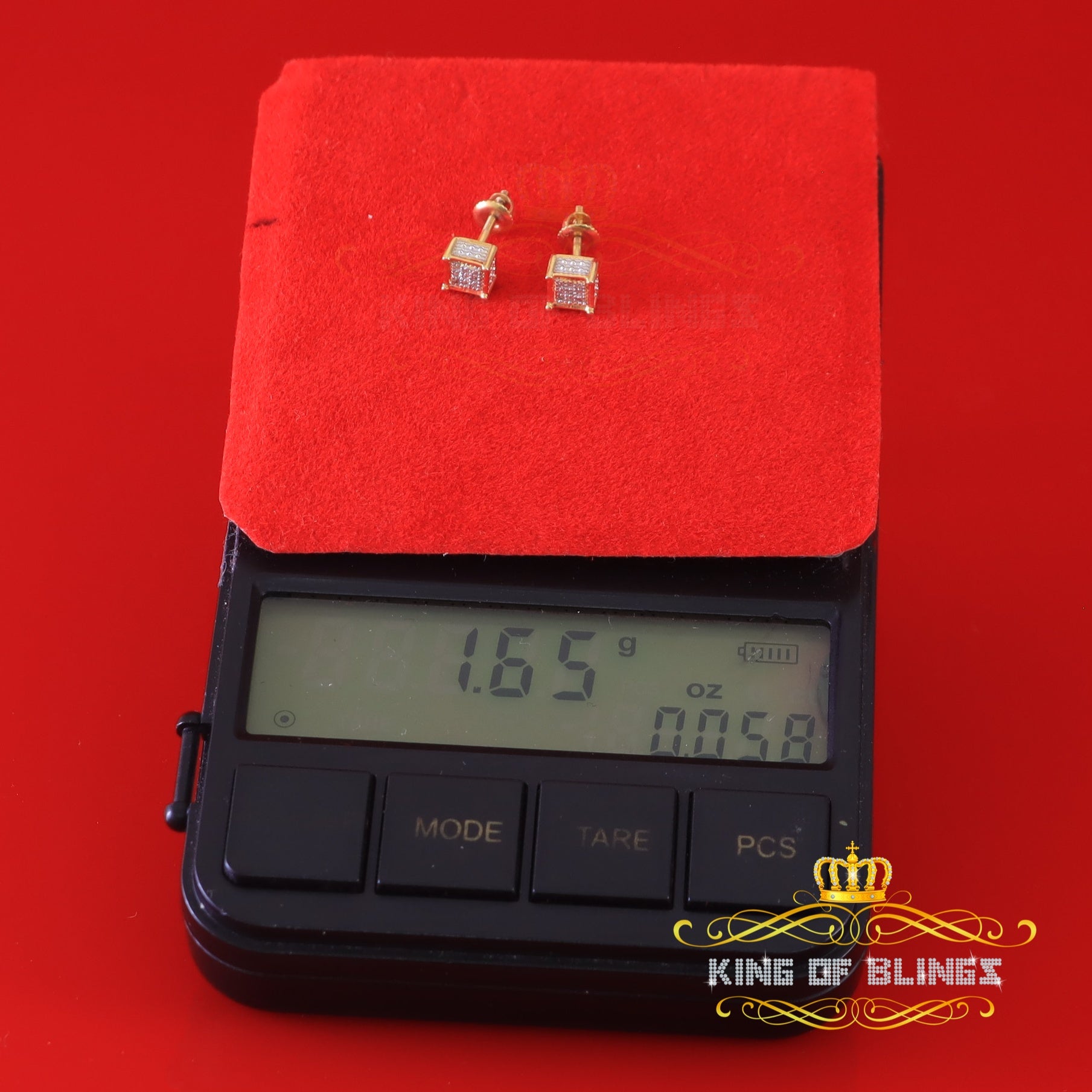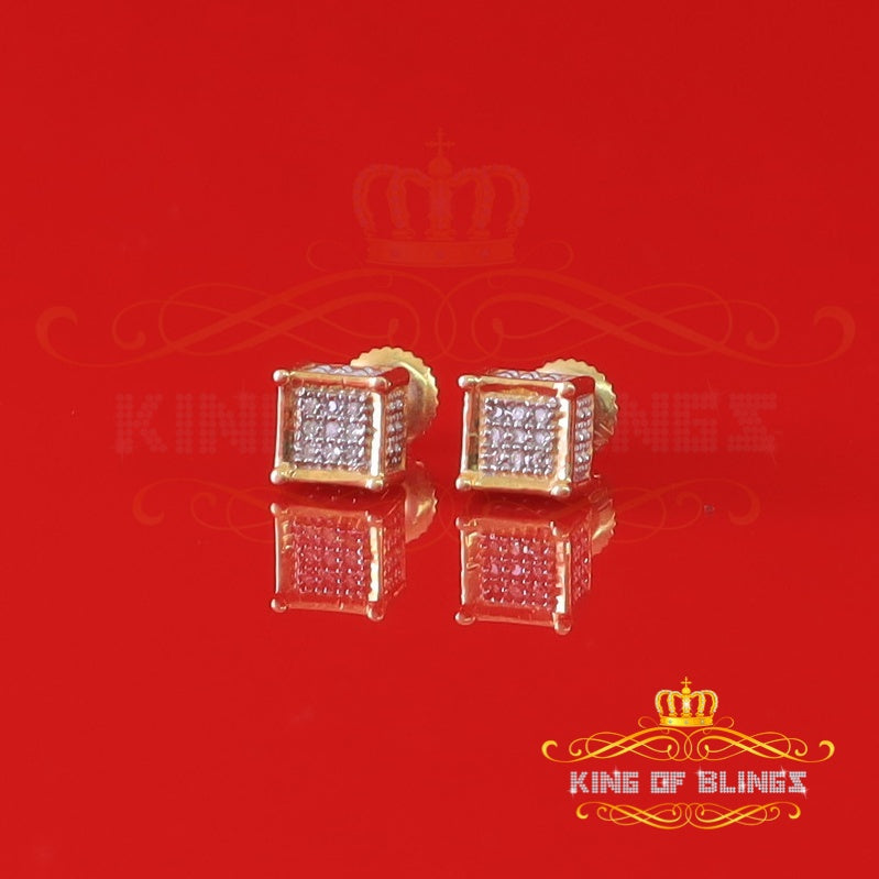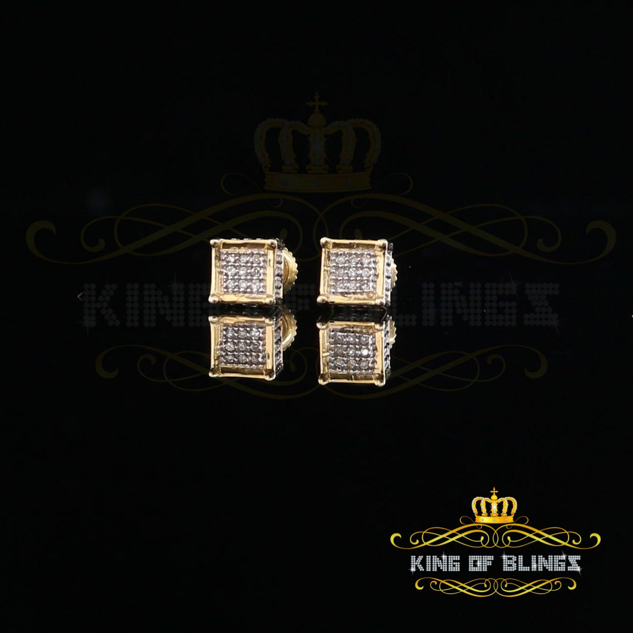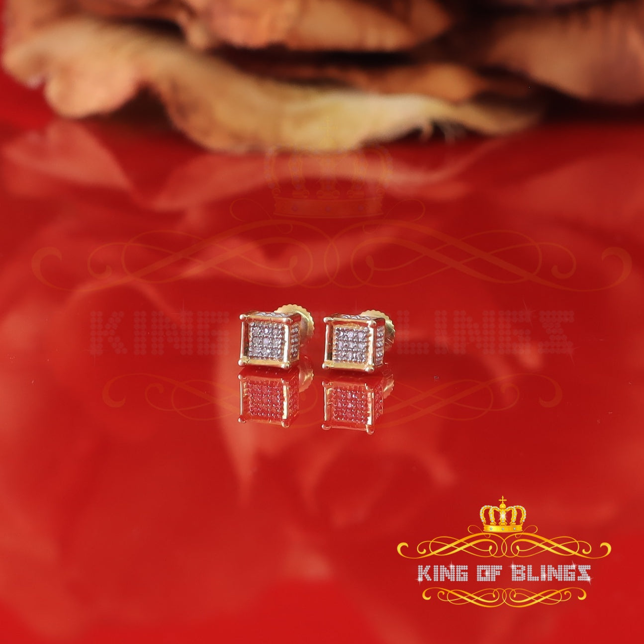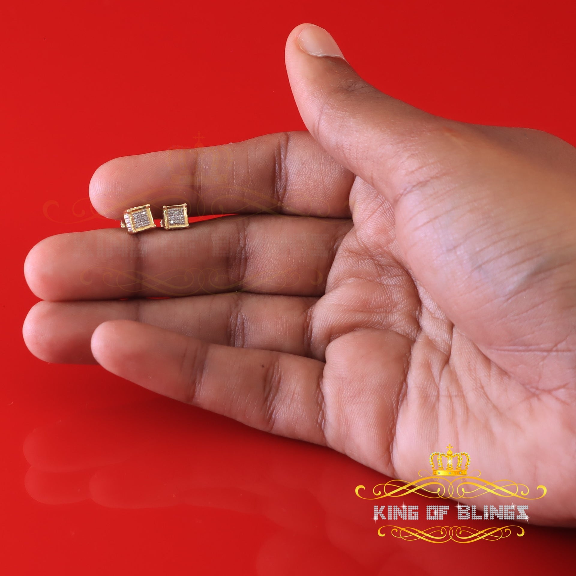 King Of Bling's 10K Real Yellow Gold Real Diamond 0.05ct Men's/Women's Square Stud Micro Earring