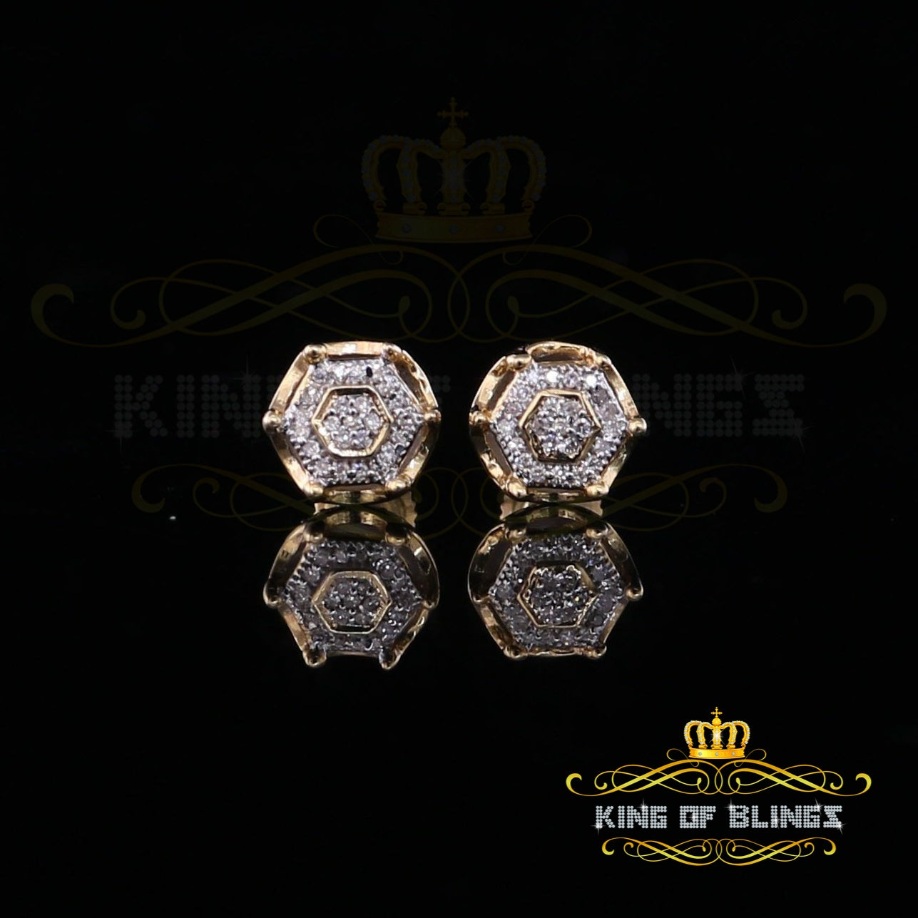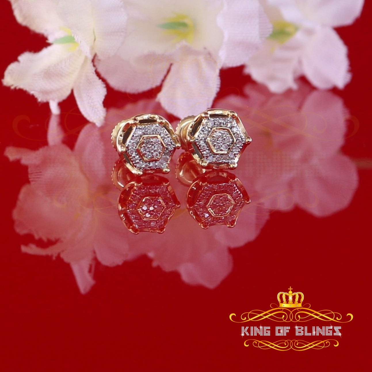 The Hexagon Shape Stud earrings feature a classic stud Earring comes with threaded screw backs, ensuring a secure and comfortable fit. Crafted from Real 10k Yellow Gold , these Men's earrings boast a lustrous Yellow metal color , enhancing the overall elegance.The main attraction lies in the real diamonds that adorn these earrings, bringing a sense of luxury and brilliance to the wearer. While specific details such as the diamond weight 0.1 and 1.88 gm