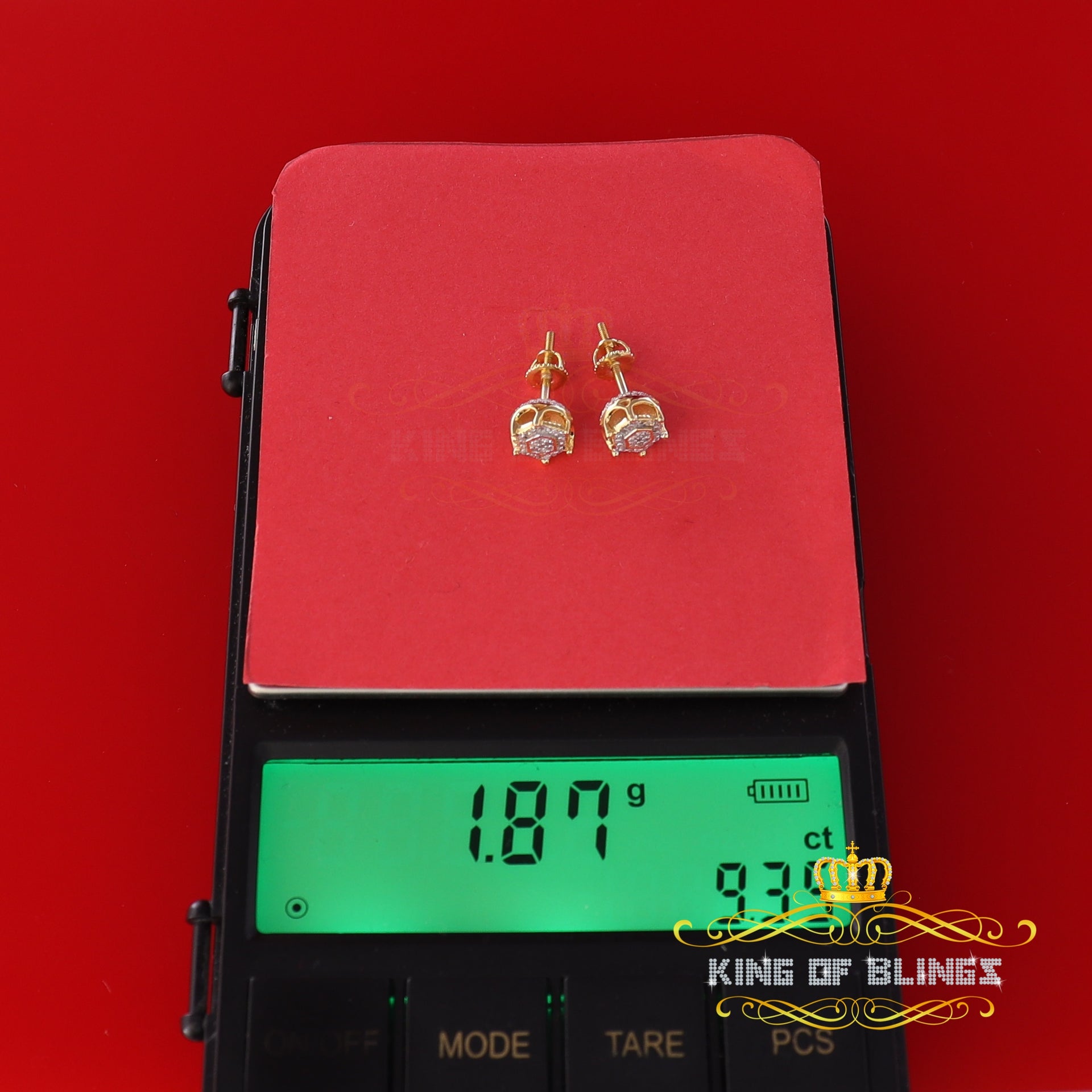 King Of Bling's 10K Real Yellow Gold with 0.10 CT Real Diamond Men's/Women's Stud Round Earrings