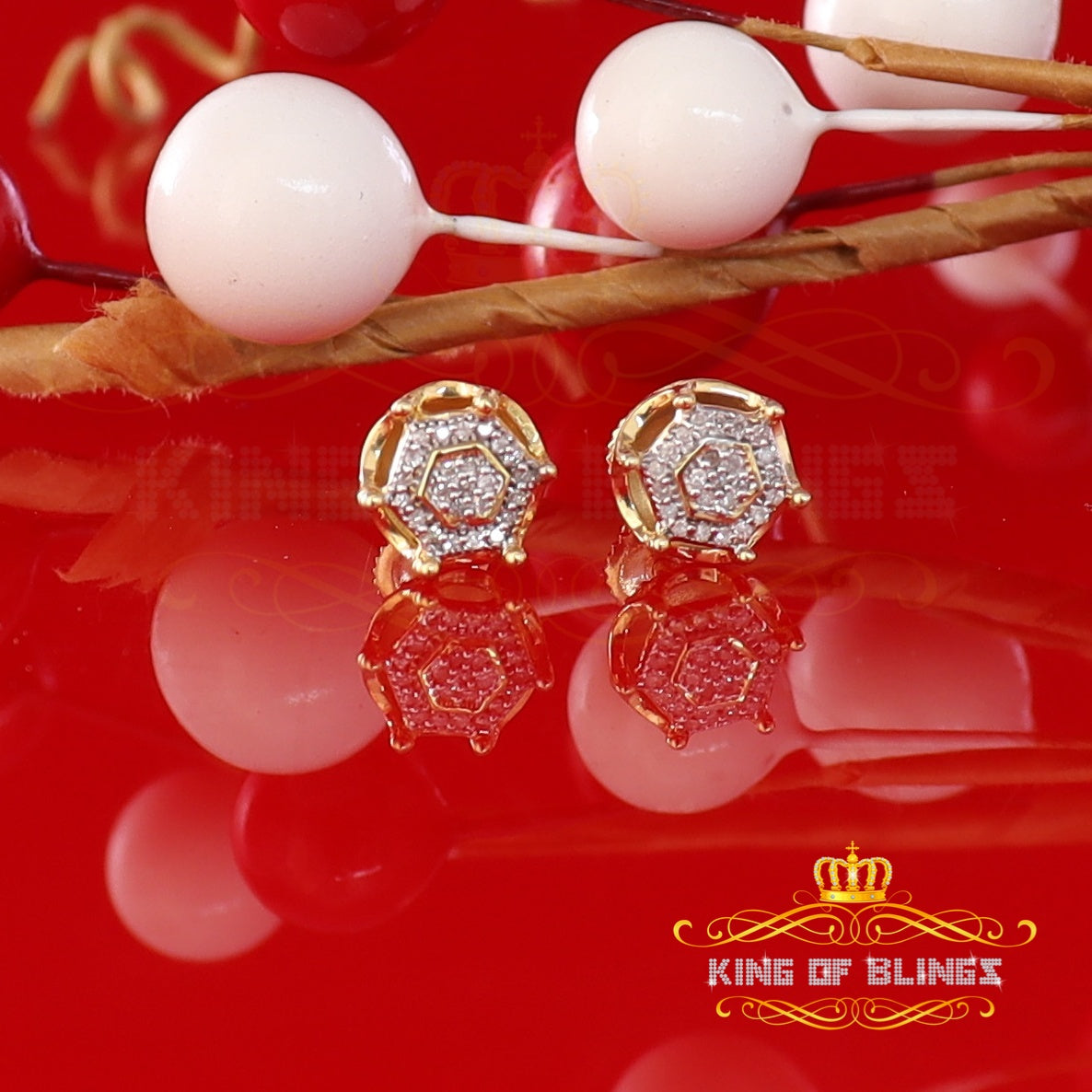 The Hexagon Shape Stud earrings feature a classic stud Earring comes with threaded screw backs, ensuring a secure and comfortable fit. Crafted from Real 10k Yellow Gold , these Men's earrings boast a lustrous Yellow metal color , enhancing the overall elegance.The main attraction lies in the real diamonds that adorn these earrings, bringing a sense of luxury and brilliance to the wearer. While specific details such as the diamond weight 0.1 and 1.87 gm