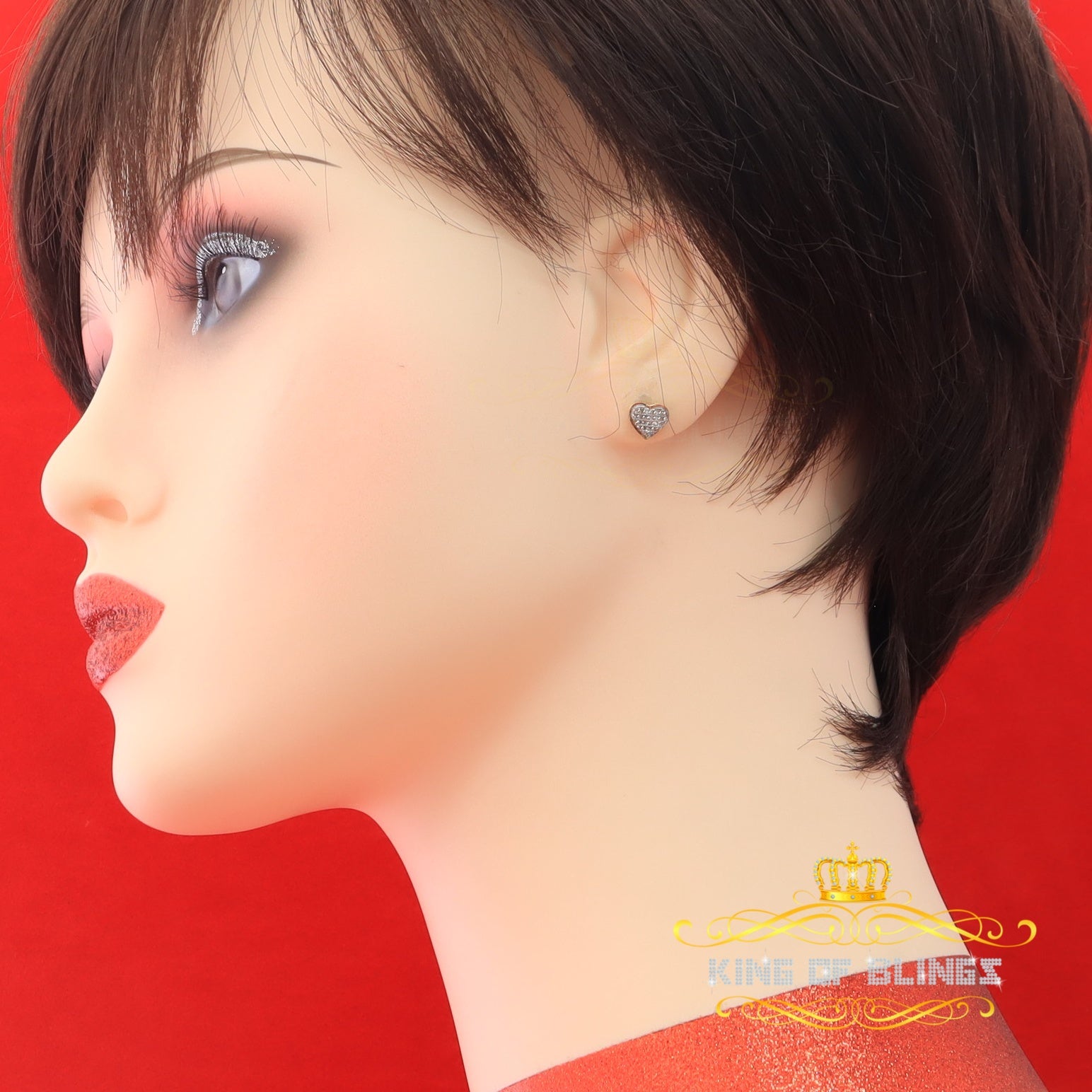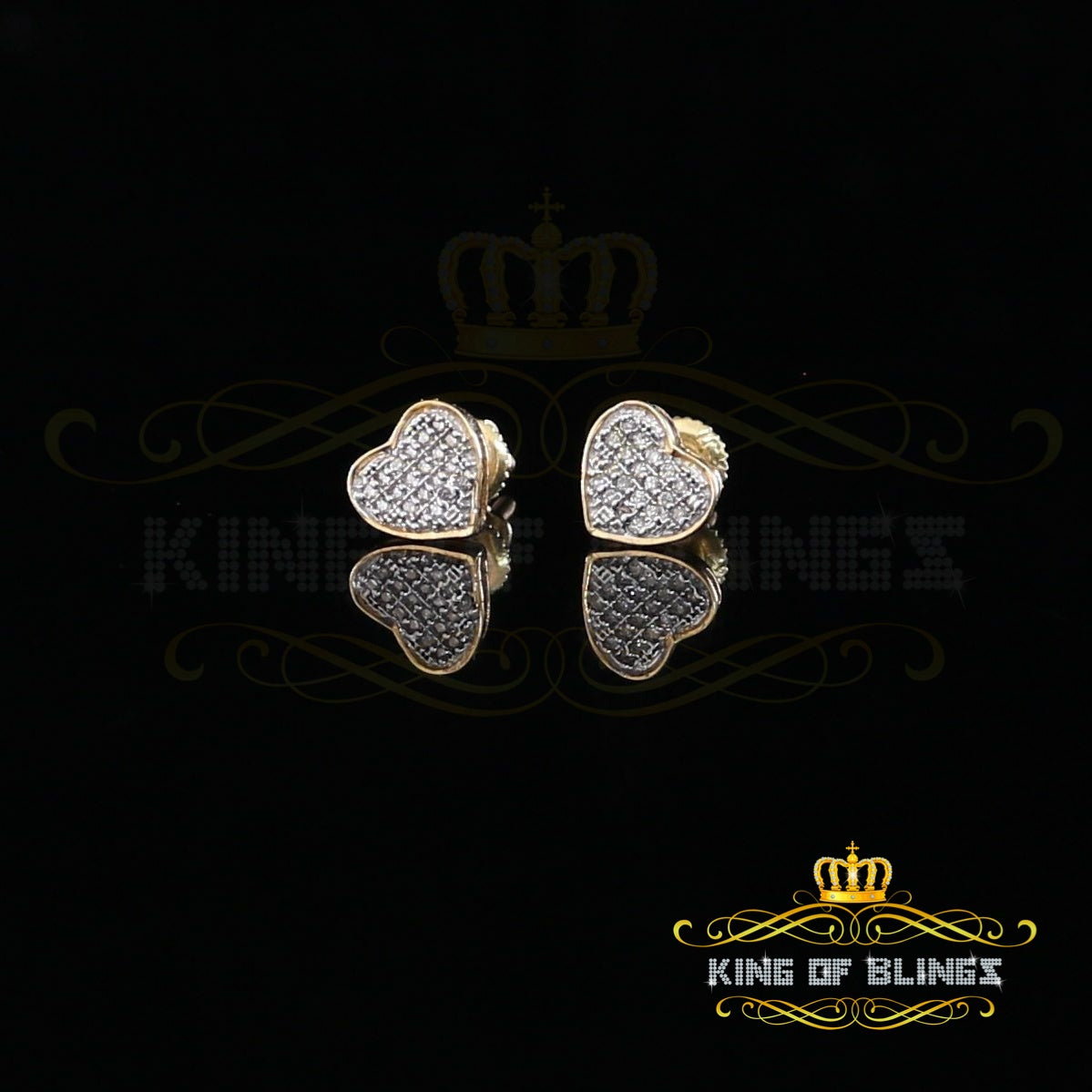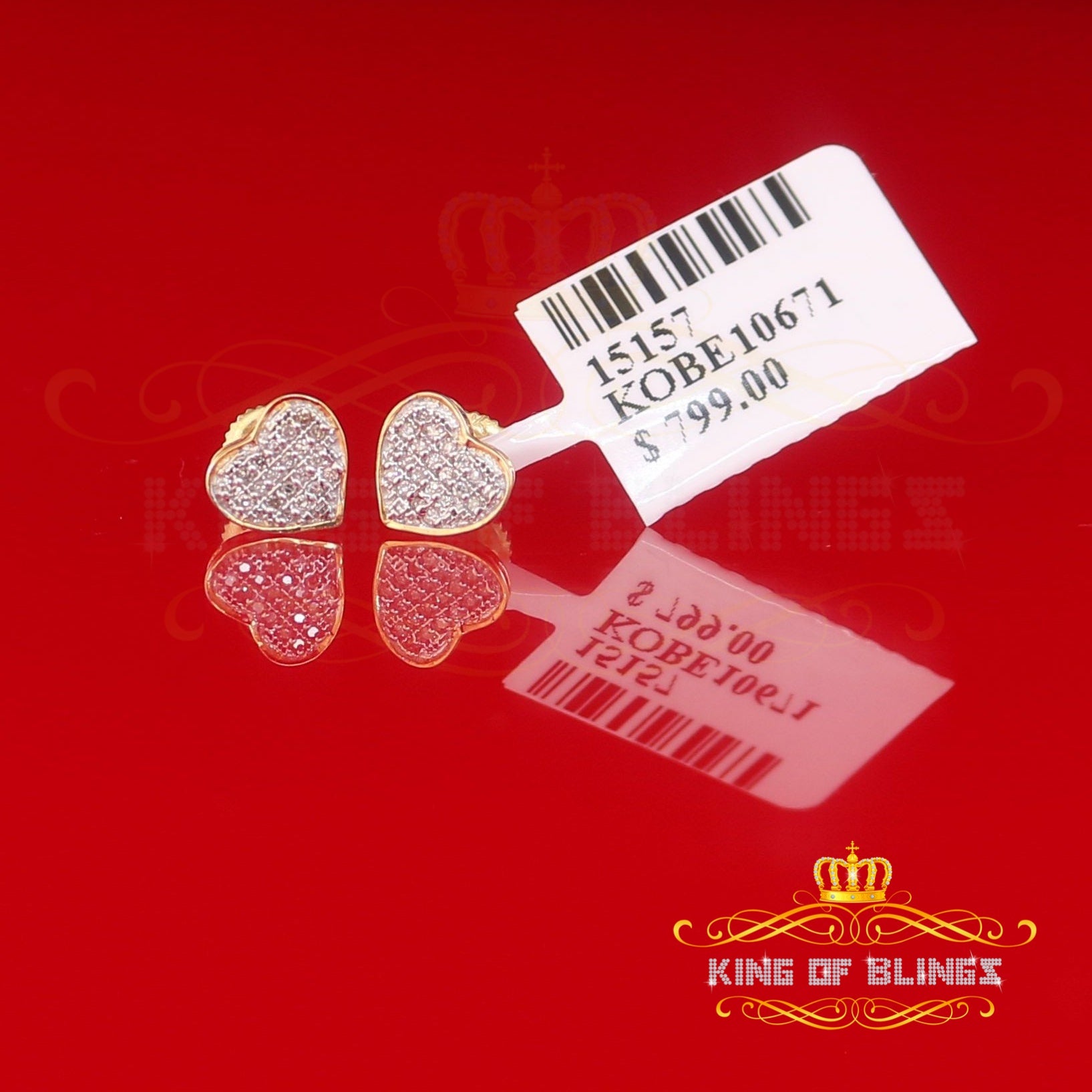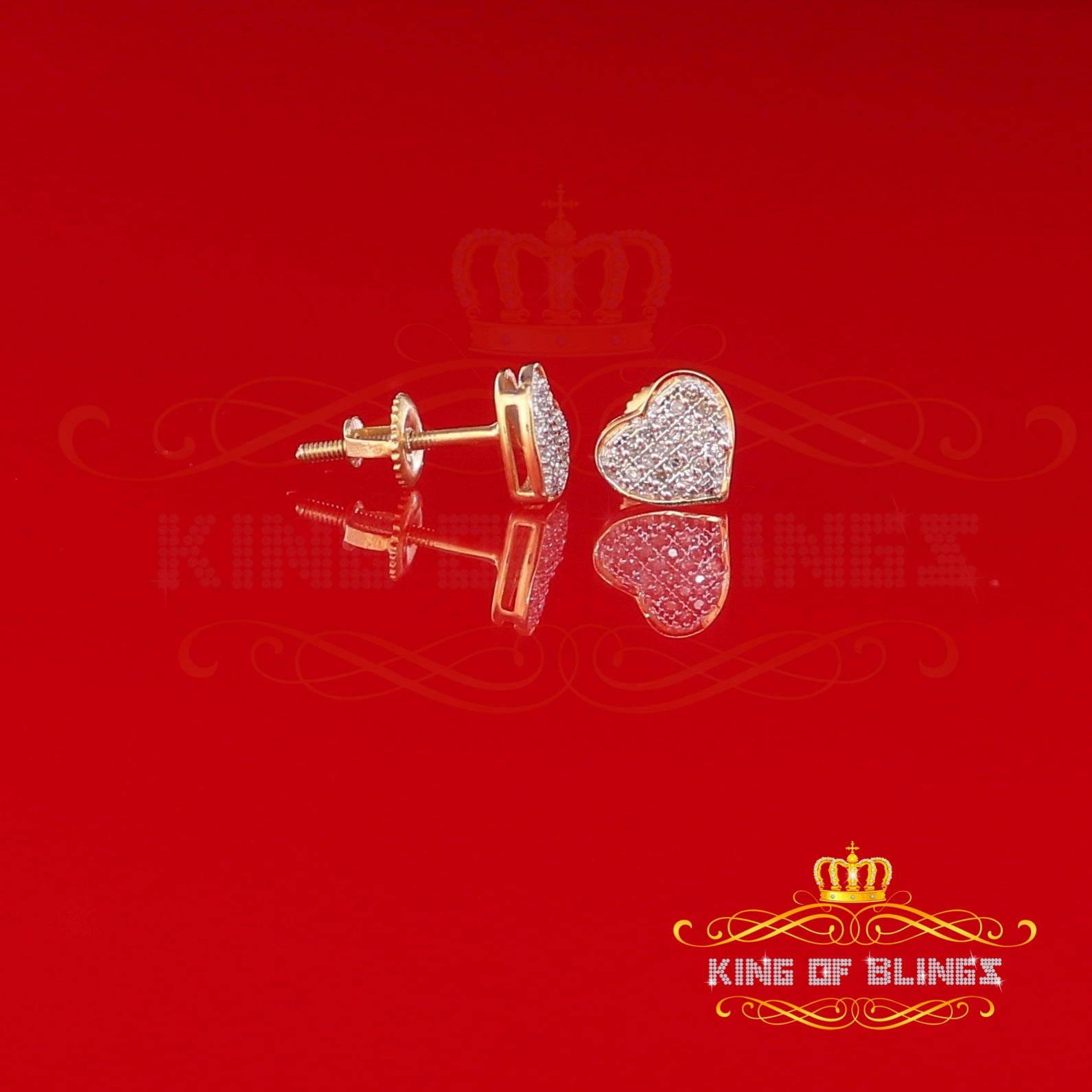 King Of Bling's 10K Real Yellow Gold with 0.10CT Real Diamonds Men's/Women's stud Heart Earrings