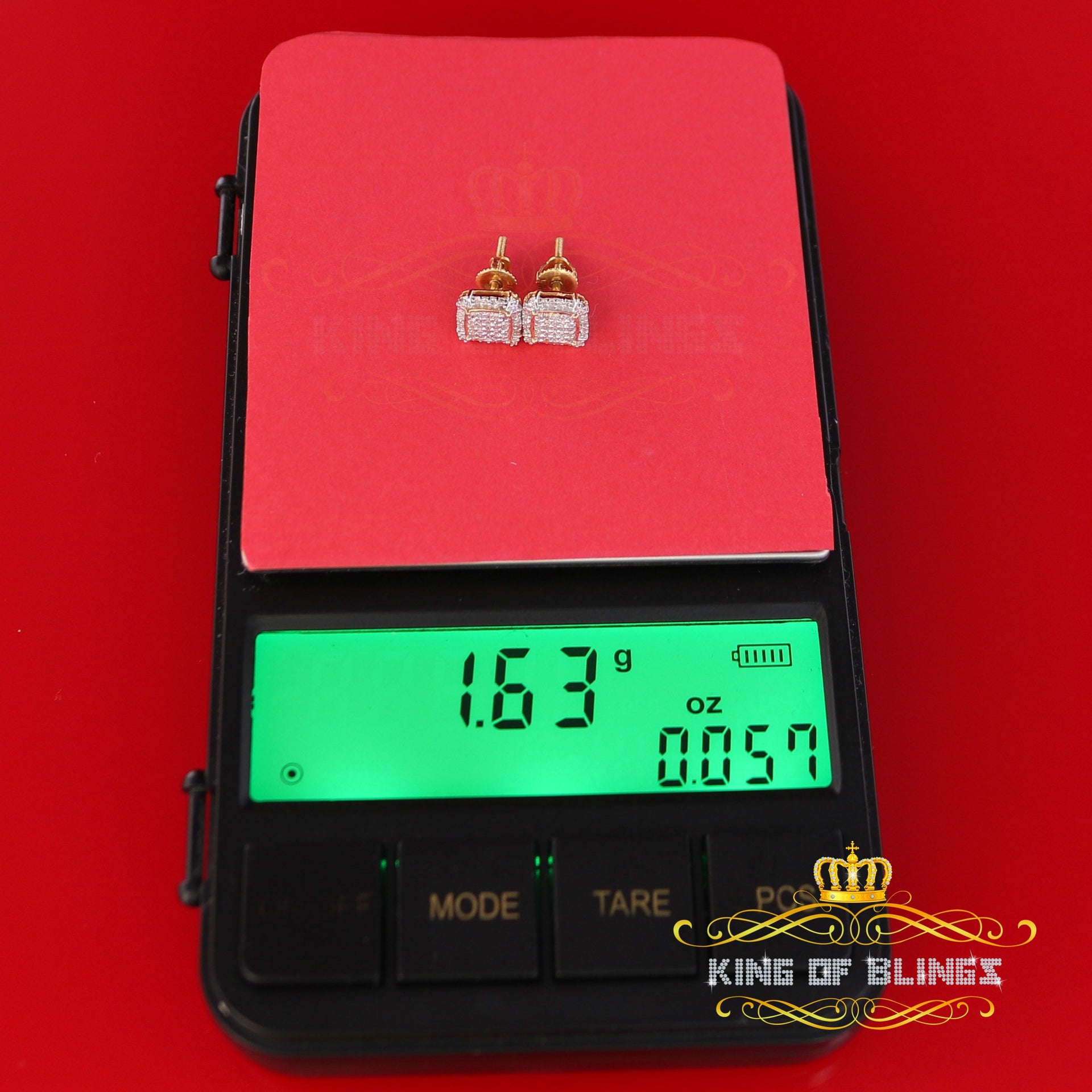 Presented as new with tags in the original packaging, these 10K Gold Diamond earrings are ready to add a touch of sophistication to any outfit, making them a perfect choice for those seeking a combination of style and quality appealing to both men and women with their captivating sparkle. rest assured that the King Of Blings brand guarantees exceptional craftsmanship and materials. these womens stud earrings make a perfect gift or a stylish addition to your own jewelry collection,