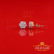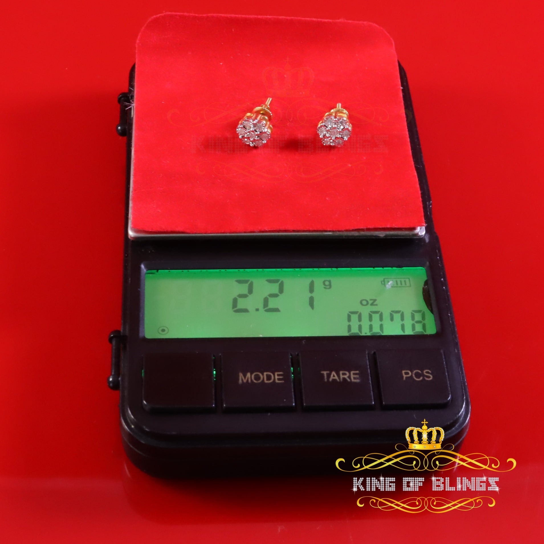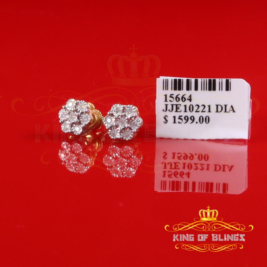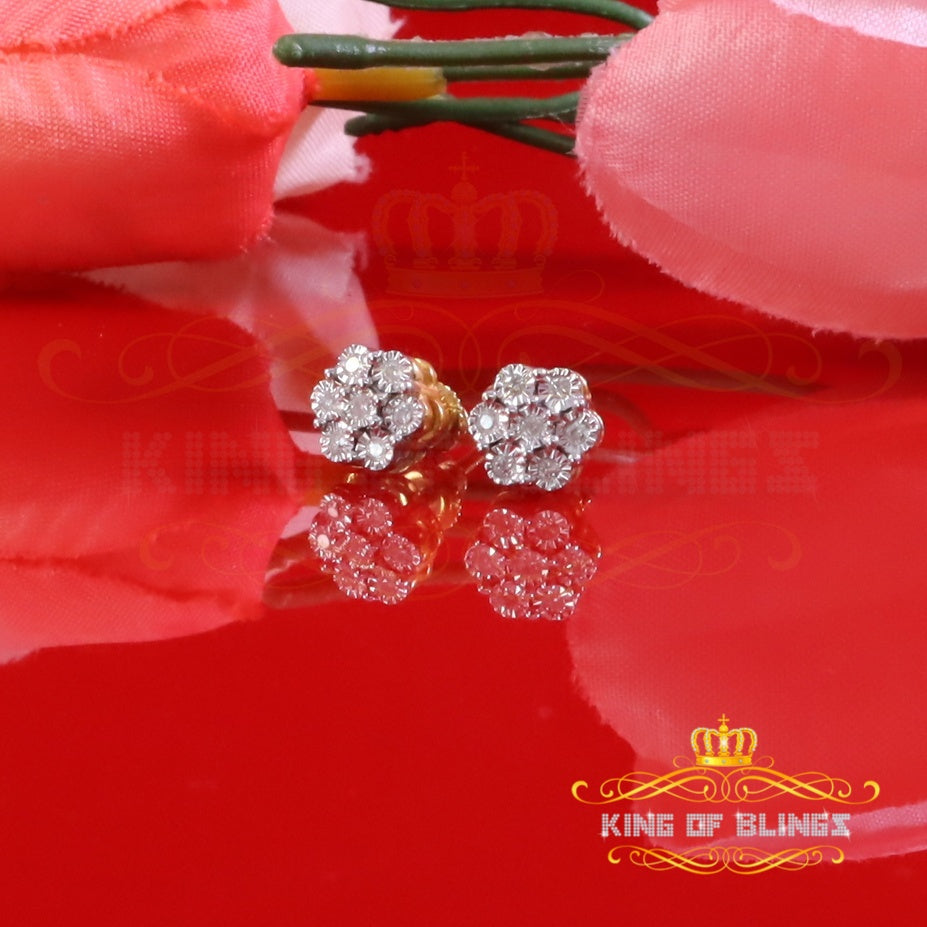 King Of Bling's 10K Real Yellow Gold with Real 0.10CT Diamond Floral Men's/Women's Stud Earrings