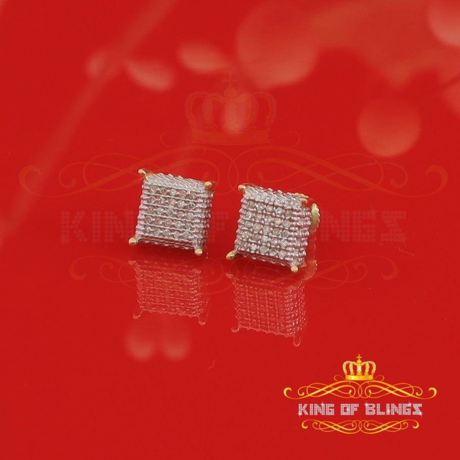 King Of Bling's 10K Real Yellow Gold with Real 0.15ct Diamonds Square Stud Earrings