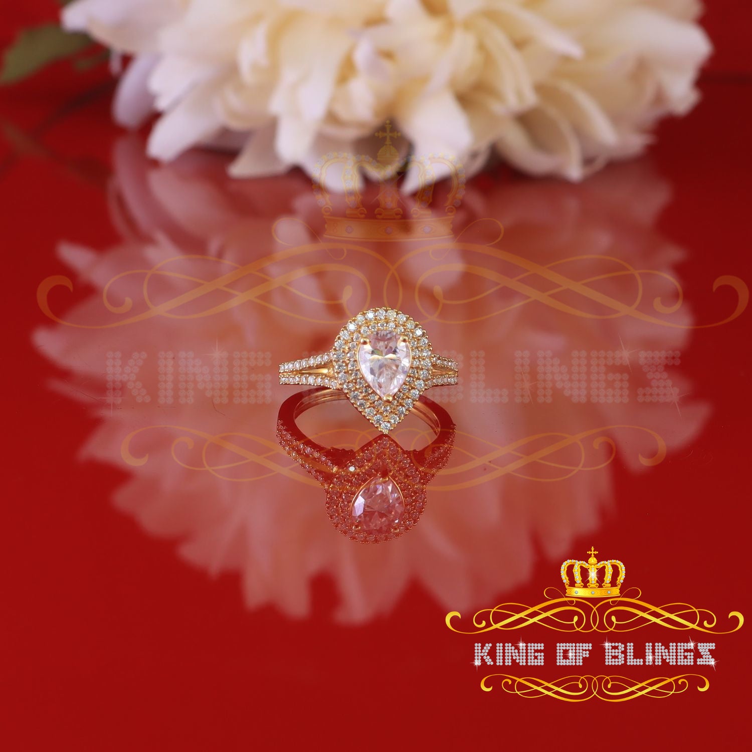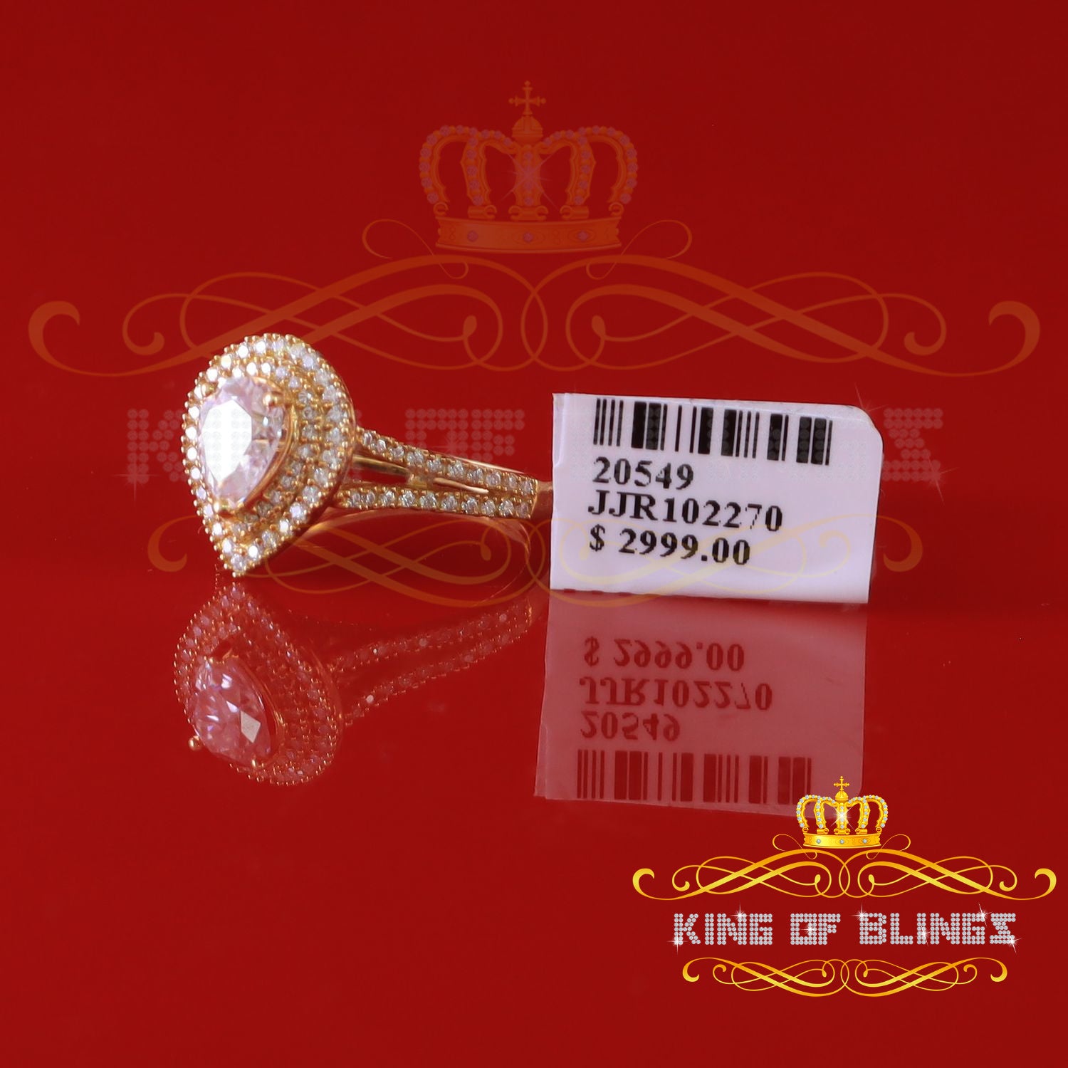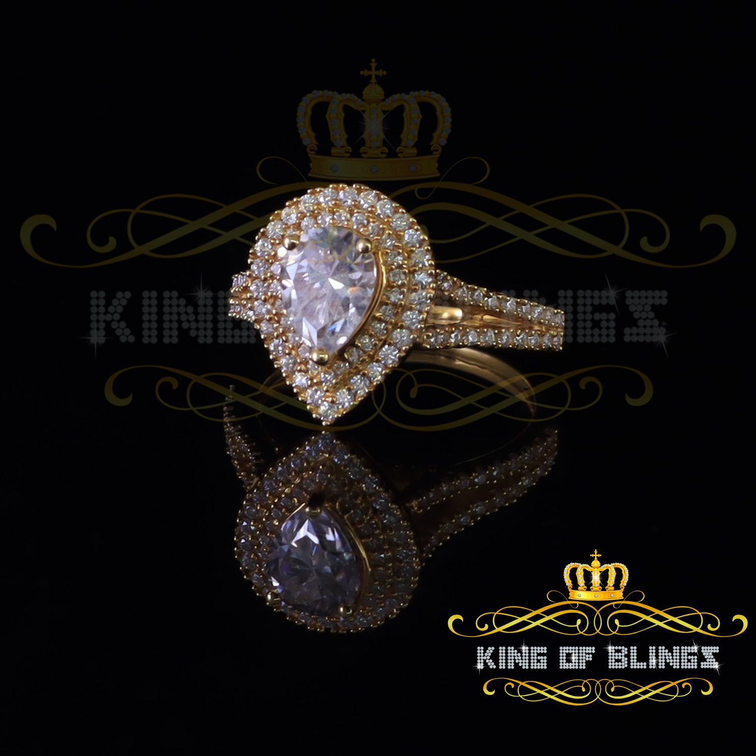 King Of Blings 10K Yellow Gold 2.00CT 'VVS' 'FL' D clr Pear Cut Moissonite Womens Ring Size 7
