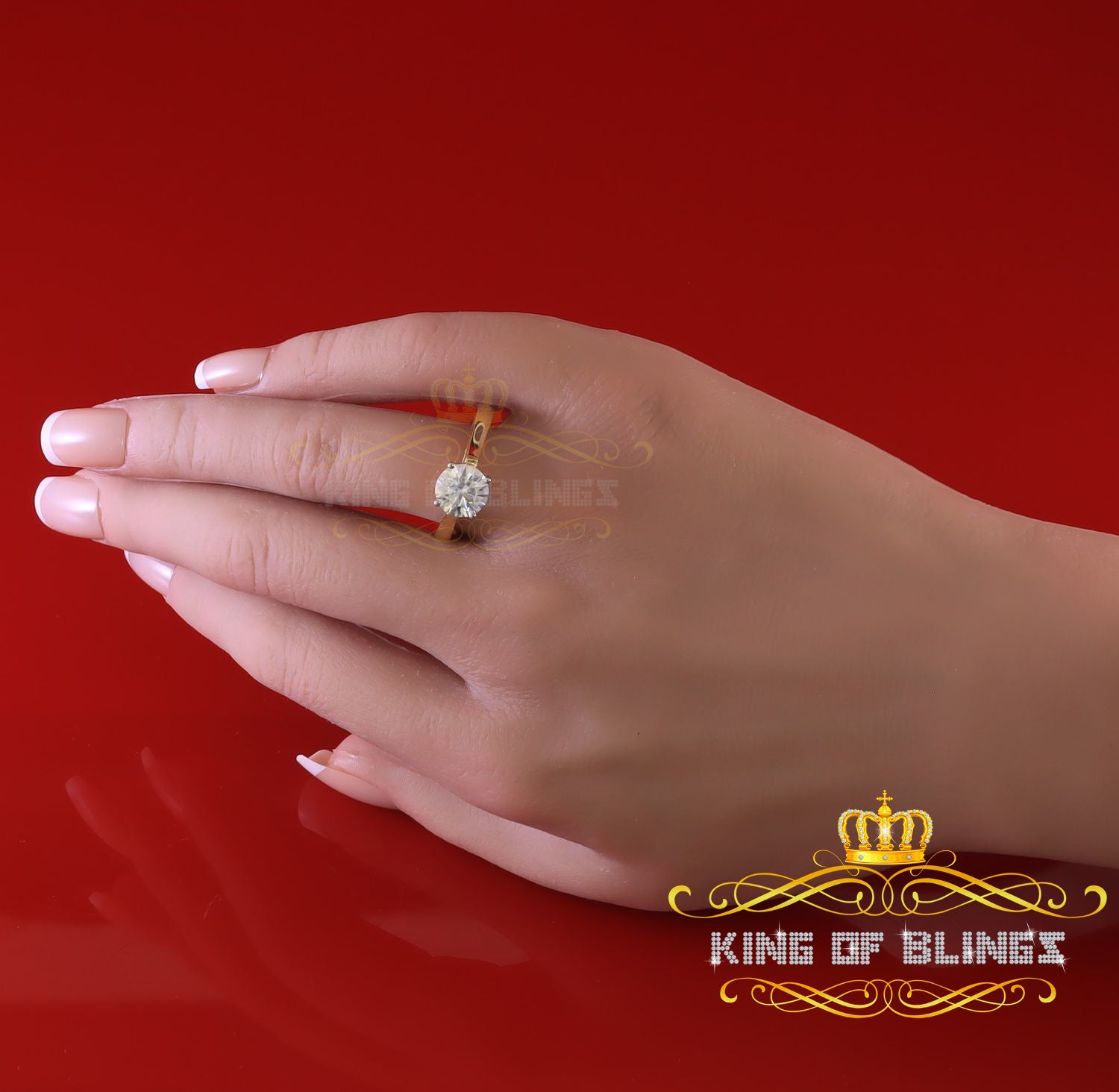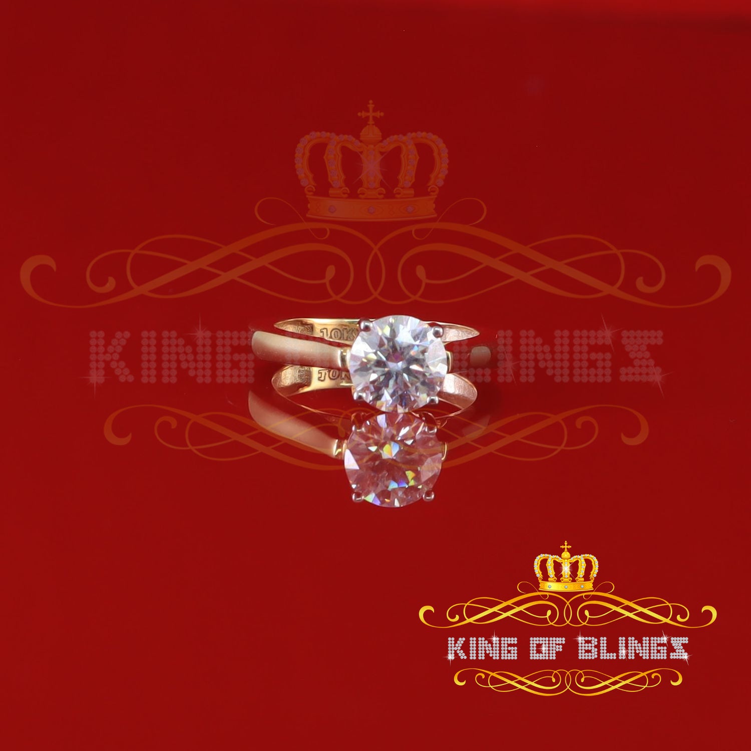 King Of Blings 10K Yellow Gold 2.00CT VVS' 'FL' D clr Round Solitaire Moissonite Womens Ring S/7