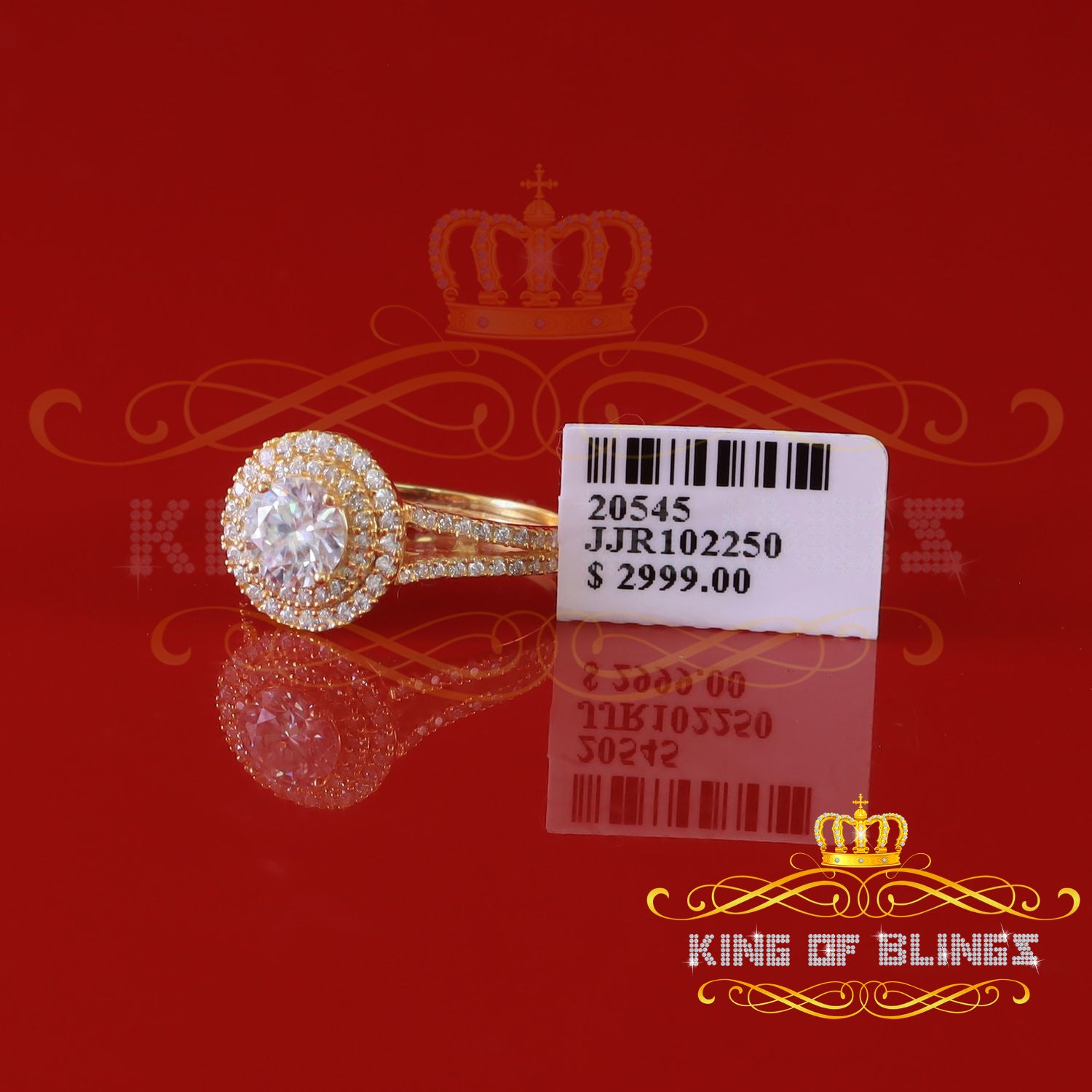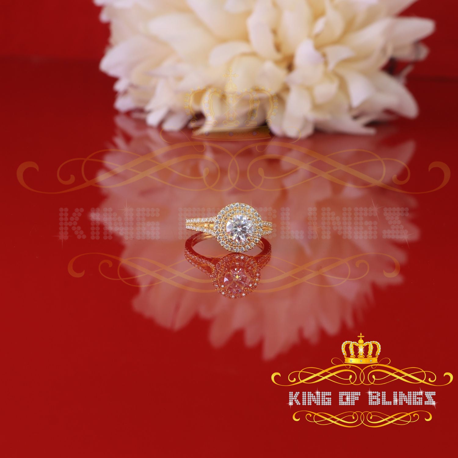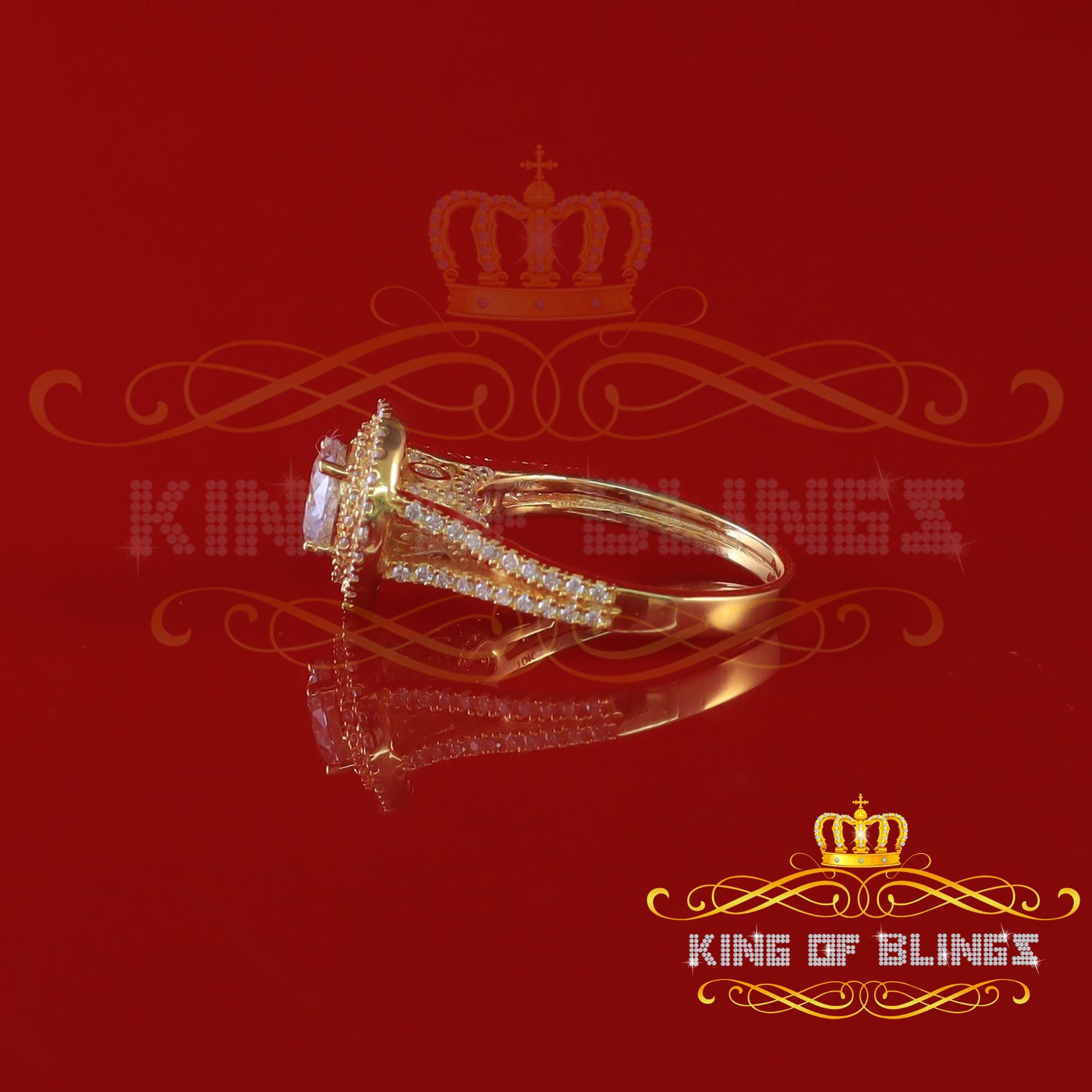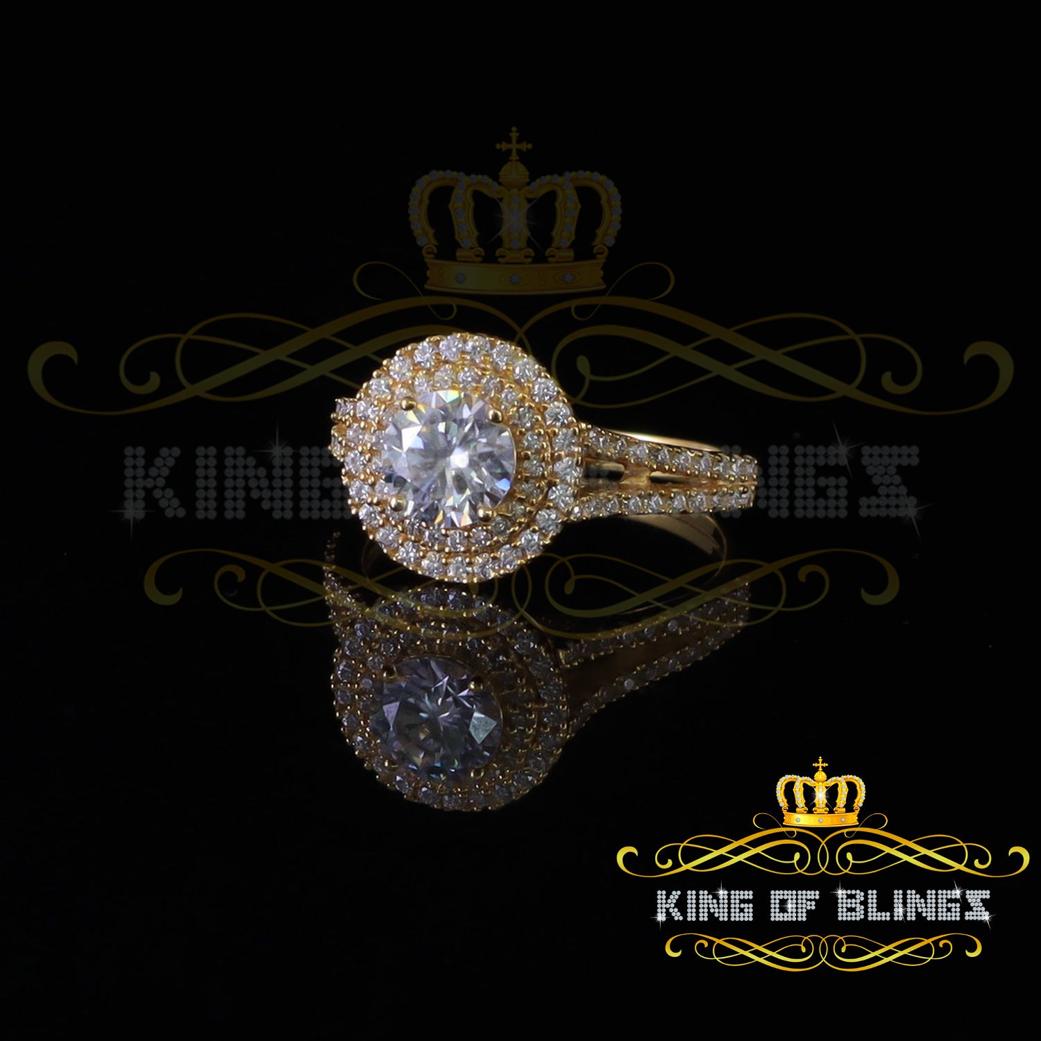 King Of Blings 10K Yellow Gold 2.00CT VVS' 'FL'D clr Round Solitaire Moissonite Womens Ring S/7