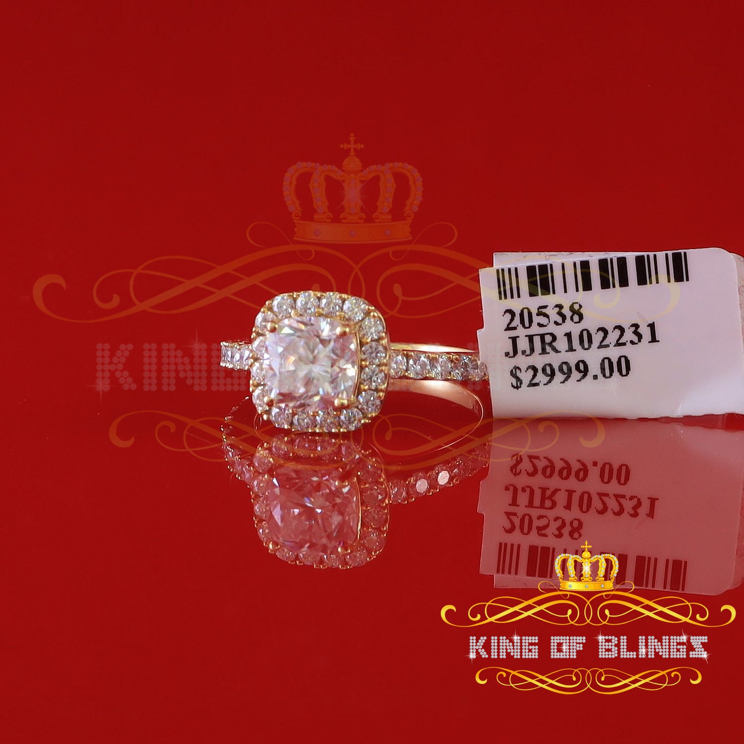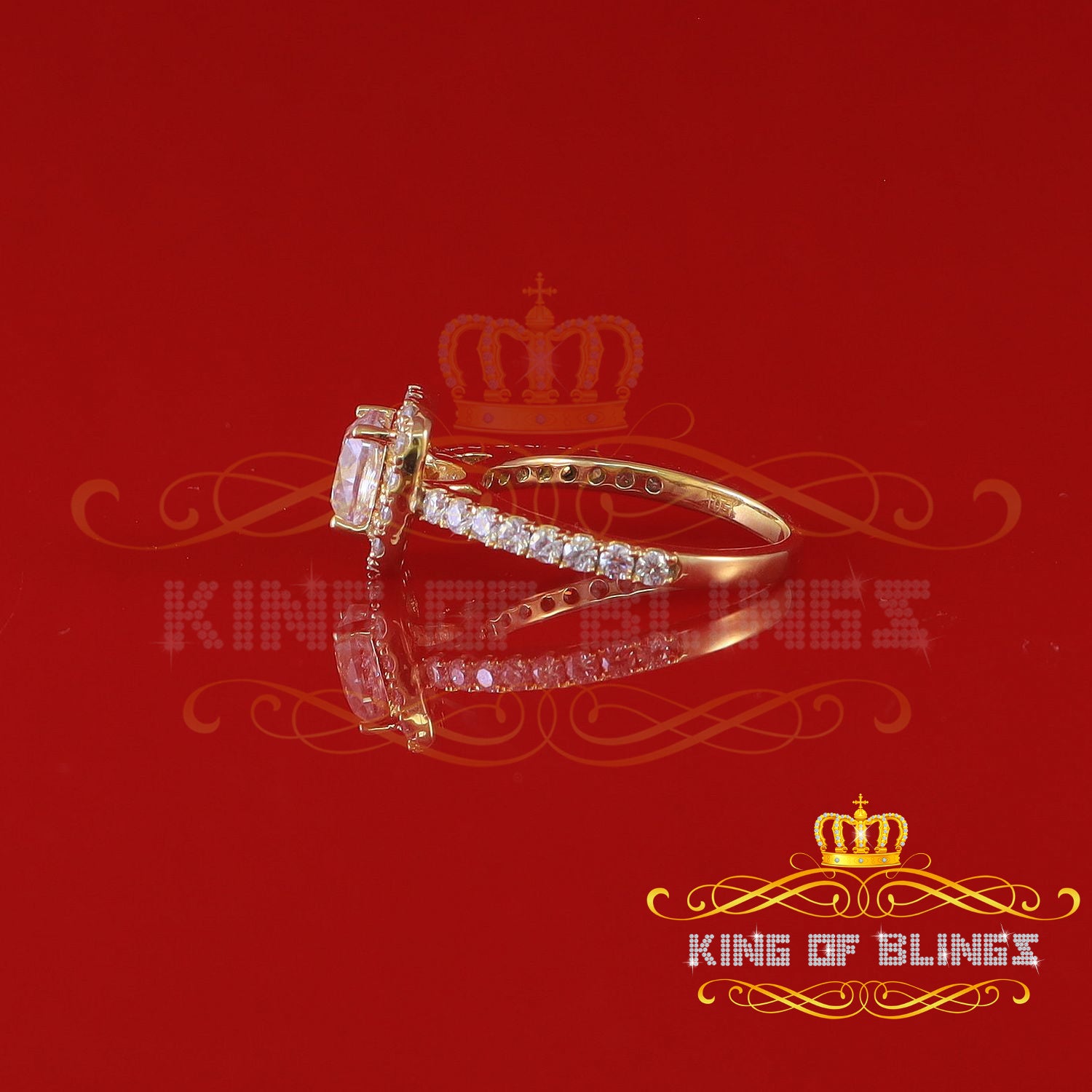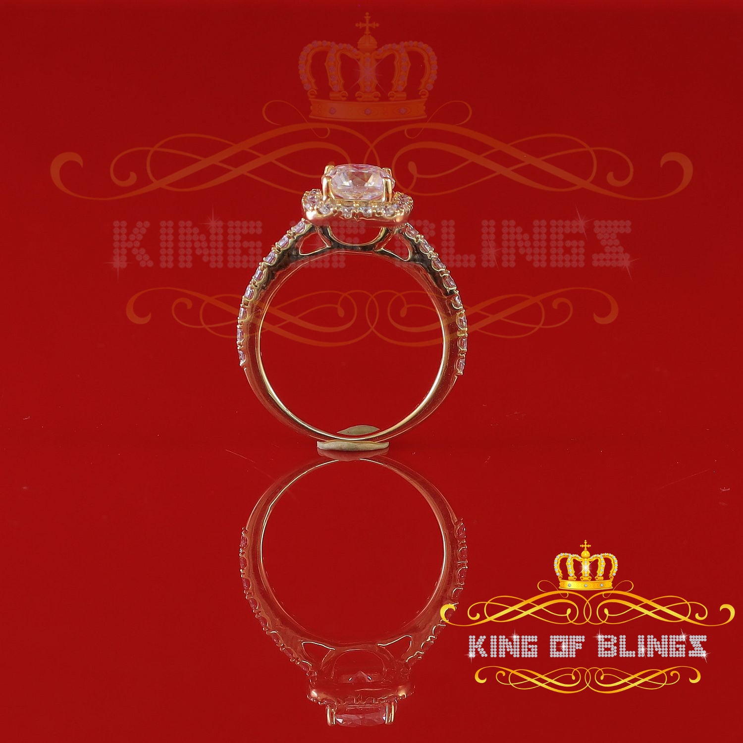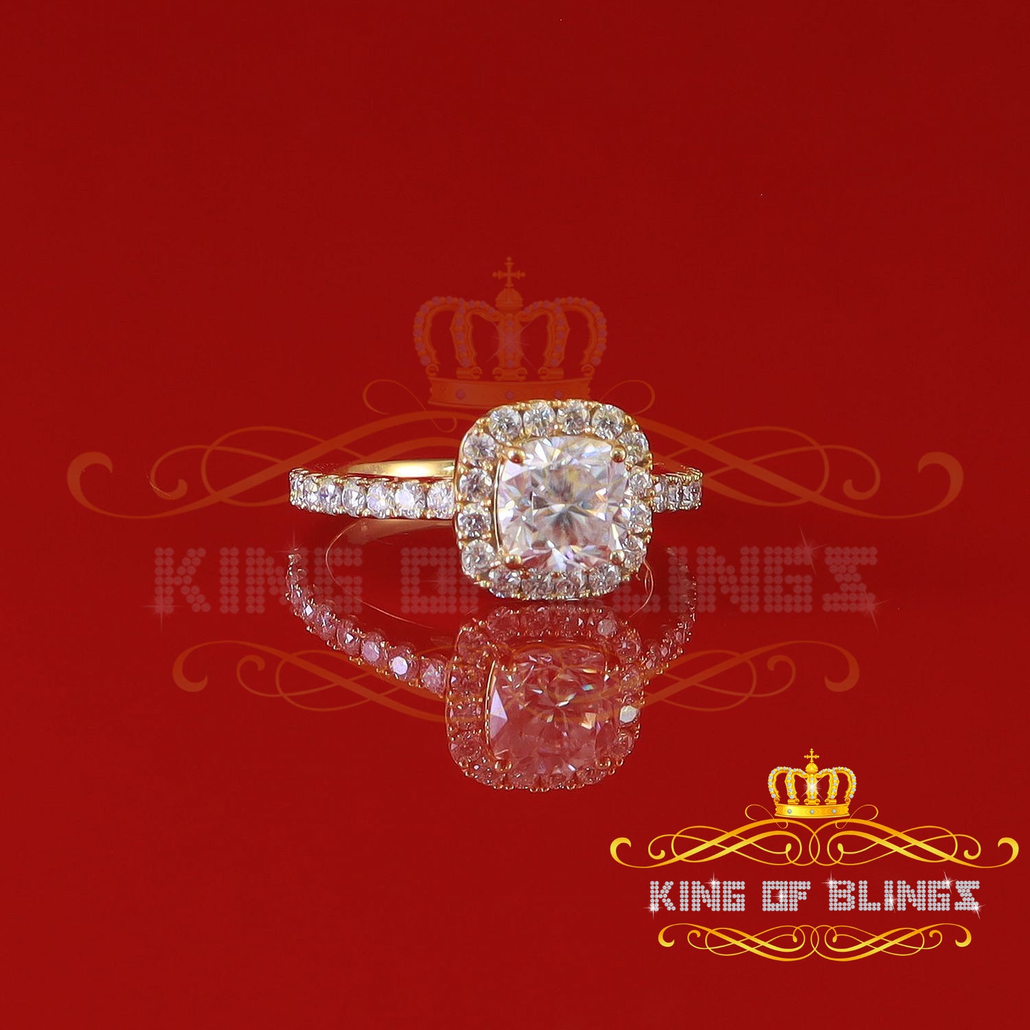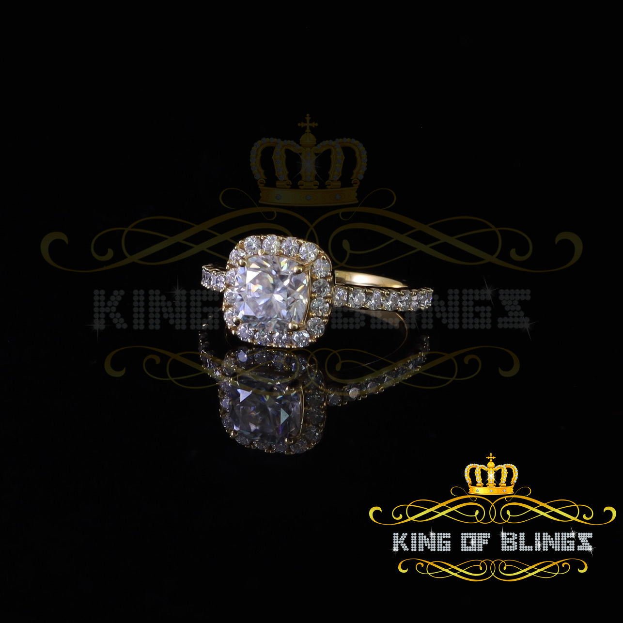 King Of Blings 10K Yellow Gold 2.50CT 'VVS' 'FL' D clr Moissonite Womens Cushion Cut Ring S/7