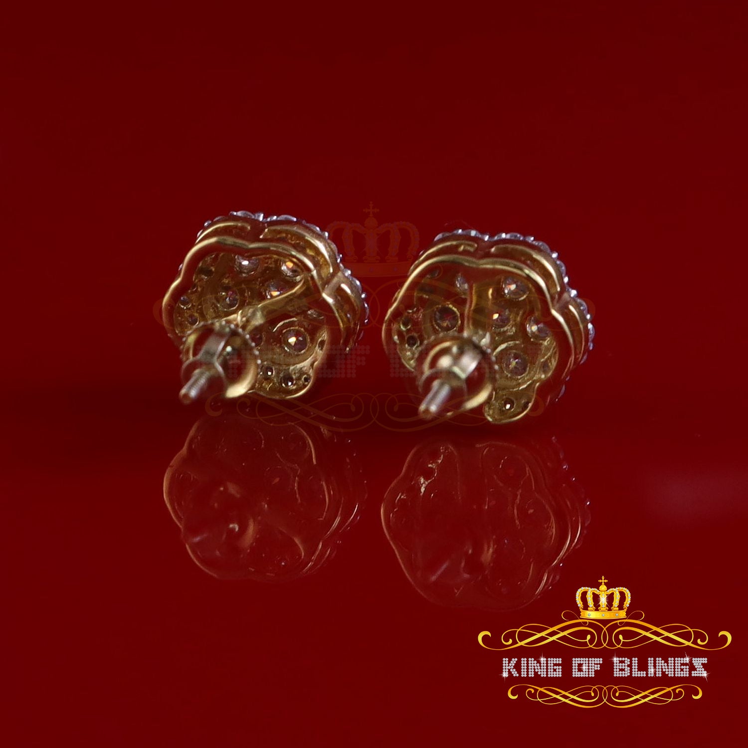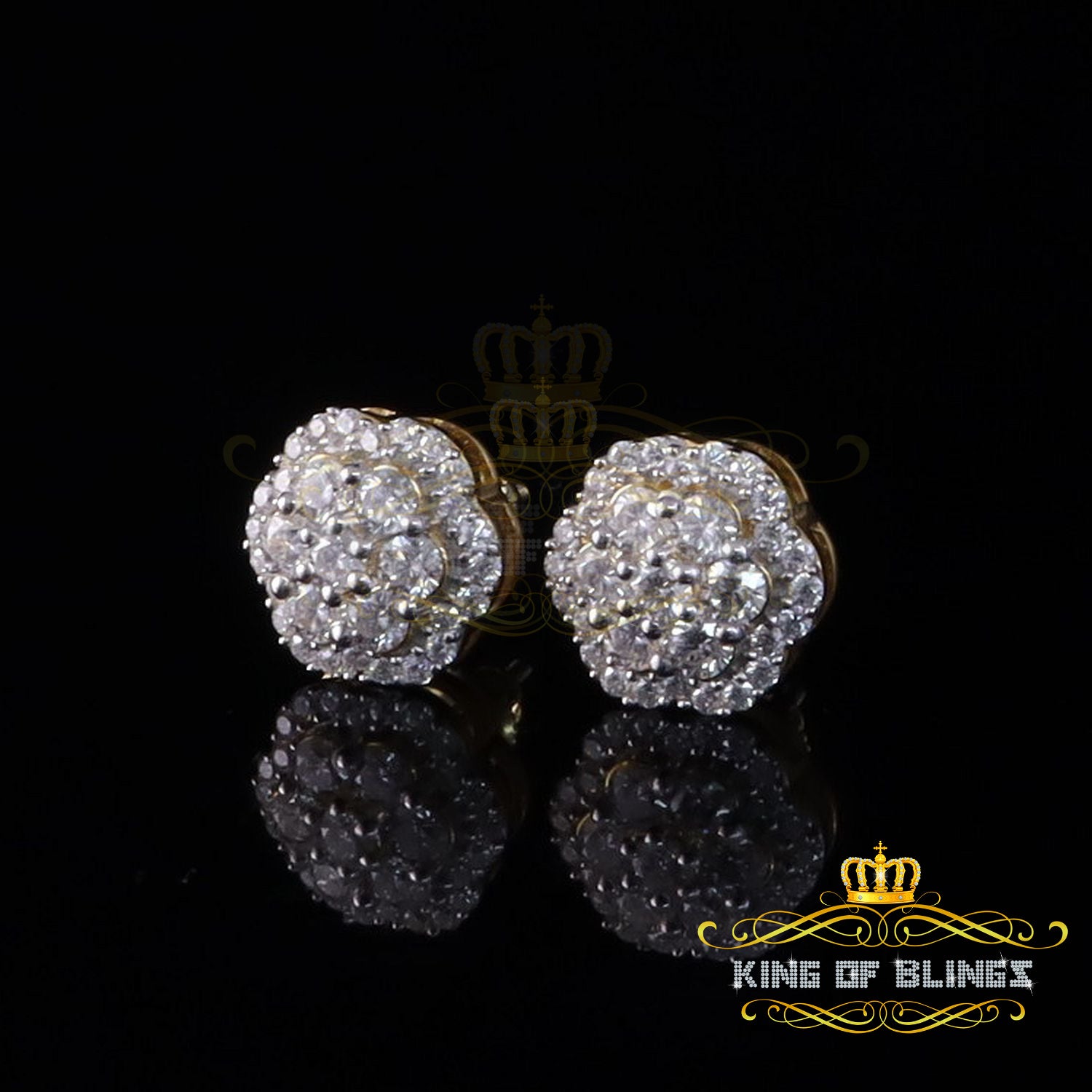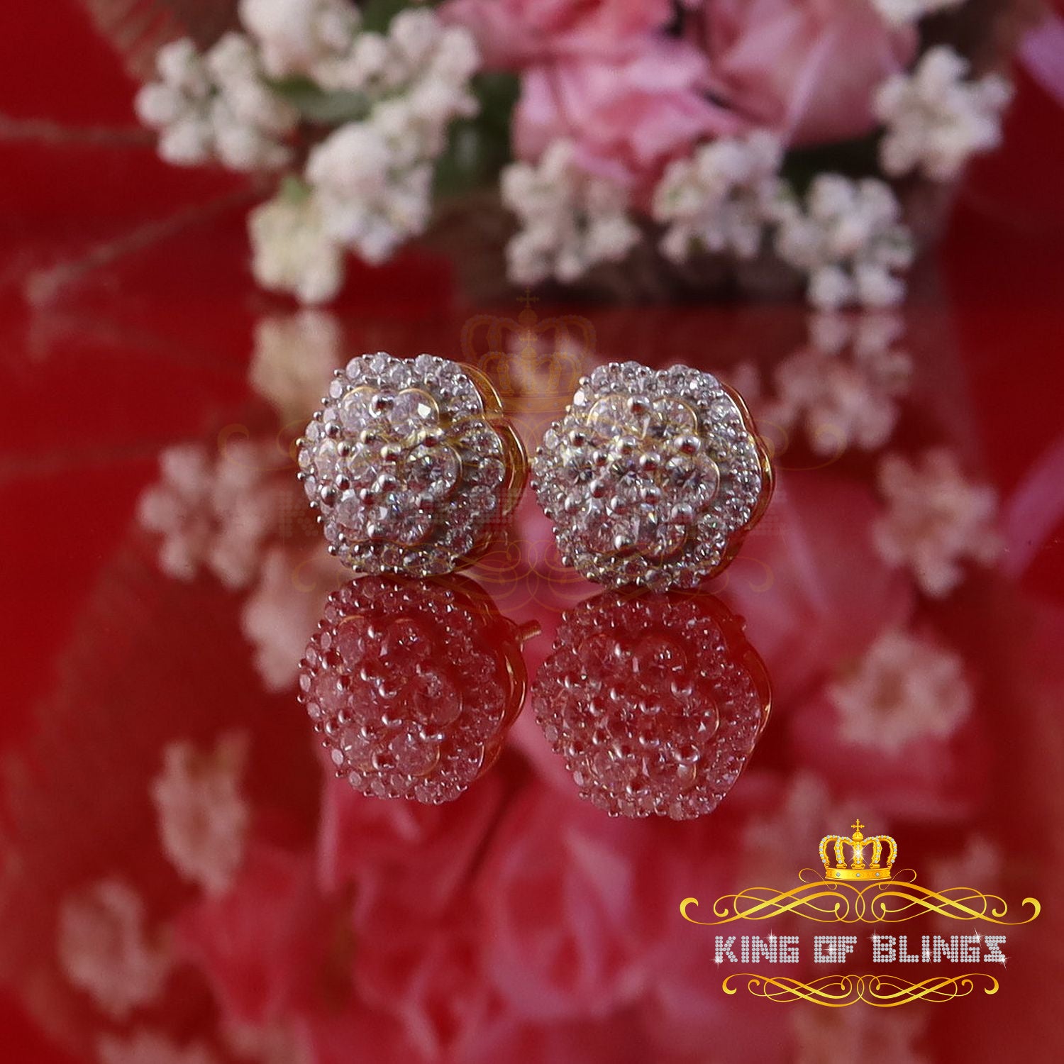 King of Bling's 2.00ct MOISSANITE 925 Sterling Silver Yellow Floral Earrings For Men's & Women's
