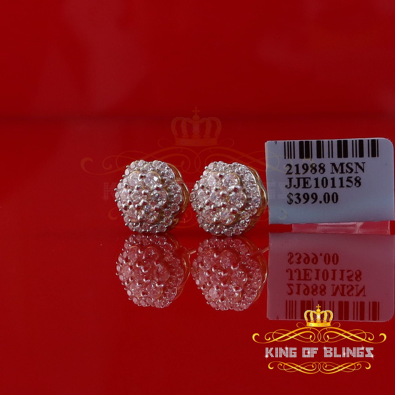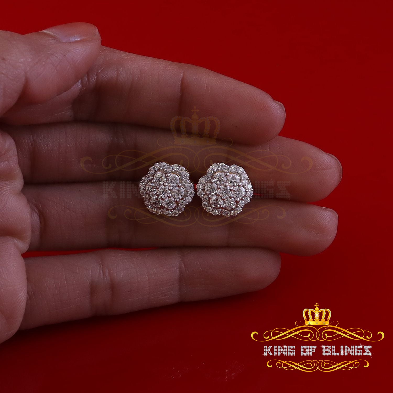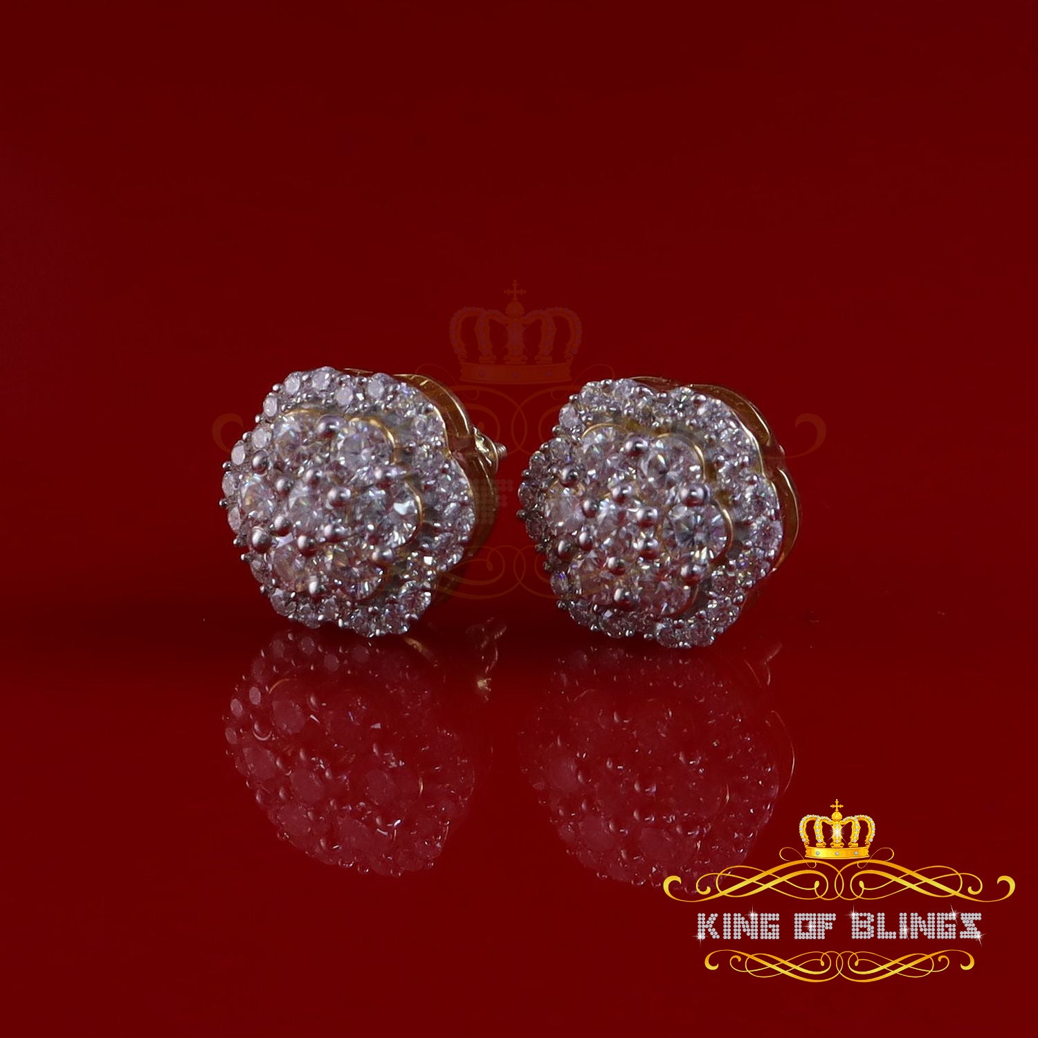 King of Bling's 2.00ct MOISSANITE 925 Sterling Silver Yellow Floral Earrings For Men's & Women's