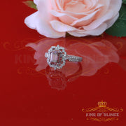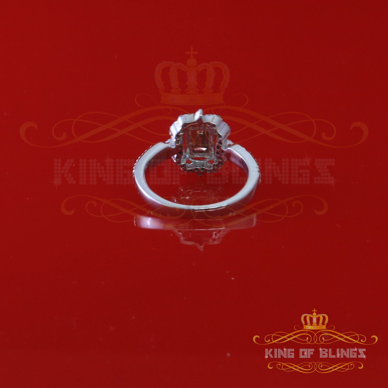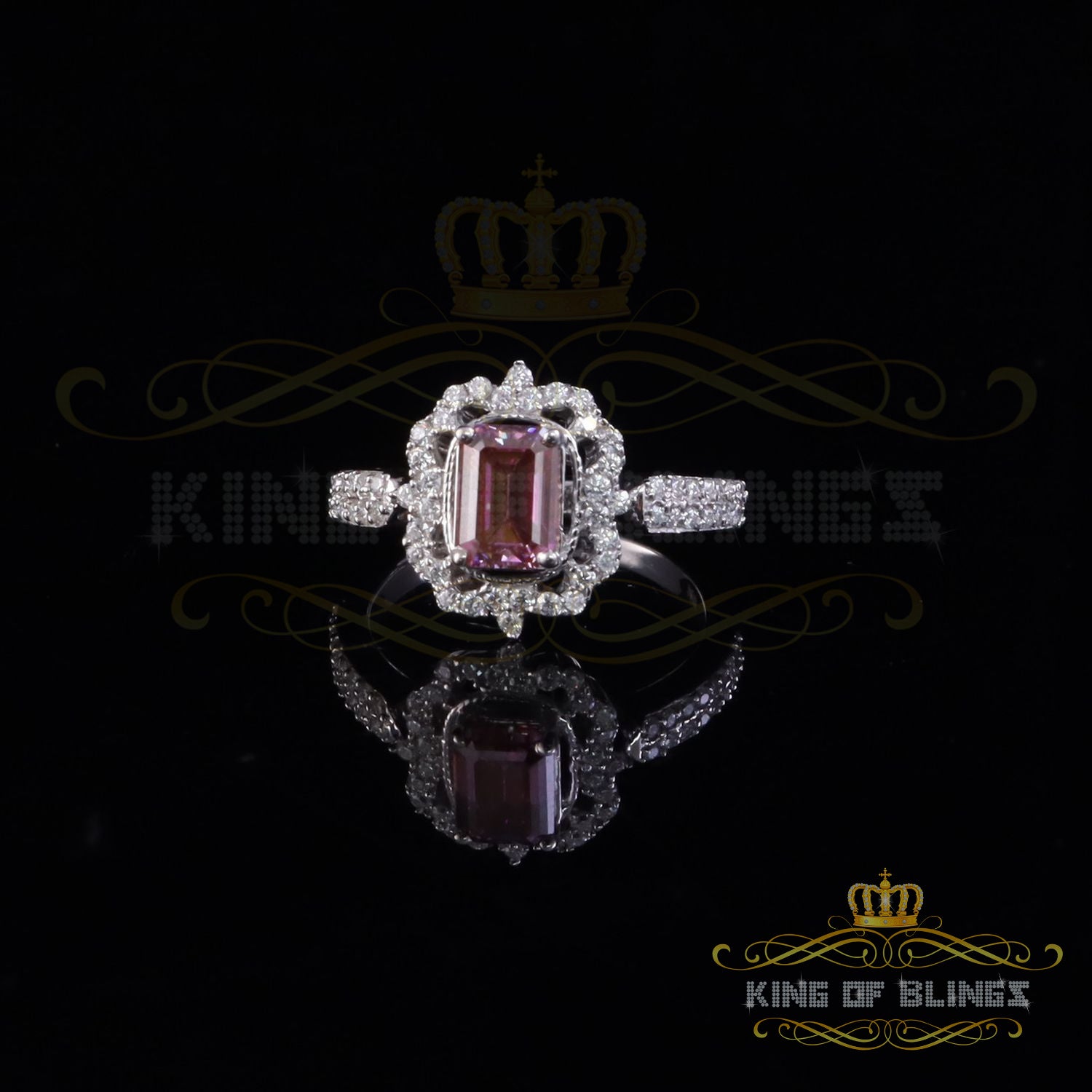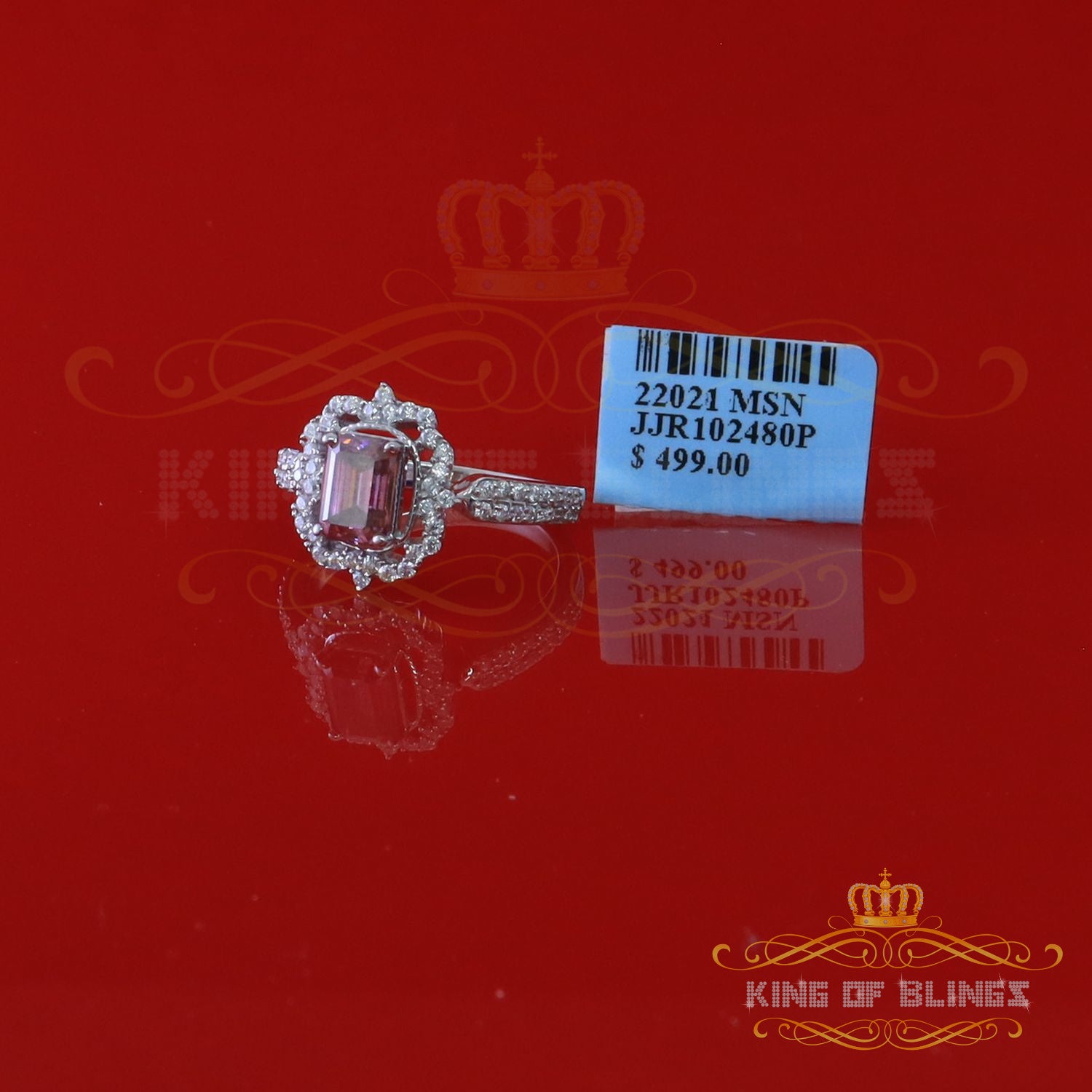 King of Bling's 2.00CT Womens 925 Silver White VVS D Pink Moissanite Emerald Engagement Ring SZ7