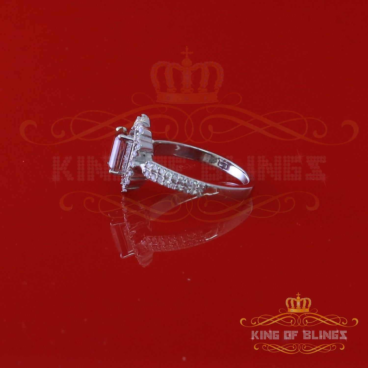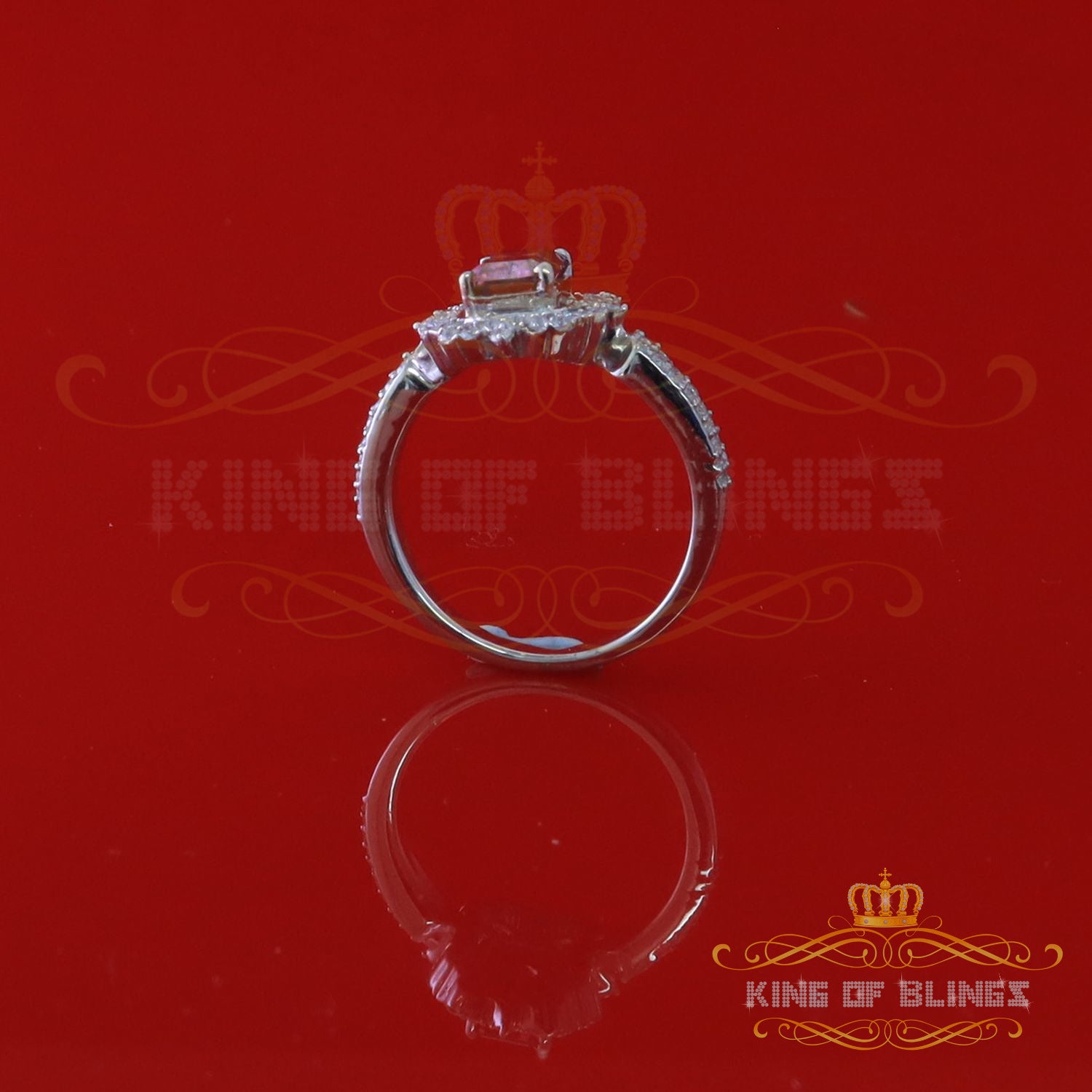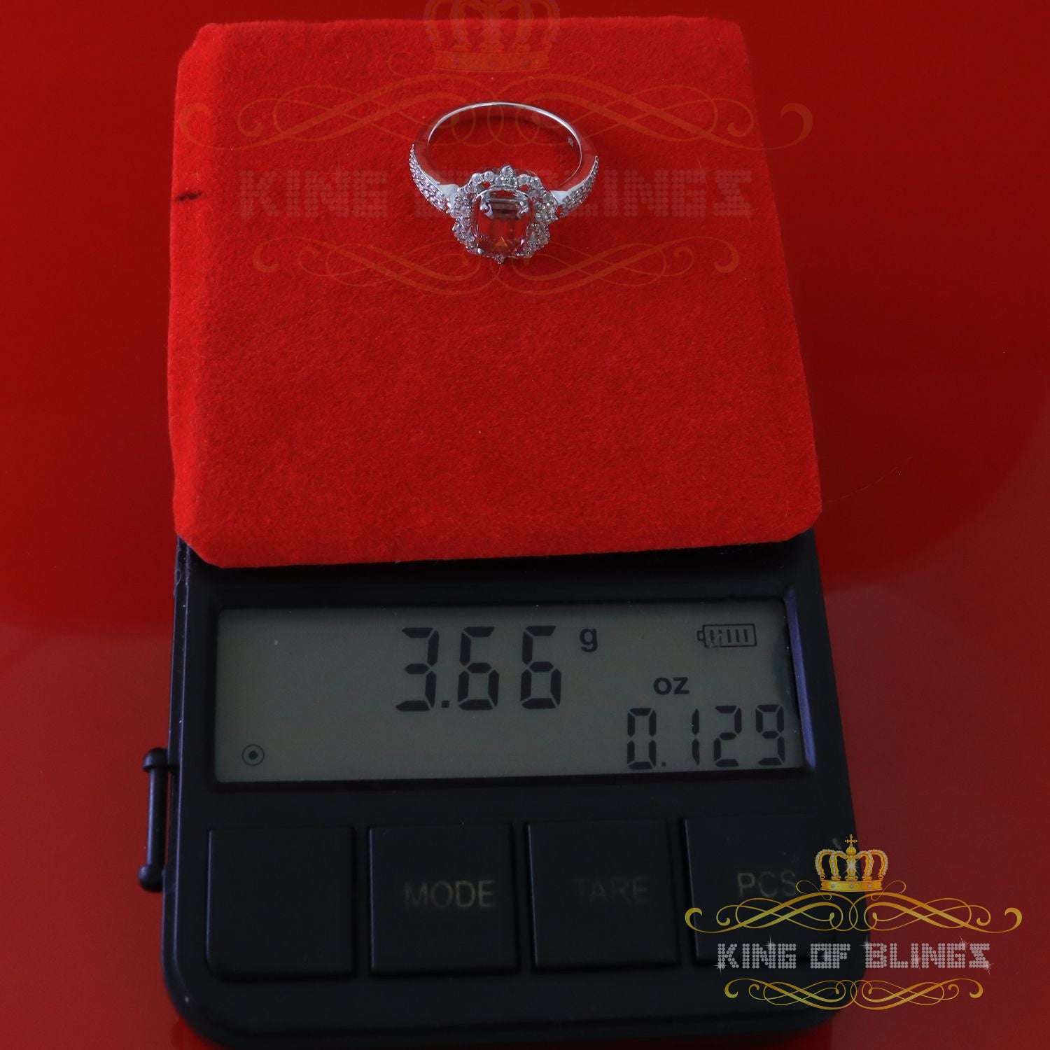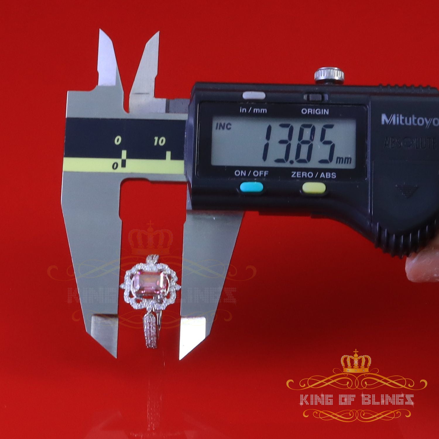 King of Bling's 2.00CT Womens 925 Silver White VVS D Pink Moissanite Emerald Engagement Ring SZ7