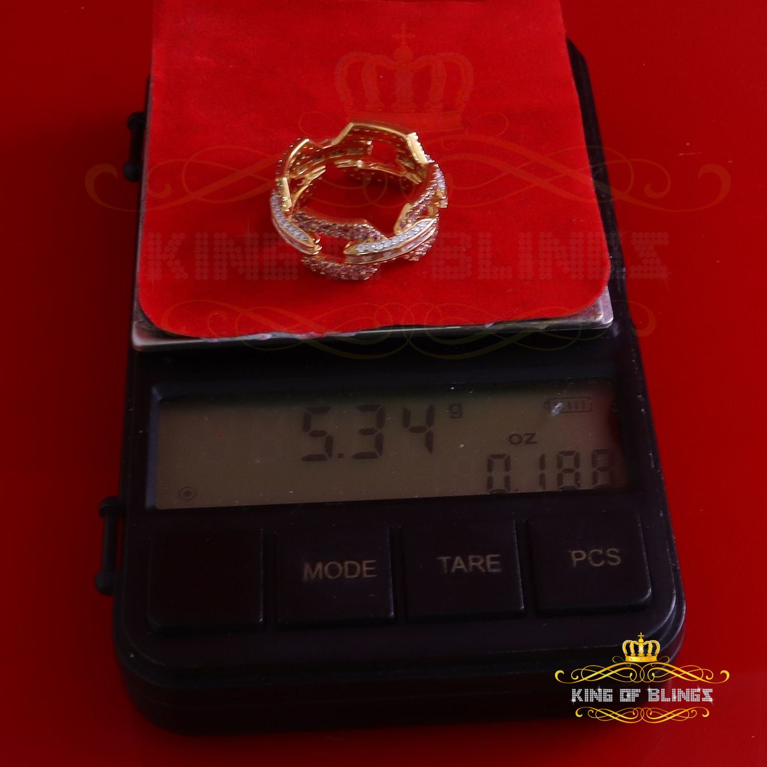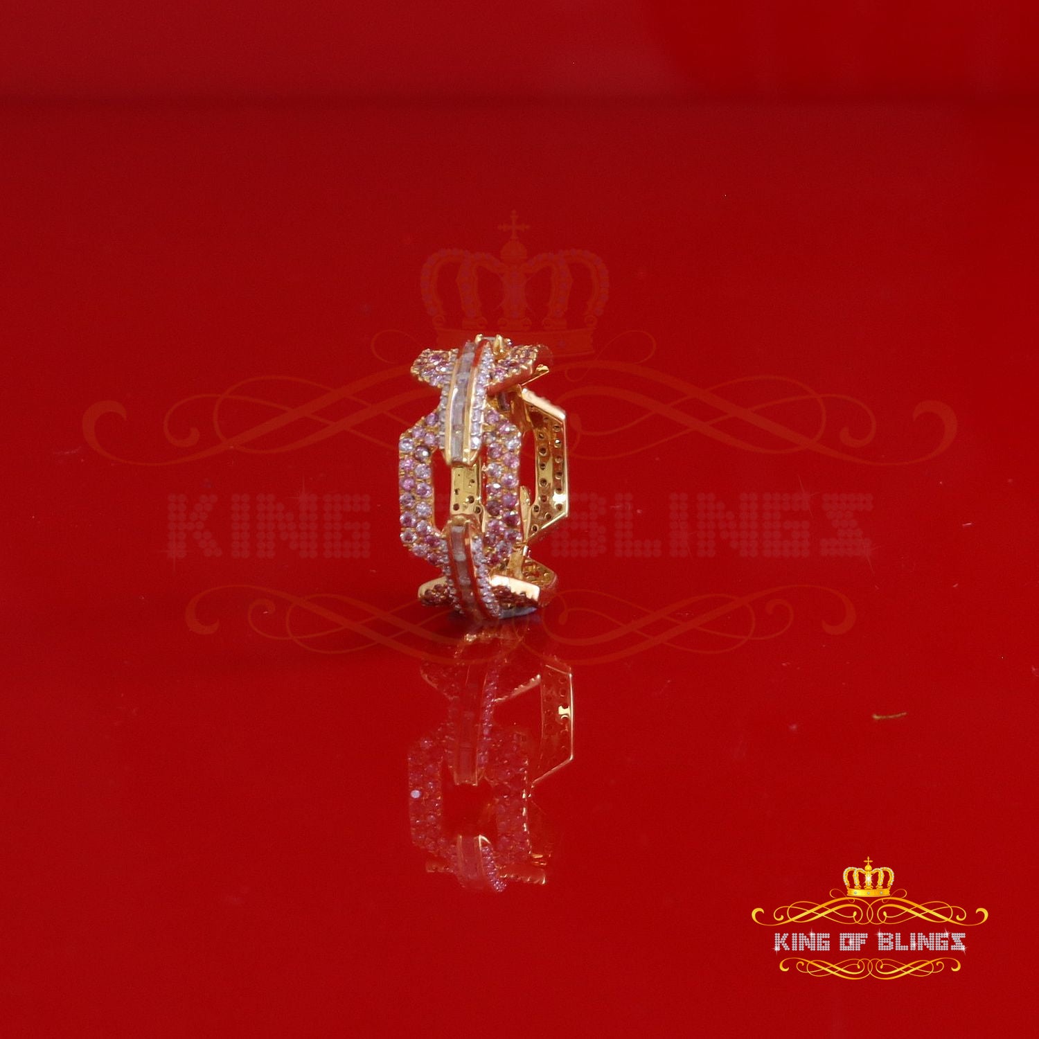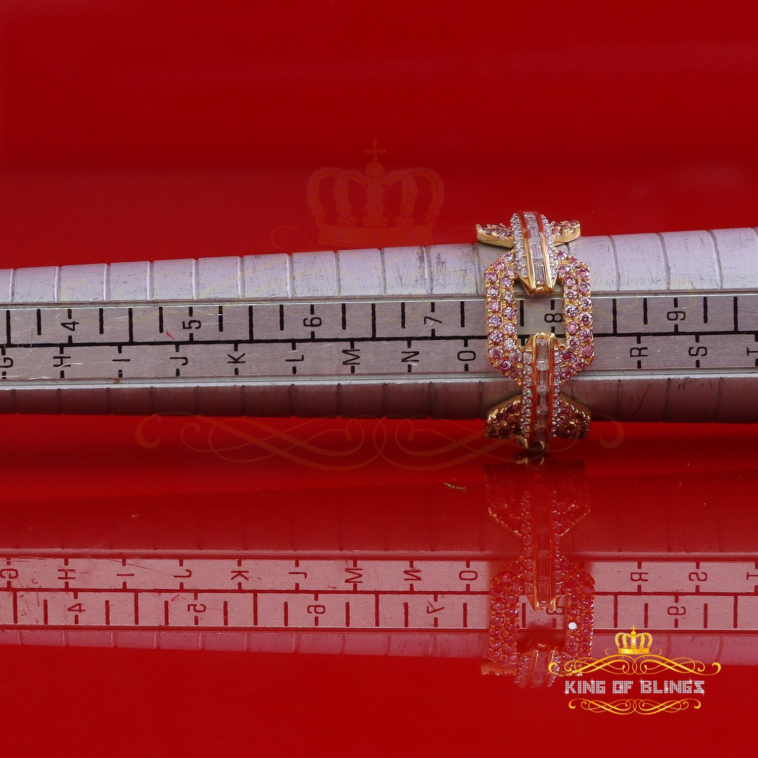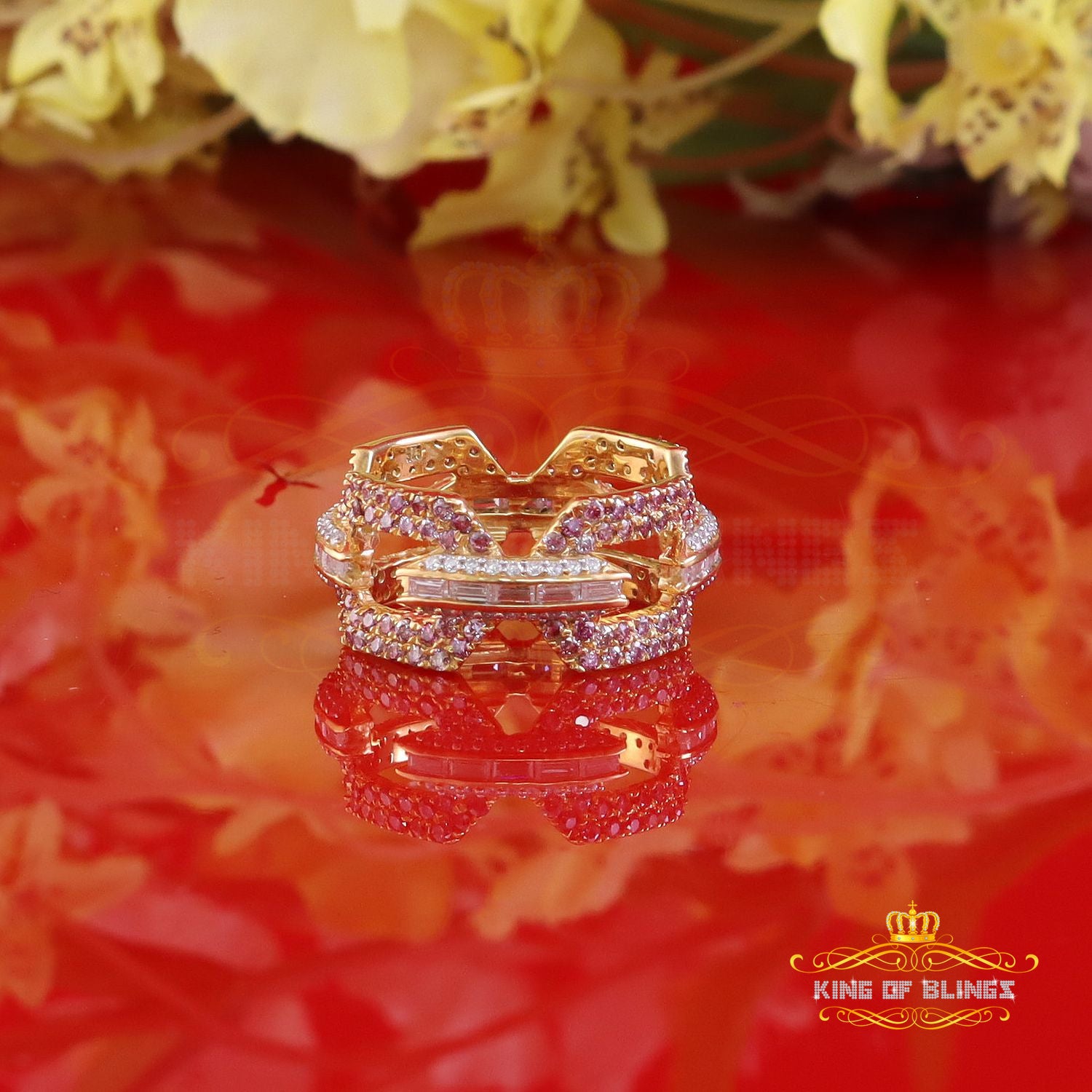 King of Bling's 2.50CT Womens Pink Moissanite VVS D 925 Yellow Silver Baguette Eternity Ring Sz8