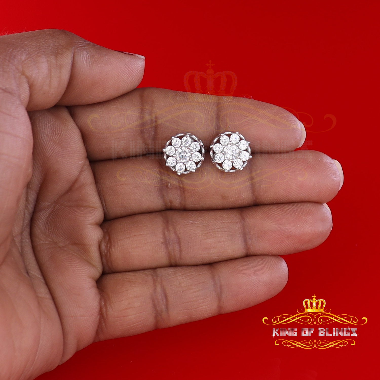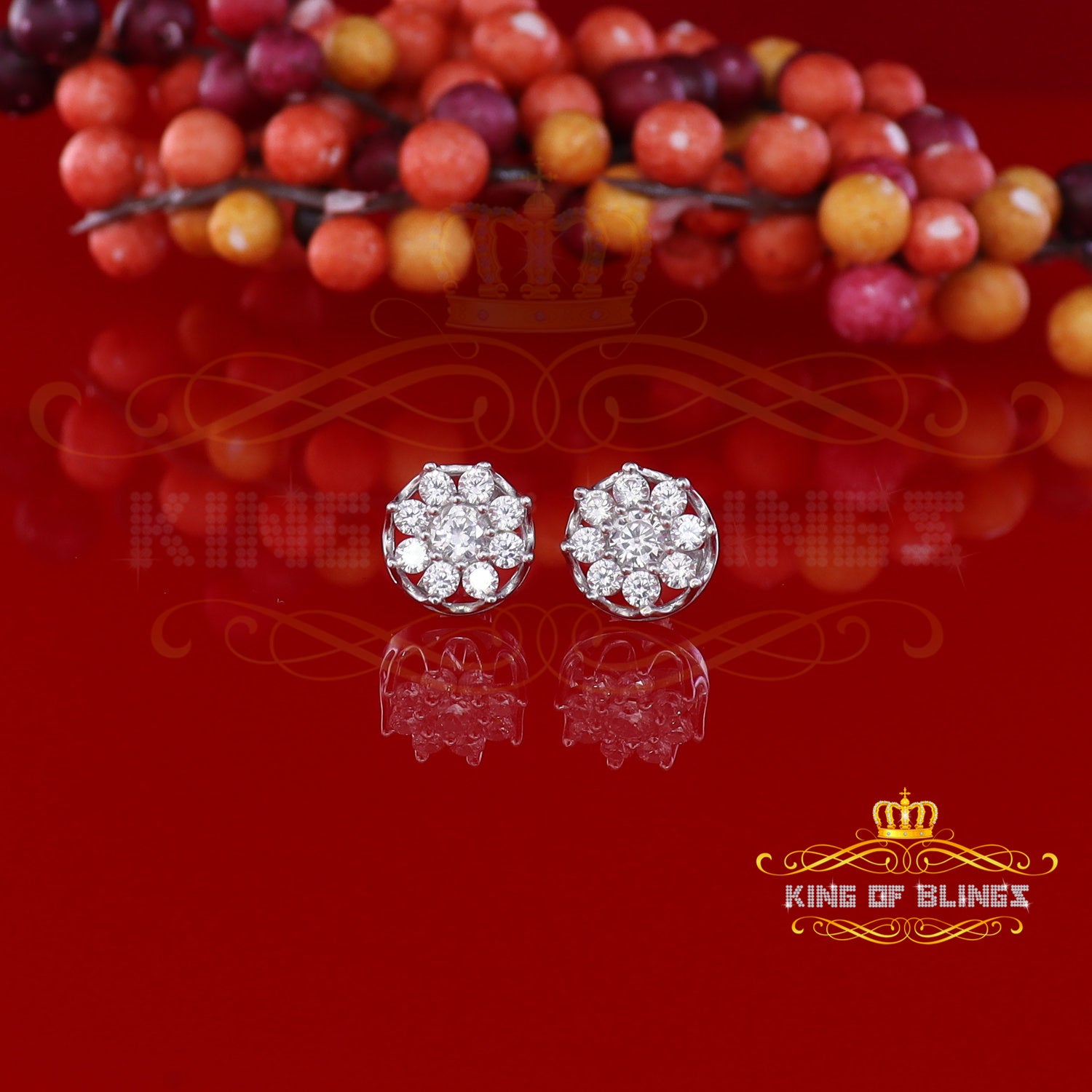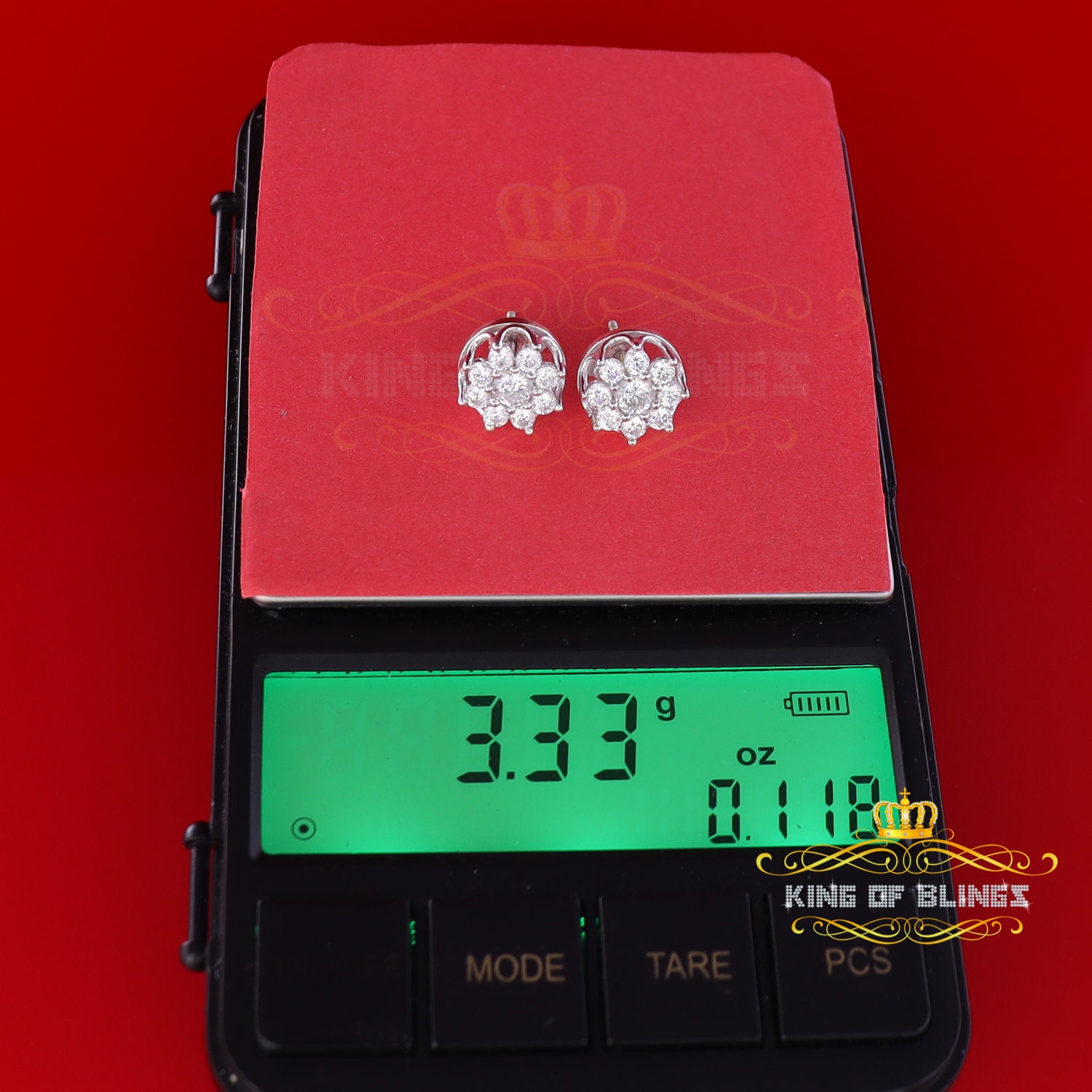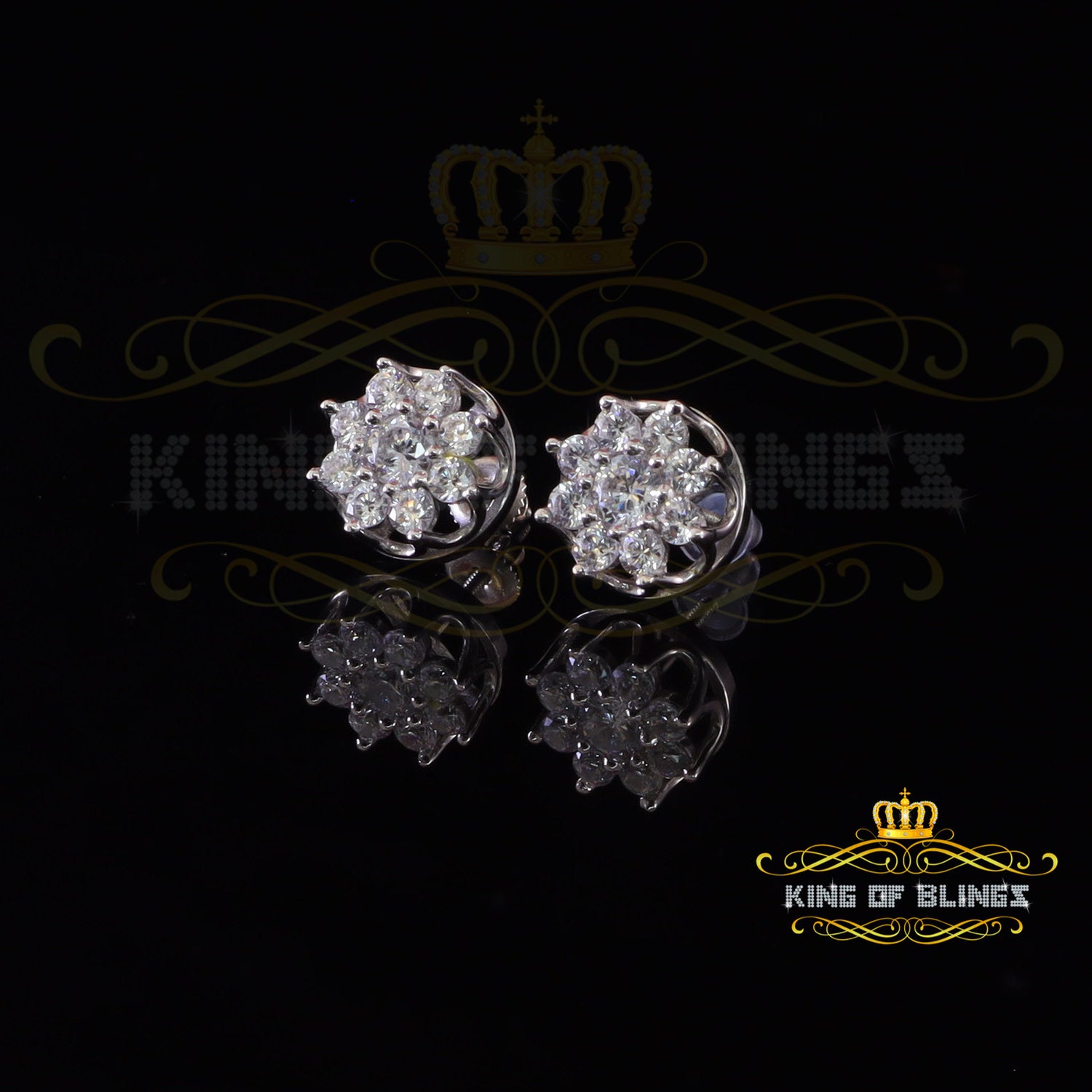 King of Bling's 3.20ct Cubic Zirconia 925 White Sterling Silver Hip Hop Flower Ladies Earrings