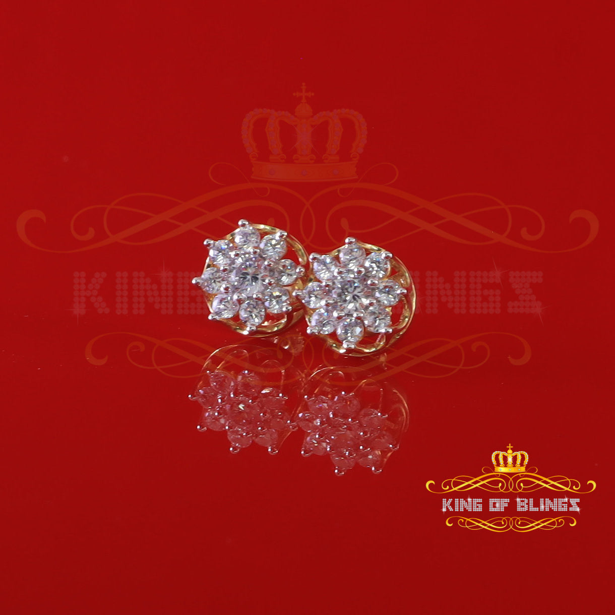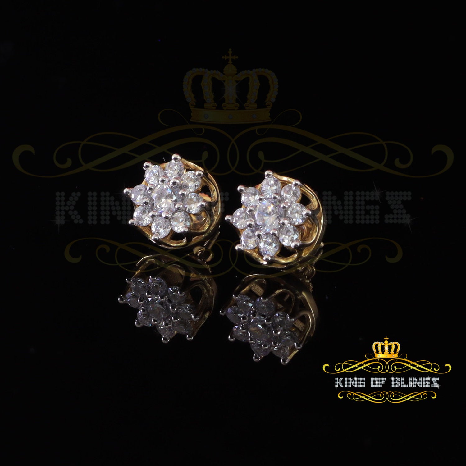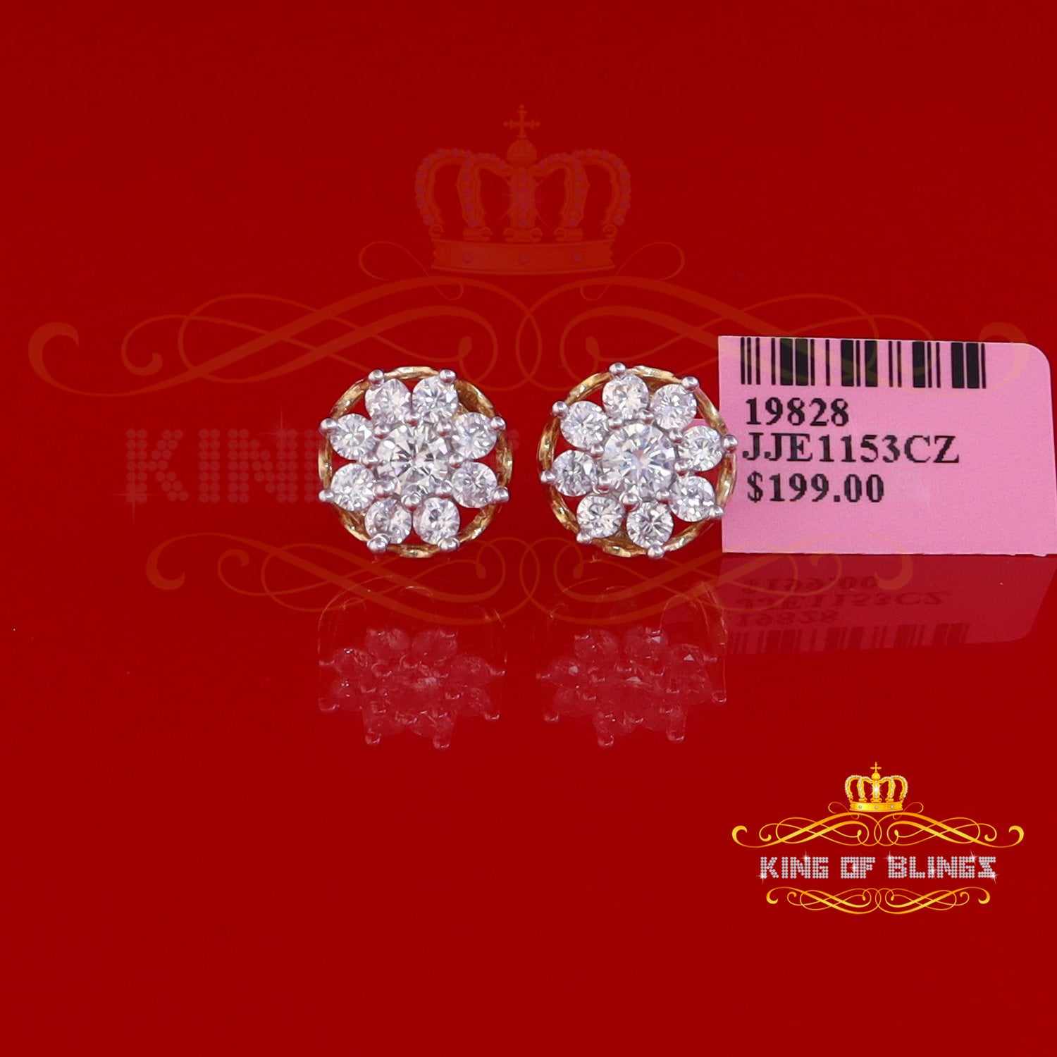King of Bling's 3.20ct Cubic Zirconia 925 Yellow Sterling Silver Hip Hop Flower Ladies Earrings