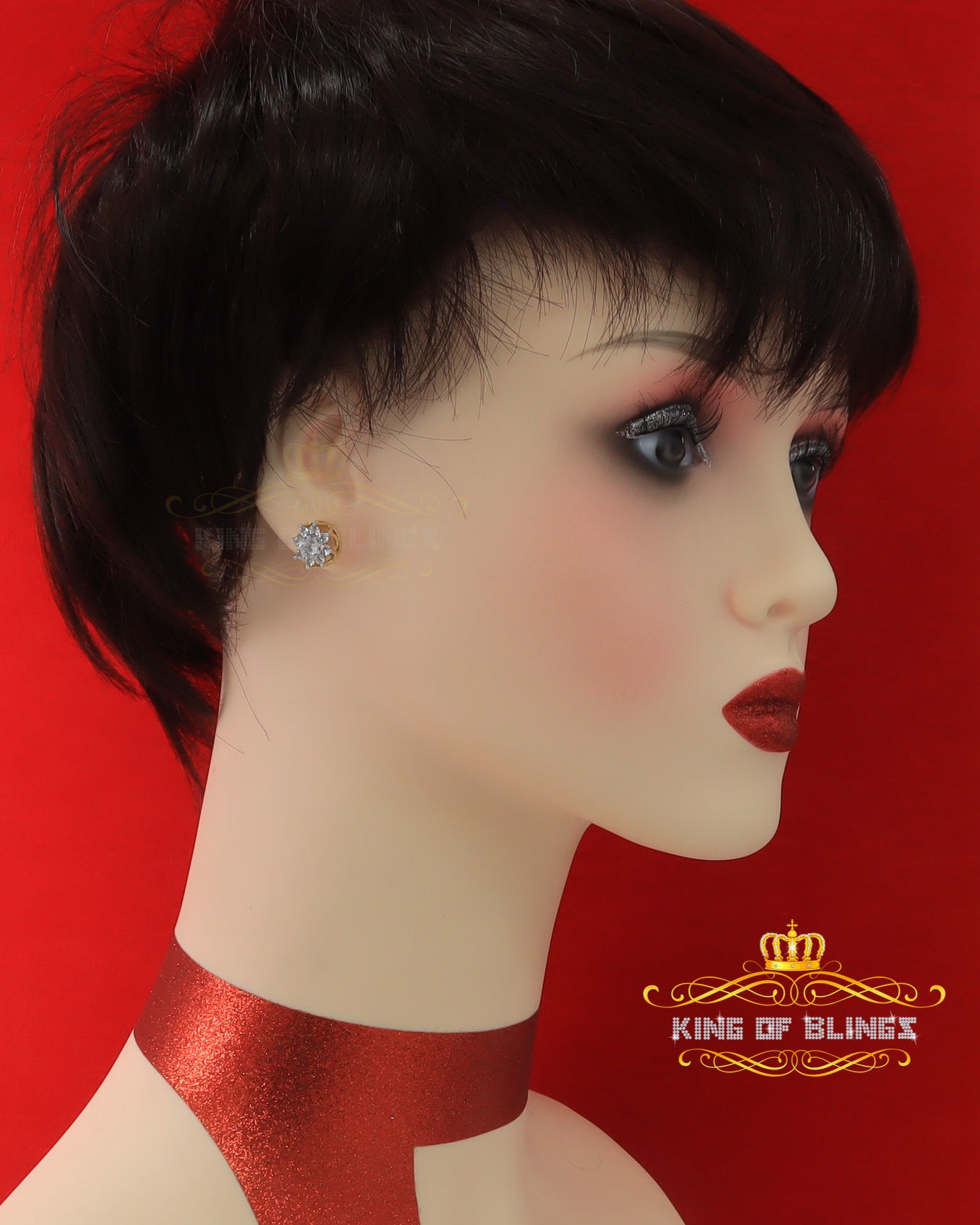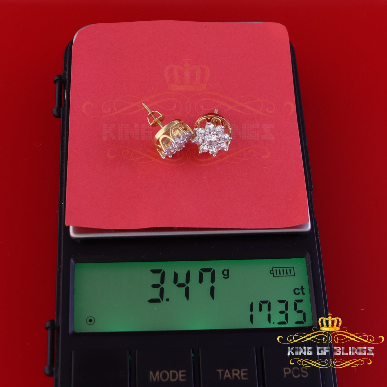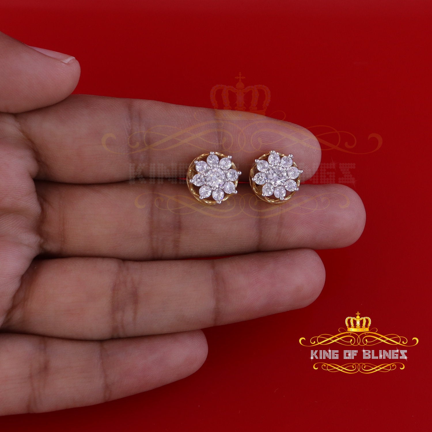 King of Bling's 3.20ct Cubic Zirconia 925 Yellow Sterling Silver Hip Hop Flower Ladies Earrings