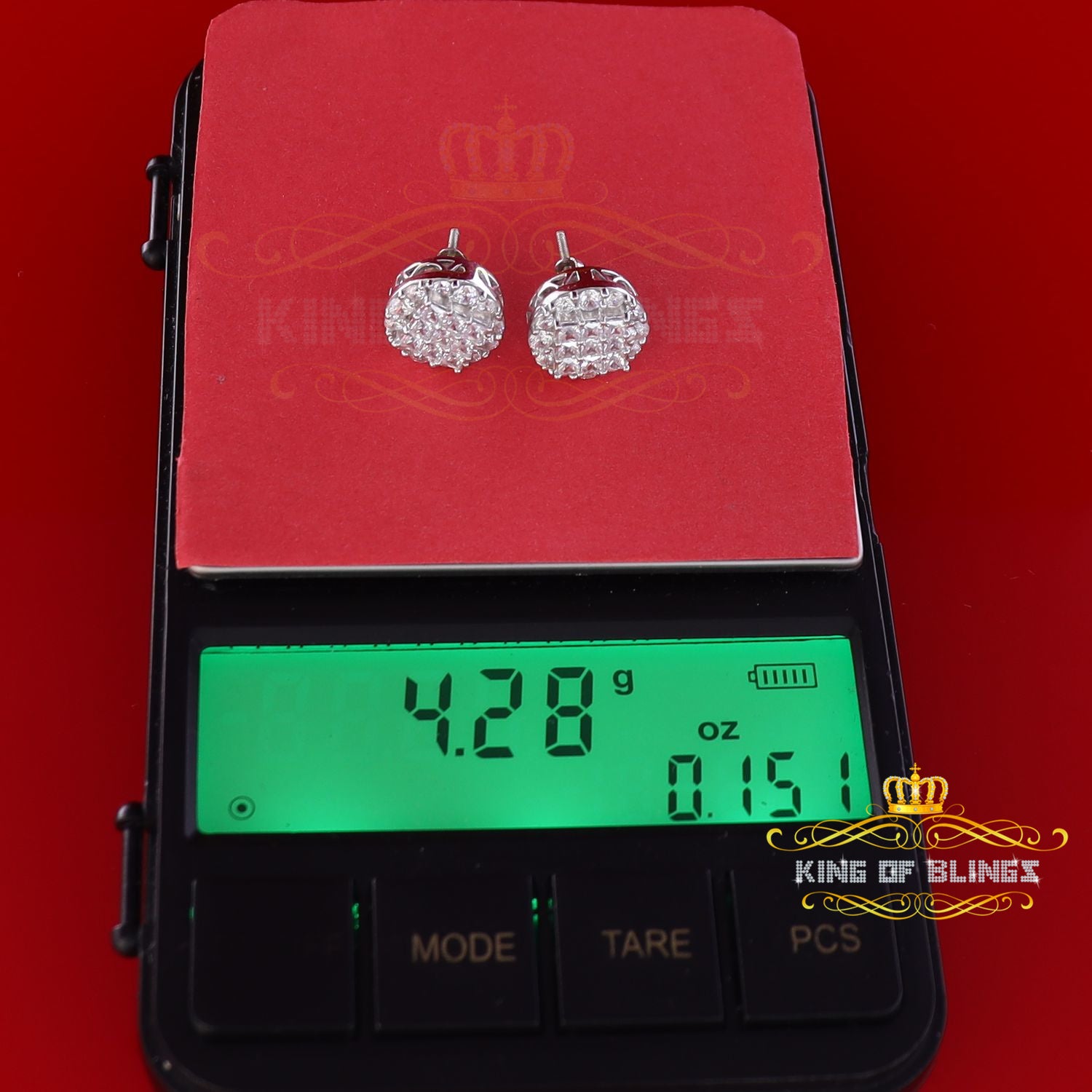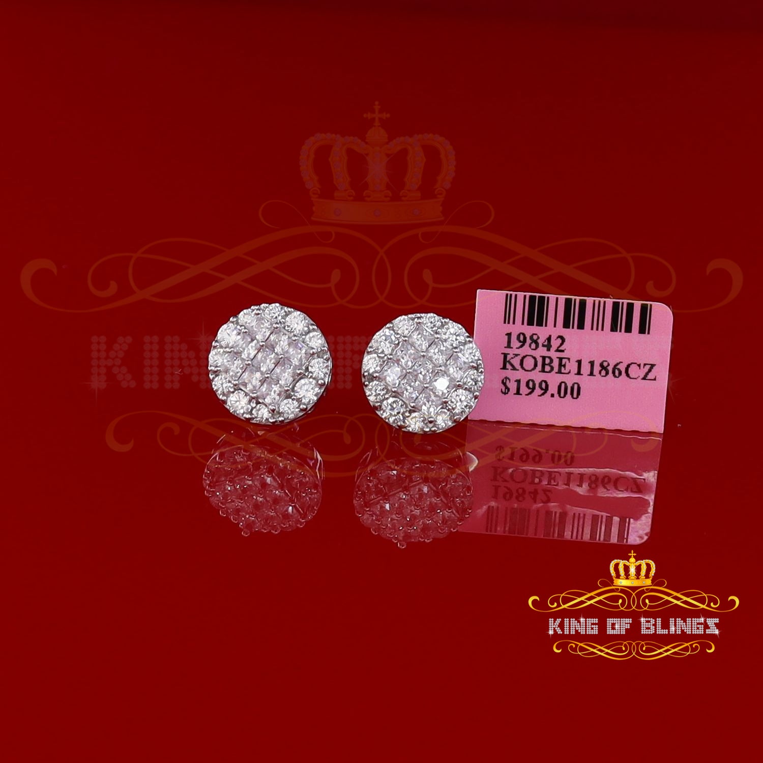 King of Bling's 3.46ct Cubic Zirconia 925 White Sterling Silver Women's Hip Hop Round Earrings