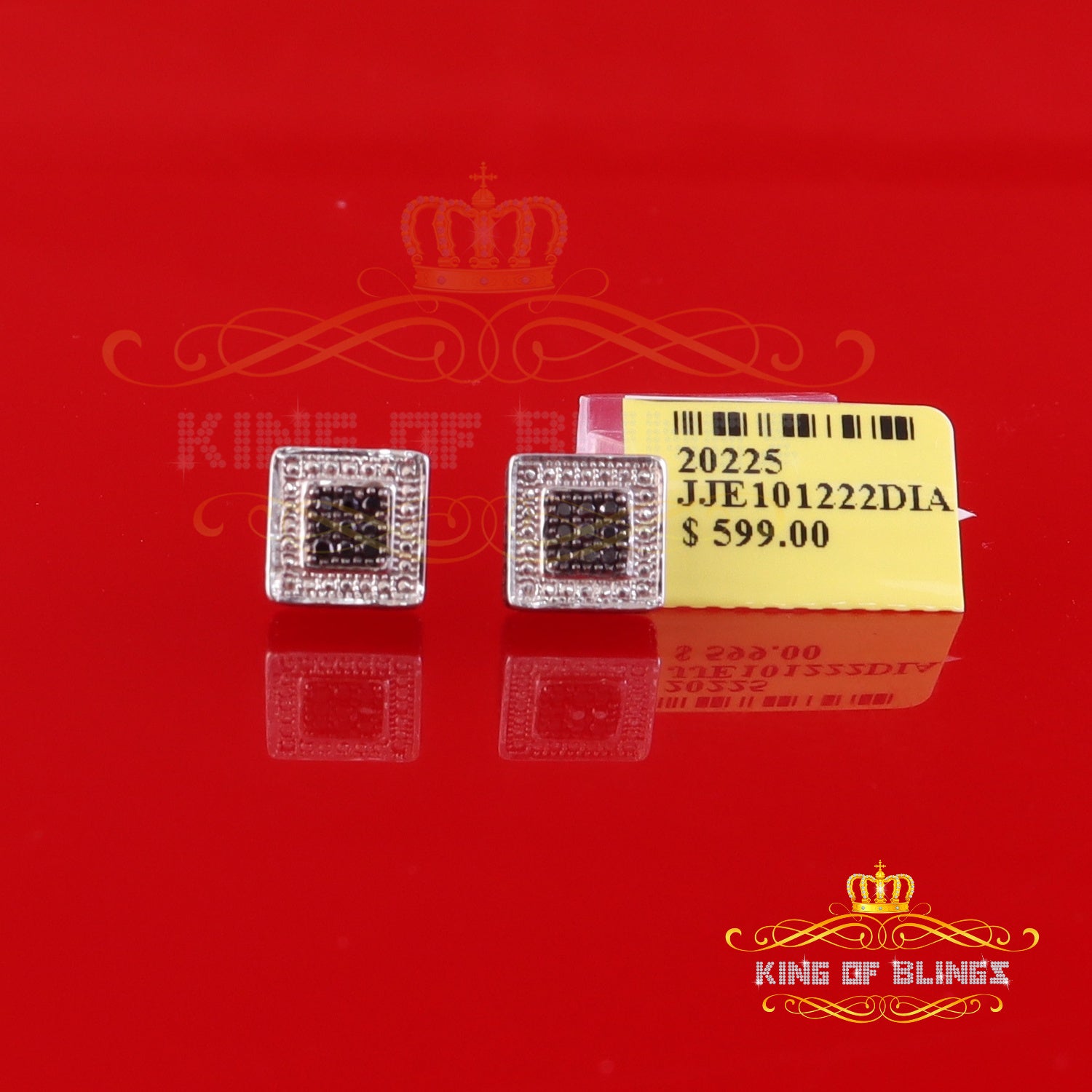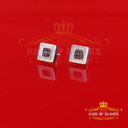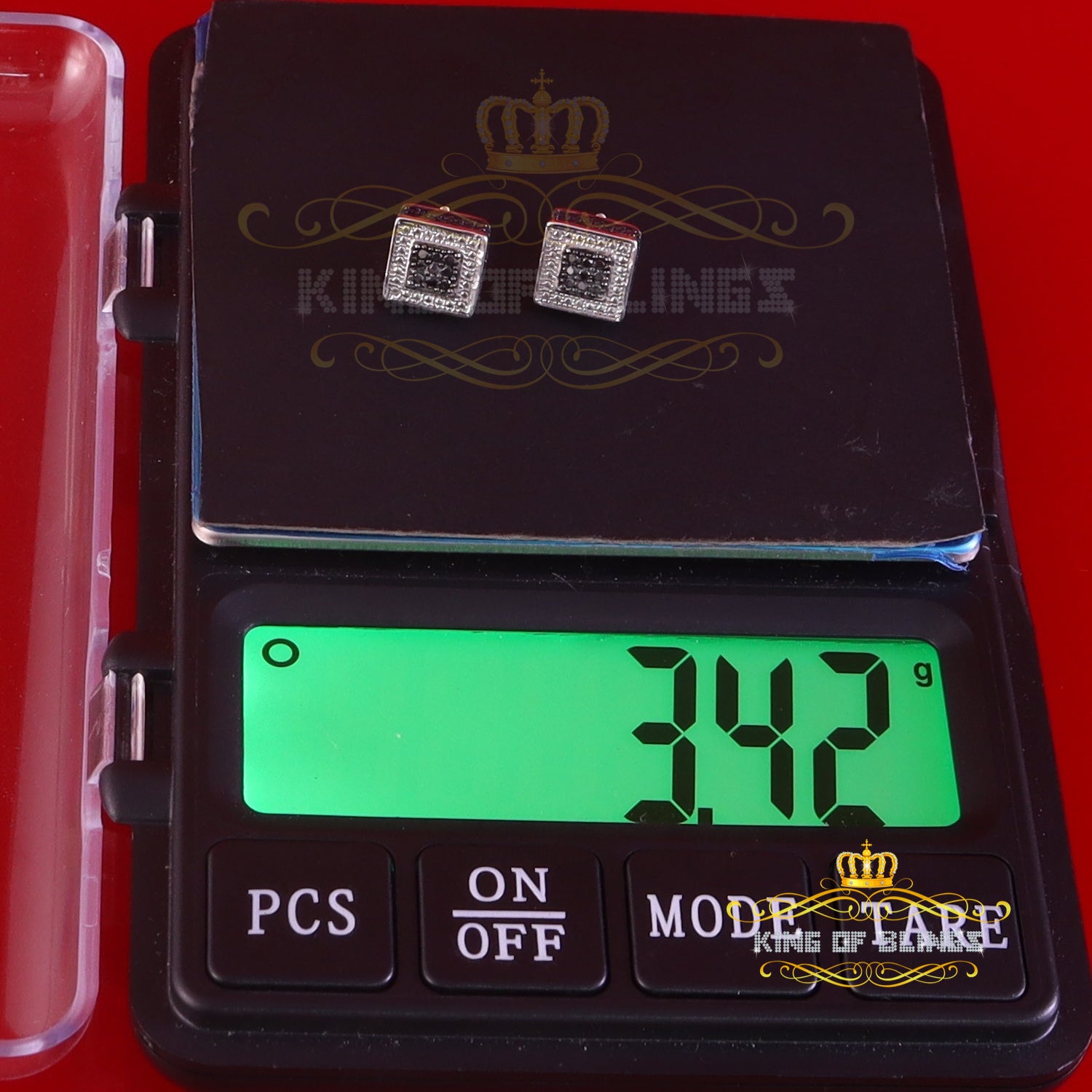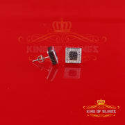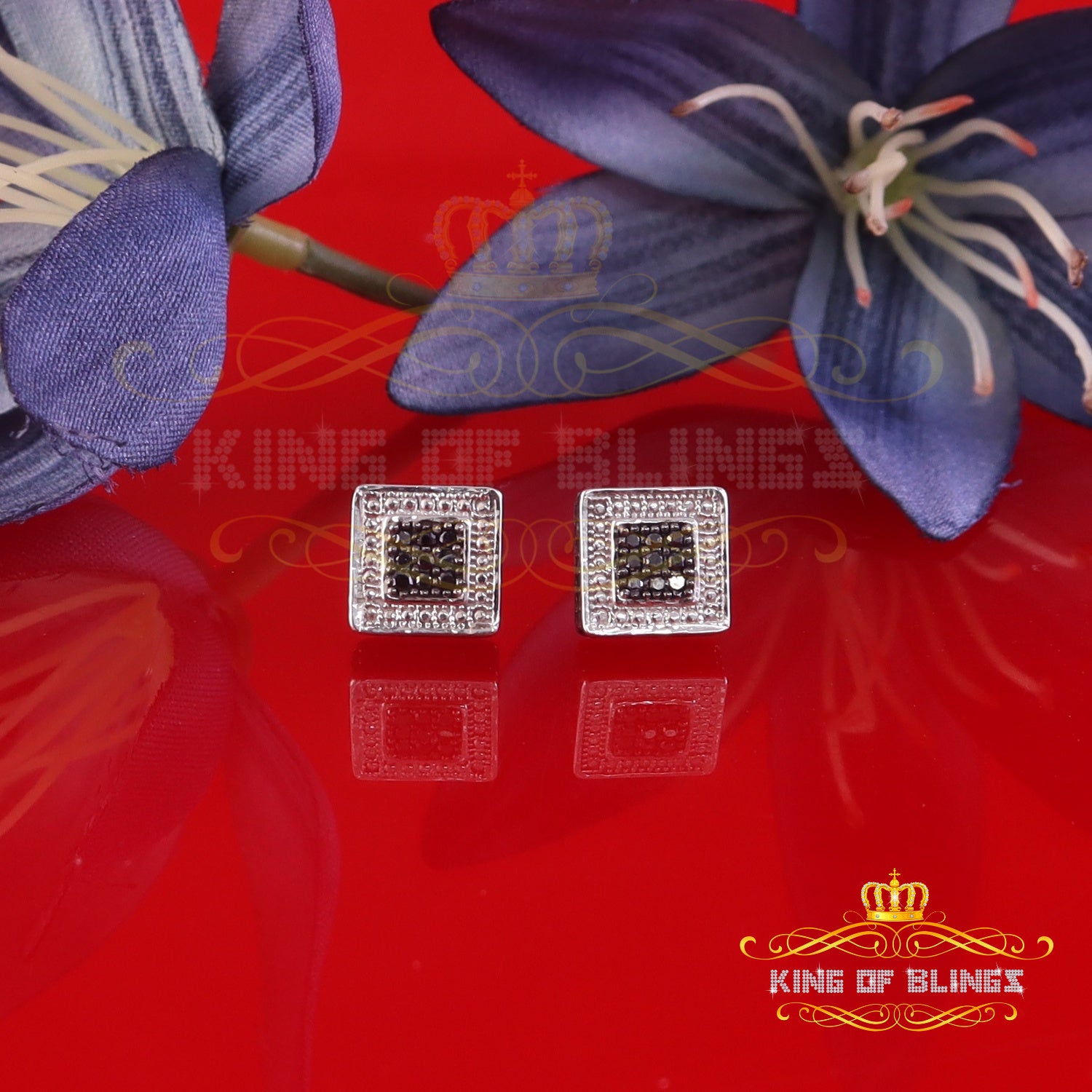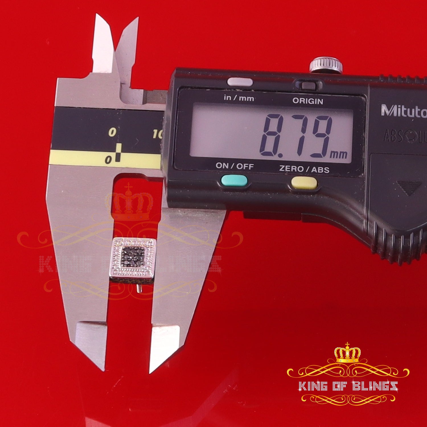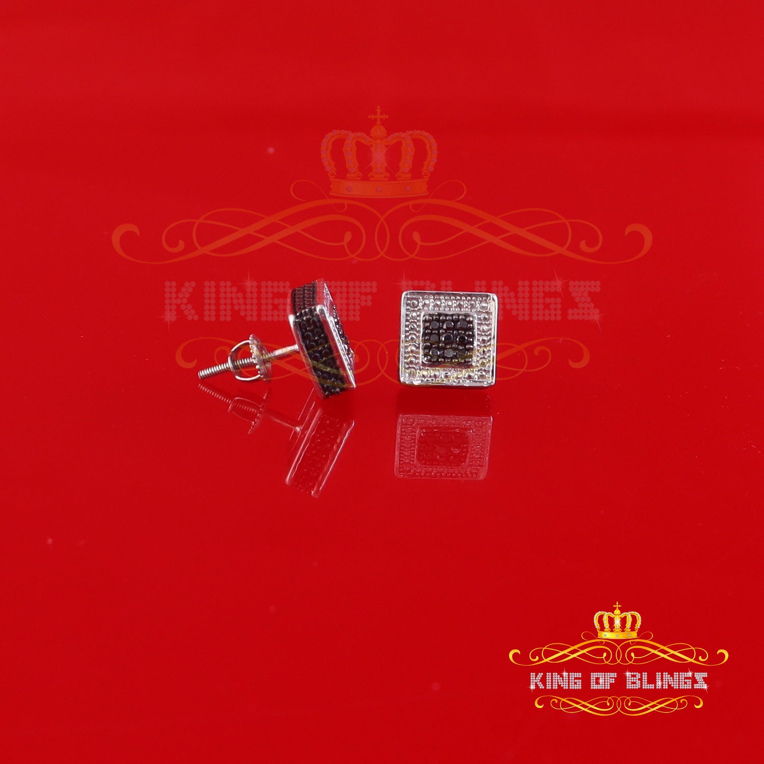 King Of Bling's 3D Square Earring 925 Sterling White Silver 0.25ct Round Genuine Black Diamond